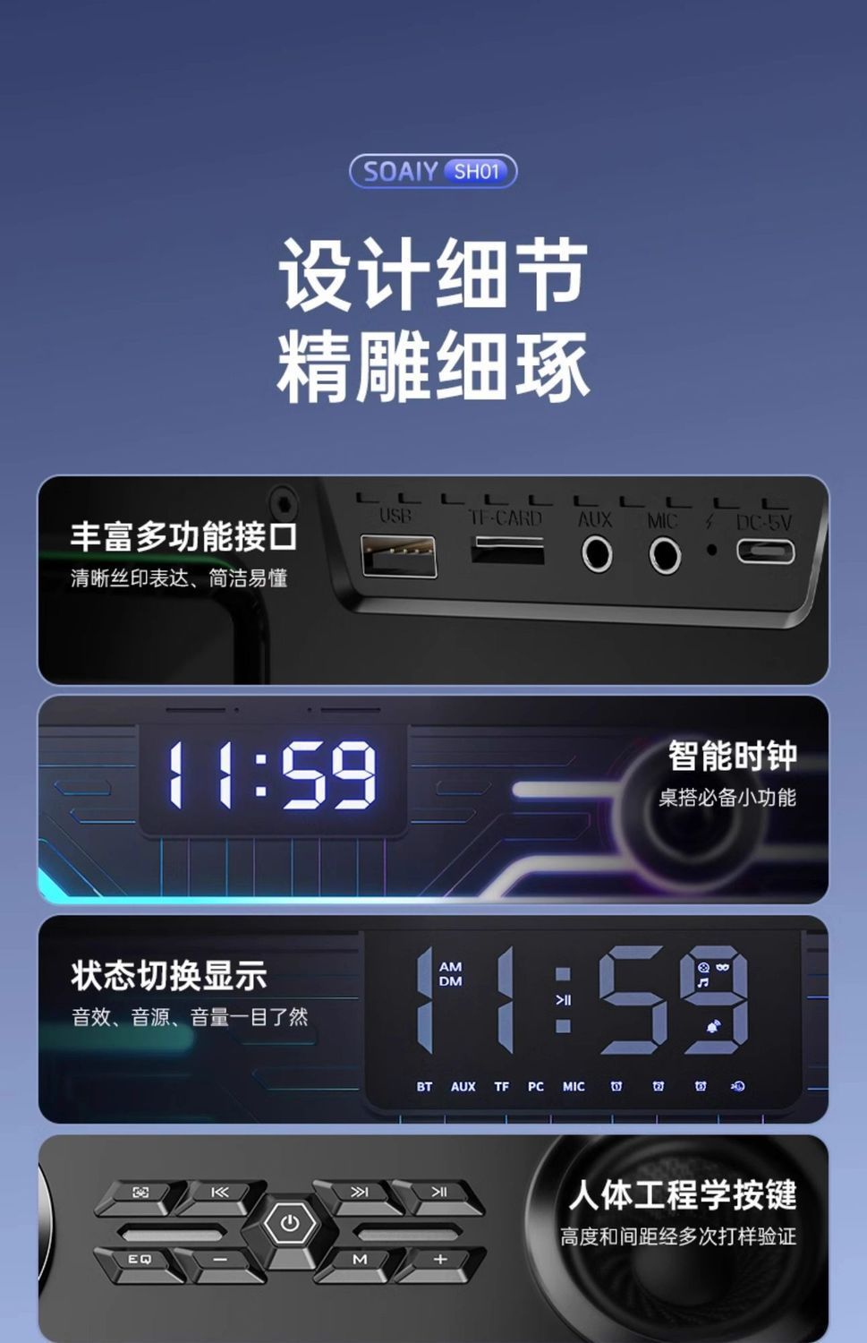 SH01 베를린 사운드 블루투스 스피커 데스크탑 알람 시계 노트북 무선 스포츠 컴퓨터 오디오 서브 우퍼 새로운 스타일