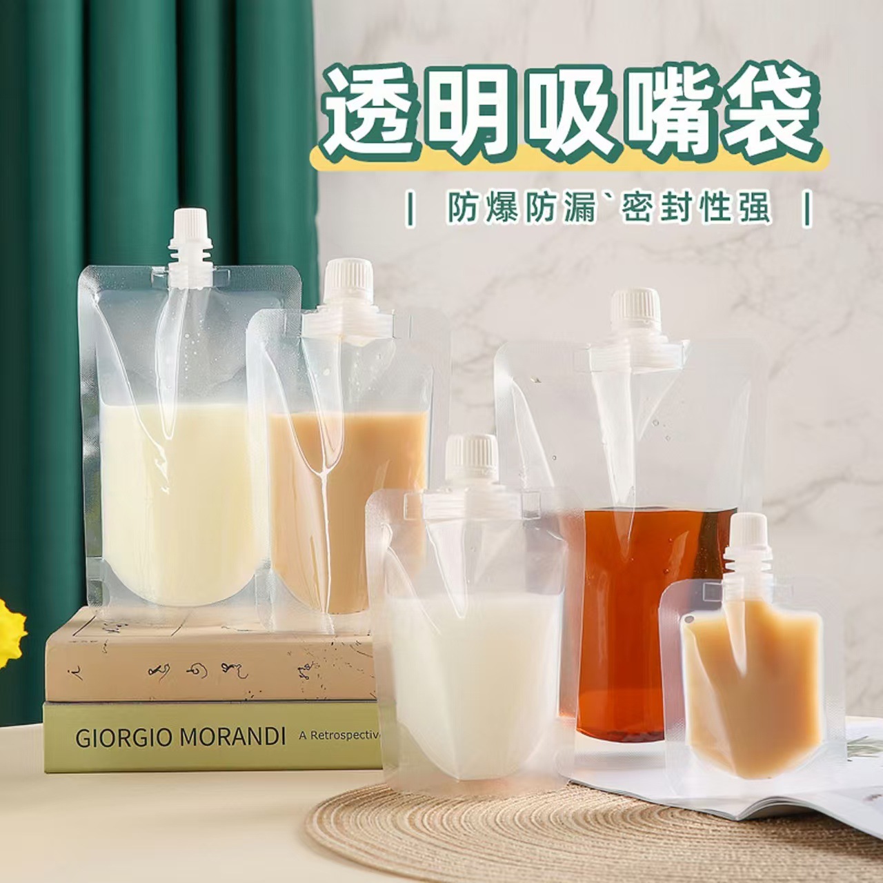 일회용 투명 고온 방지 두유, 밀크티, 주스 음료, 다양한 구경의 노즐백, 휴대용 테이크아웃 포장백