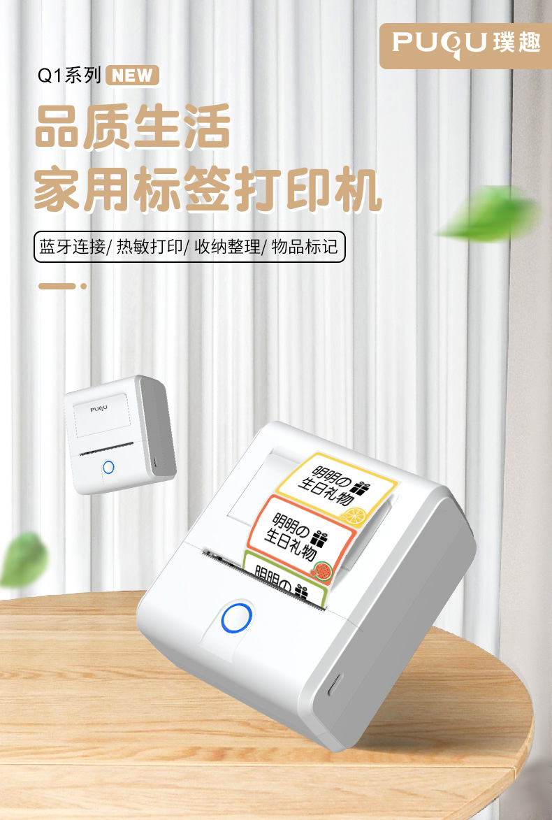 Puku Q1 홈 라벨 프린터 대형 다기능 블루투스 휴대용 핸드 헬드 열 이름 스티커스토어 가기
