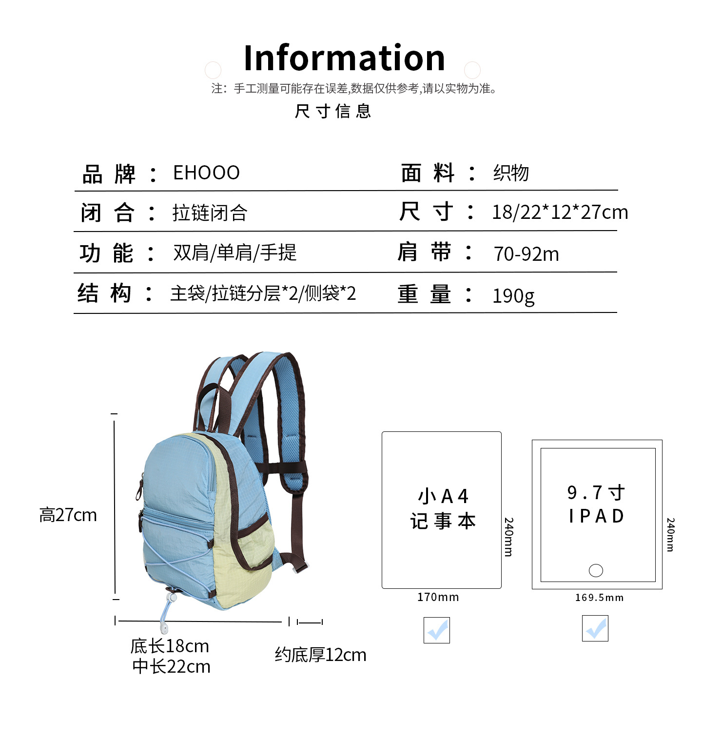 초경량 하이킹 백팩 야외 등산 가방 여성용 소형 백팩 캐주얼 소용량 책가방 경량스토어 가기