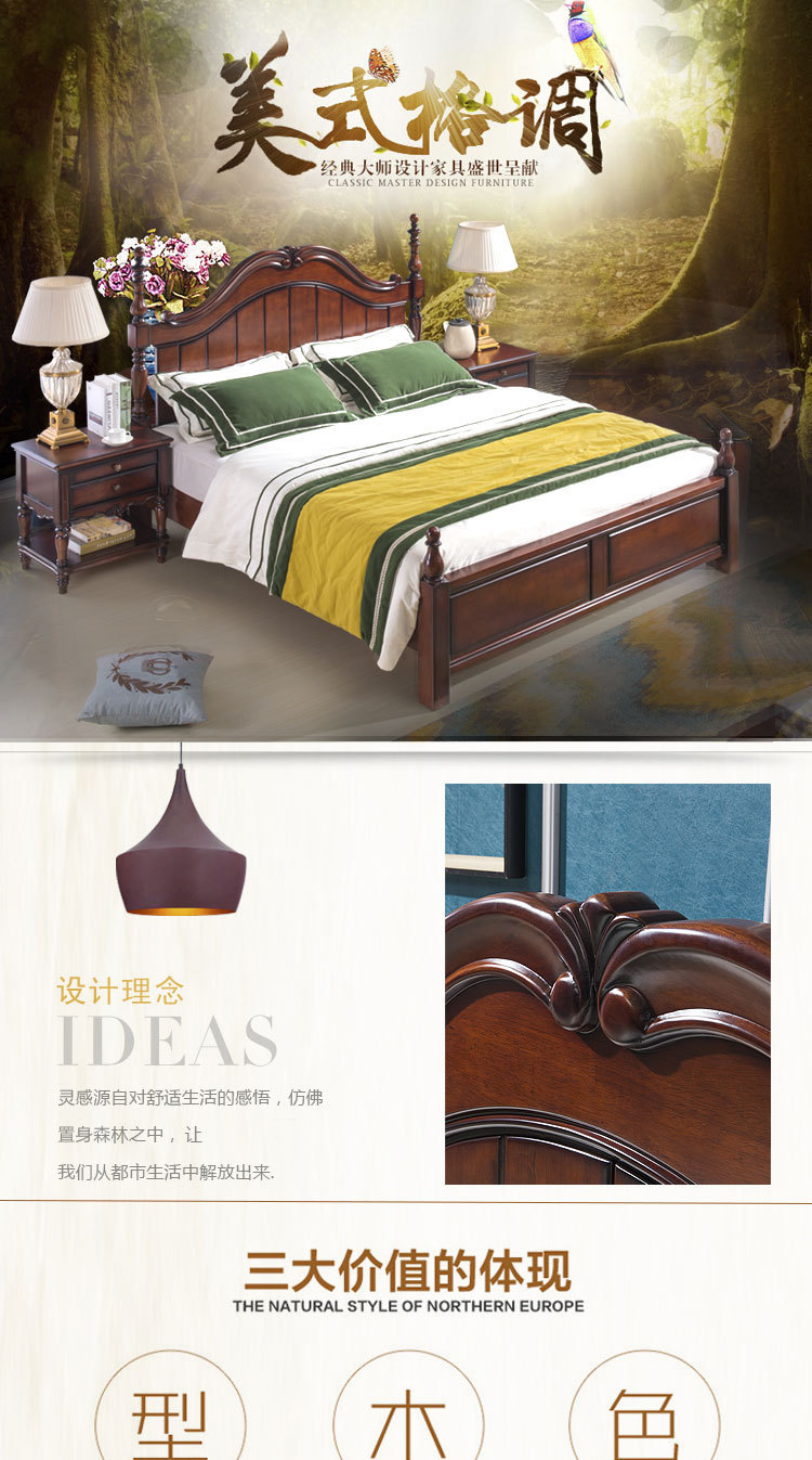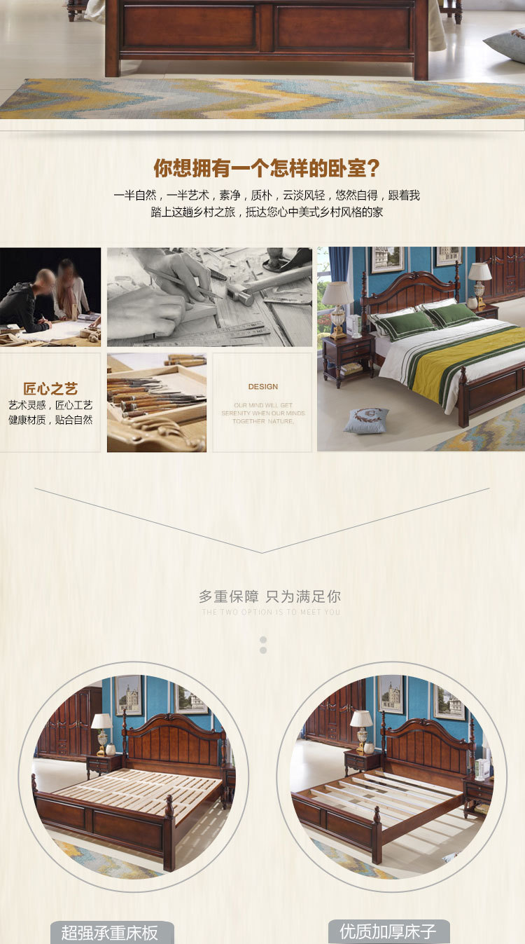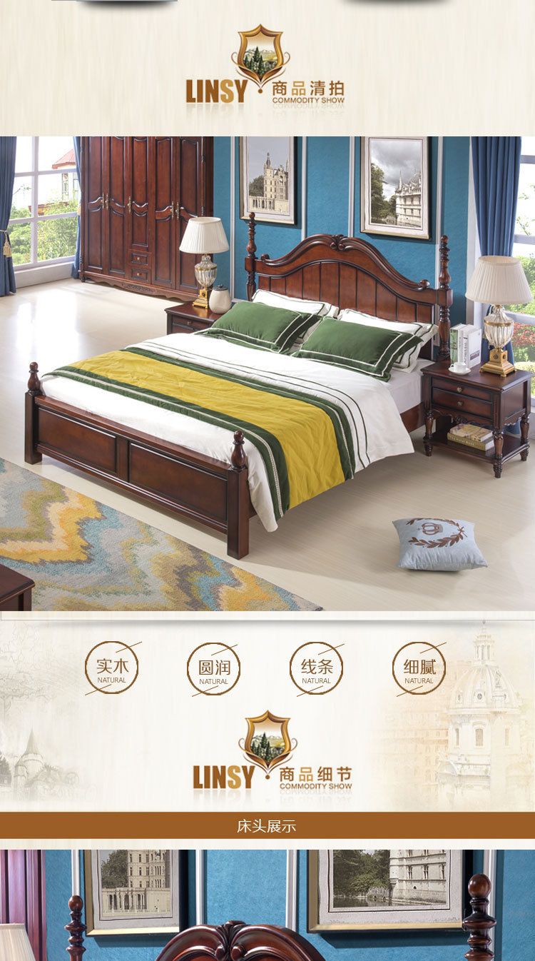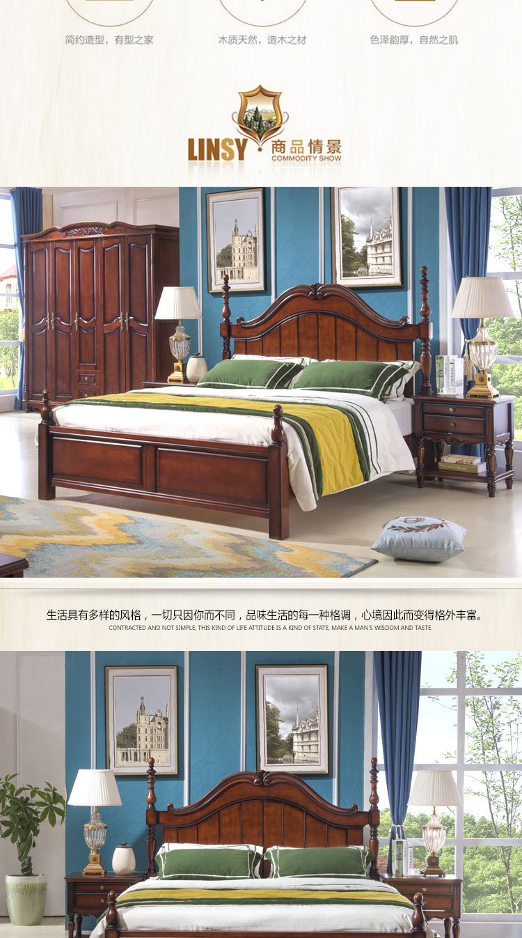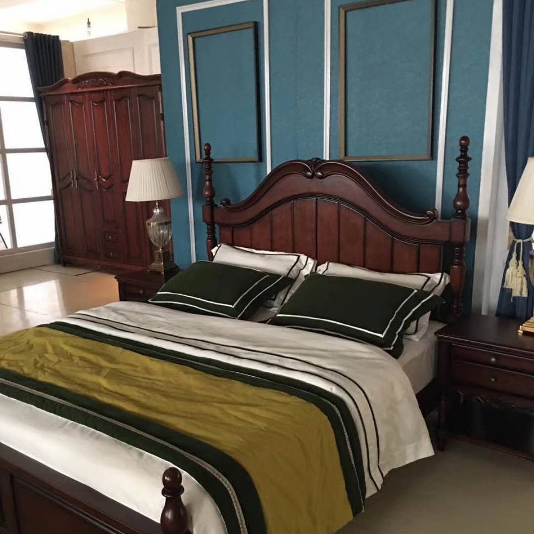 등받이가 있는 아메리칸 스타일 원목 침대 마스터 침실 더블 침대 높은 상자 수납 대형 침대 1.8m 모던 심플 라이트 럭셔리 웨딩 침대스토어 가기