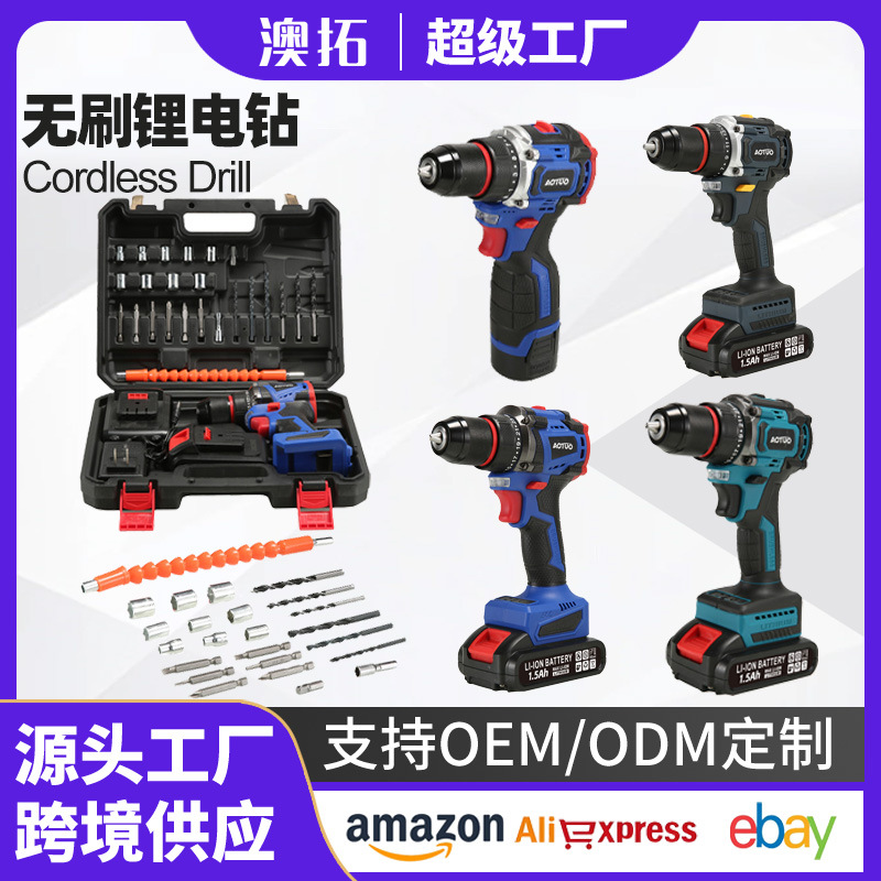 국경 간 새로운 고출력 리튬 전기 드릴 브러시리스 핸드 드릴 임팩트 드릴 충전식 이중 속도 리튬 전기 드릴 전기 드라이버