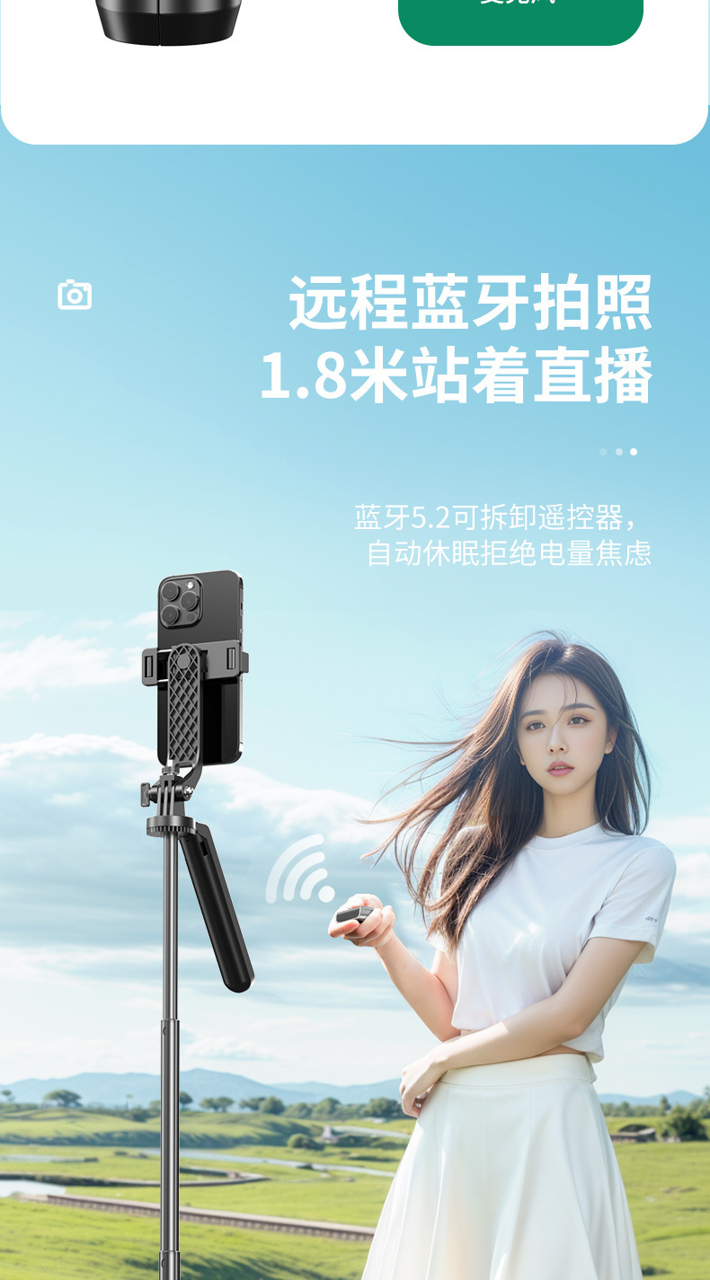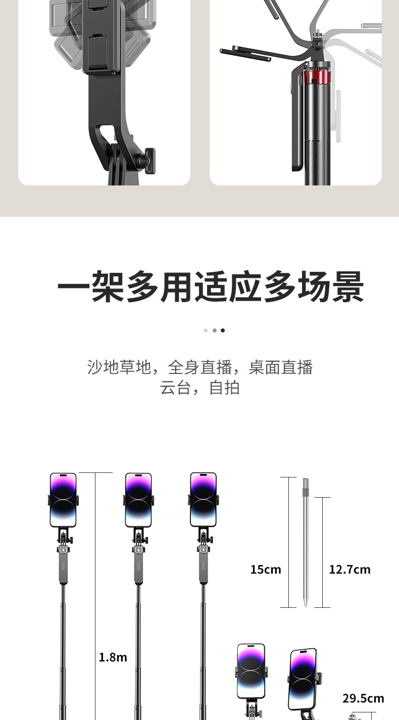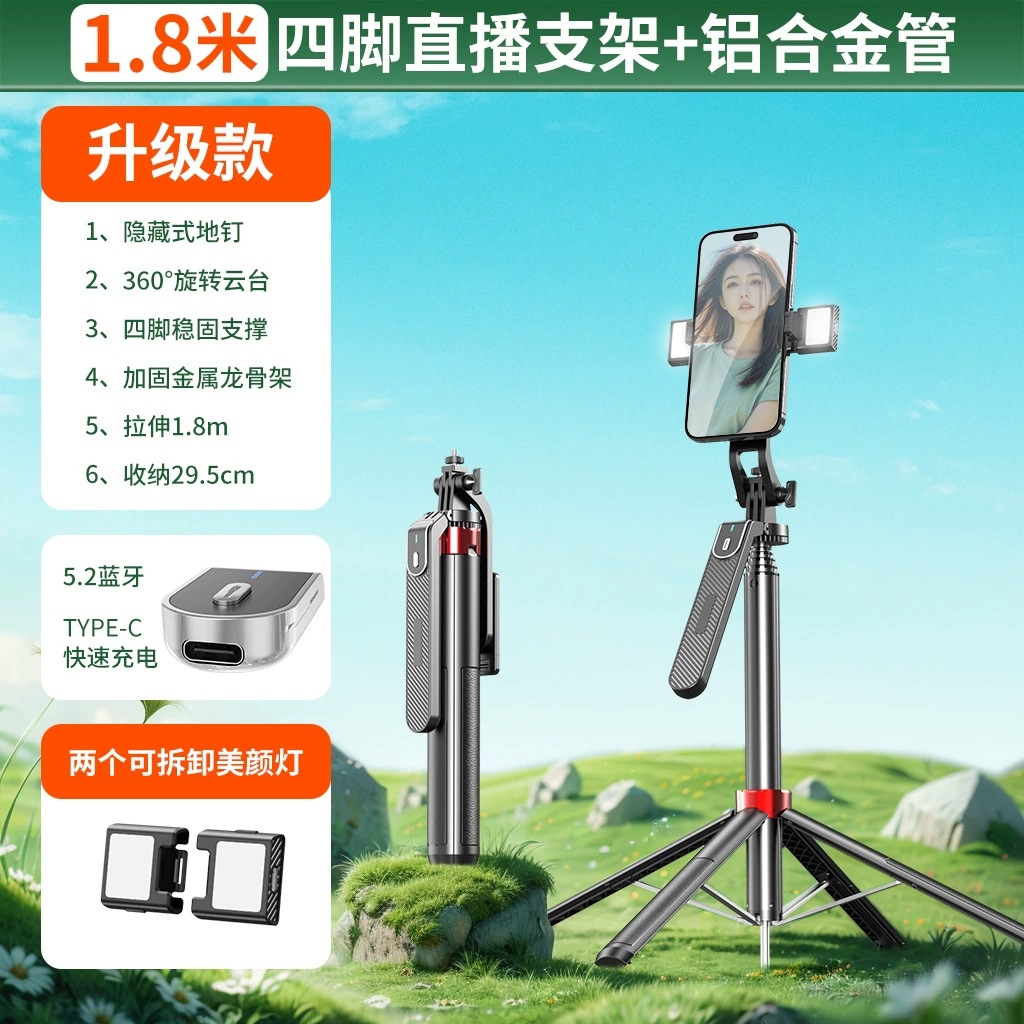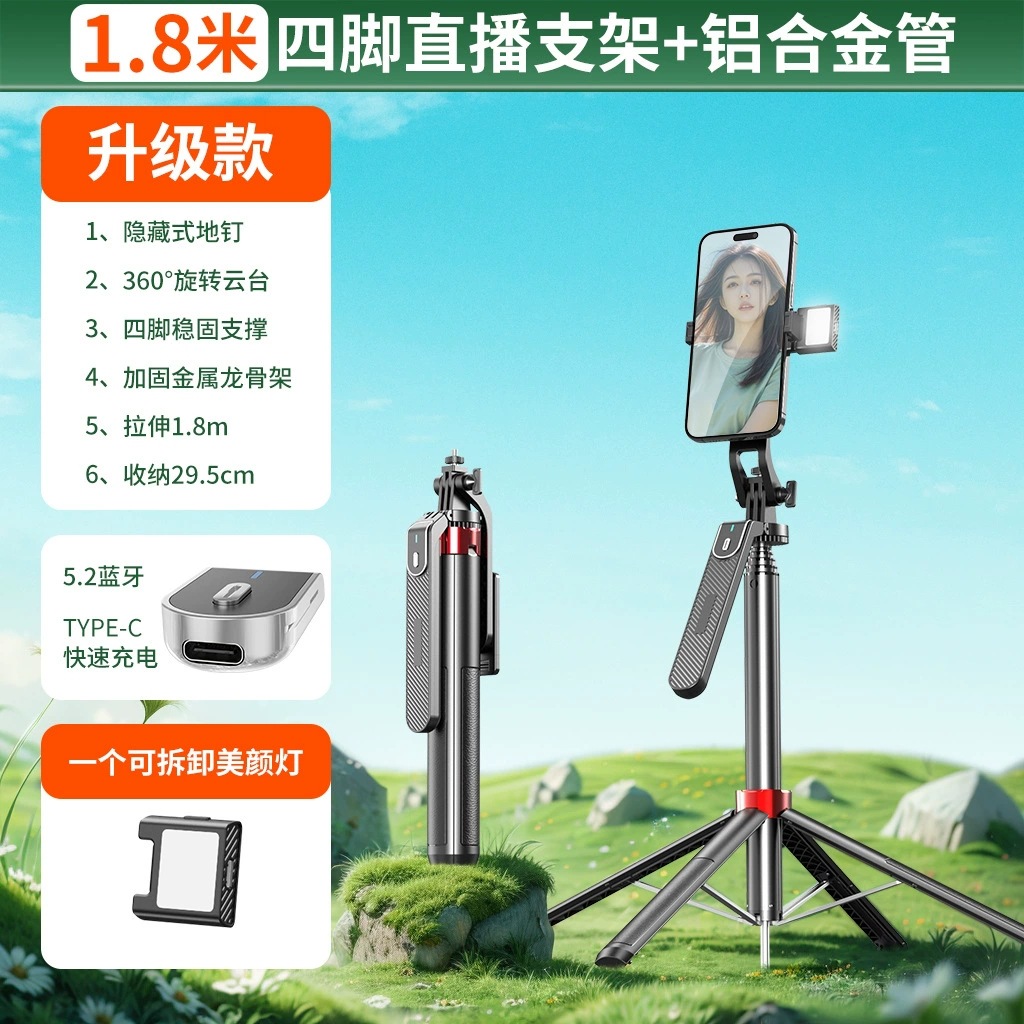 신제품 P185-N 블루투스 셀카봉, 흔들림 방지, 접이식 스파이크 안정기, 사진 촬영 라이브 방송 휴대폰 셀카봉스토어 가기