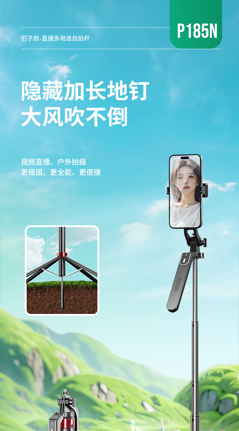 신제품 P185-N 블루투스 셀카봉, 흔들림 방지, 접이식 스파이크 안정기, 사진 촬영 라이브 방송 휴대폰 셀카봉