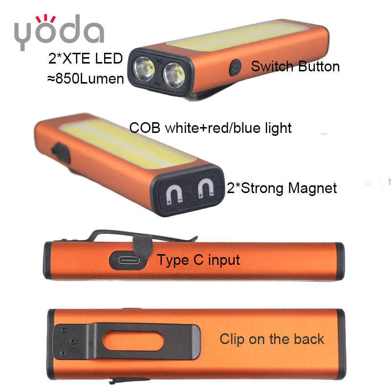 공장 직접 판매 M7 충전식 리튬 배터리 강력한 자기 COB 손전등 자동차 유지 보수 자동차 램프 직사각형 작업 조명