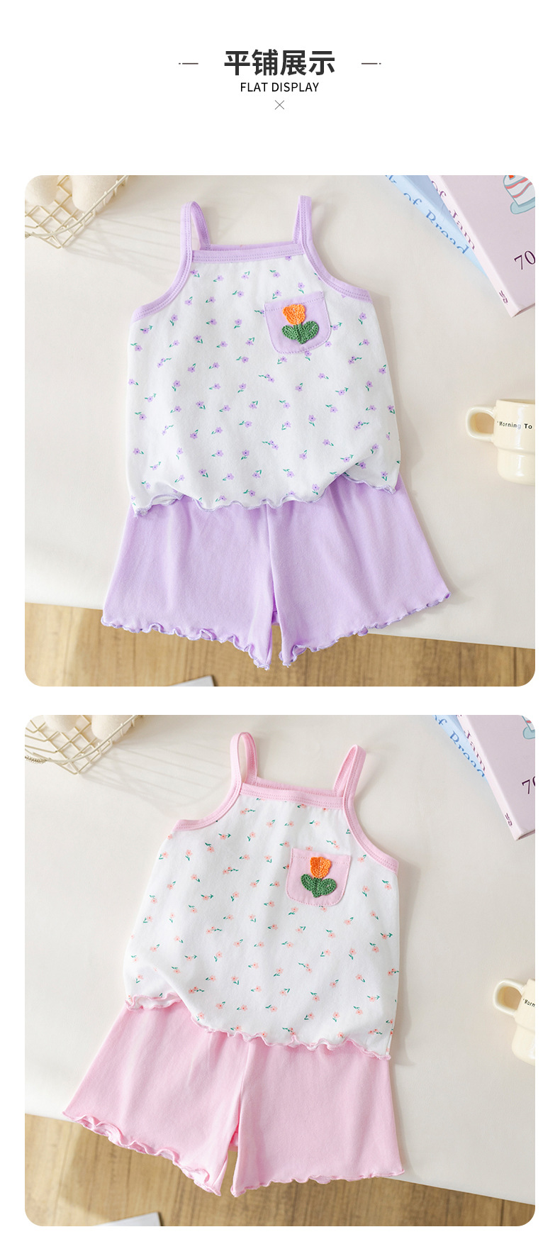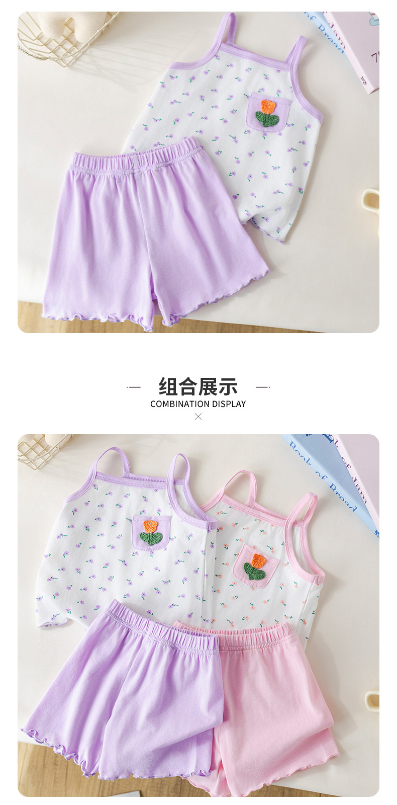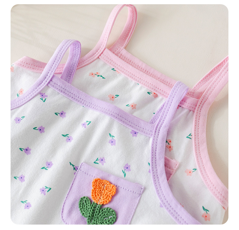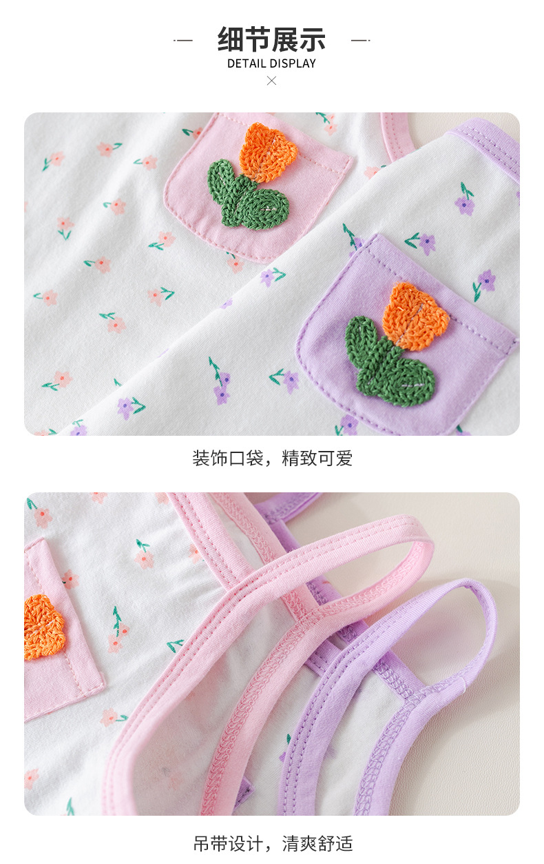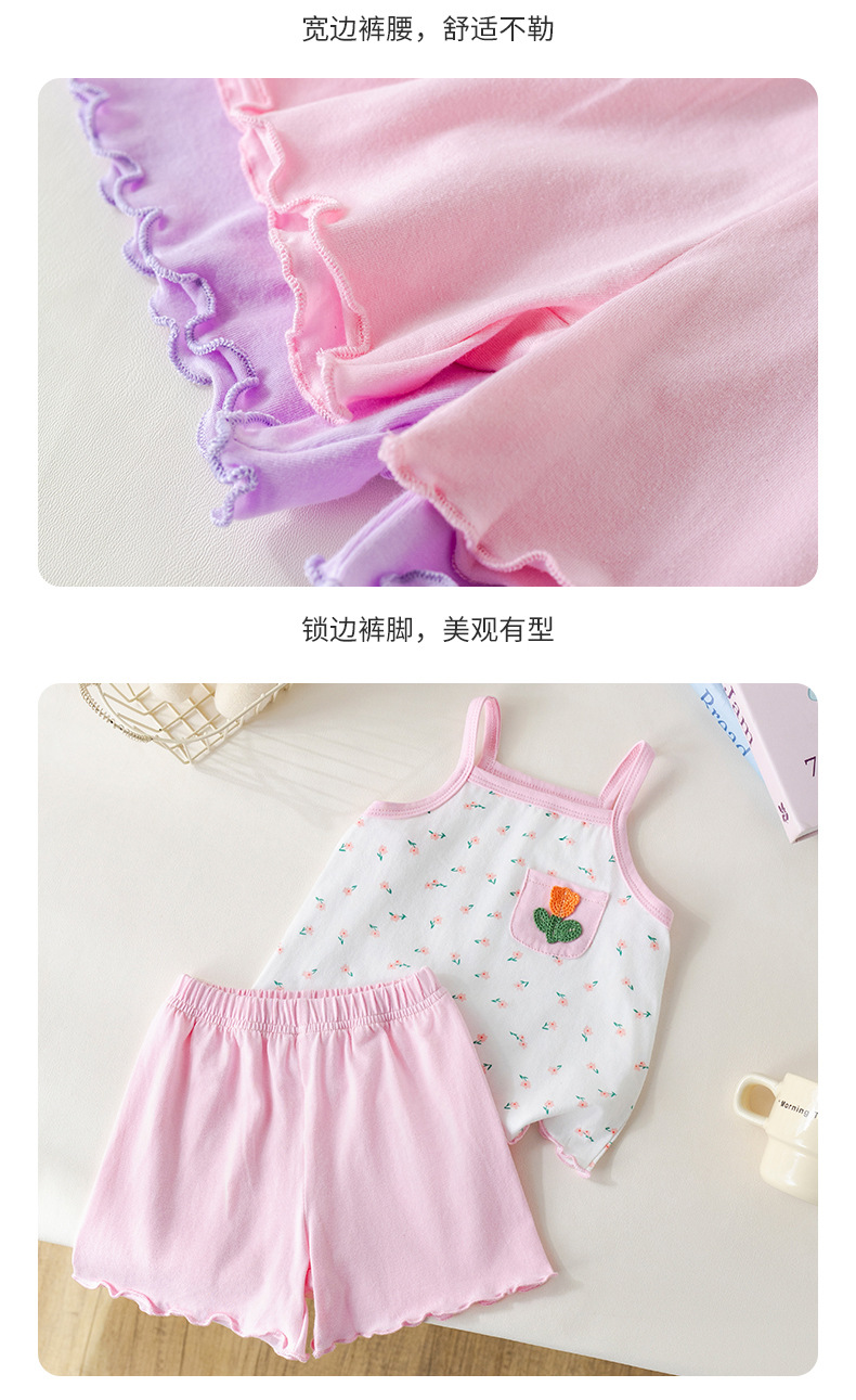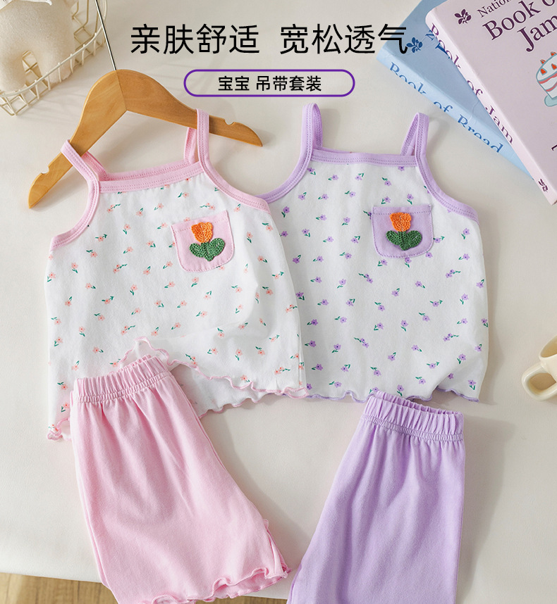 아기 소녀 여름 정장 순수 코튼 꽃 서스펜더 아기 소녀 여름 민소매 에어컨 가정 의류 투피스 여름 세트스토어 가기