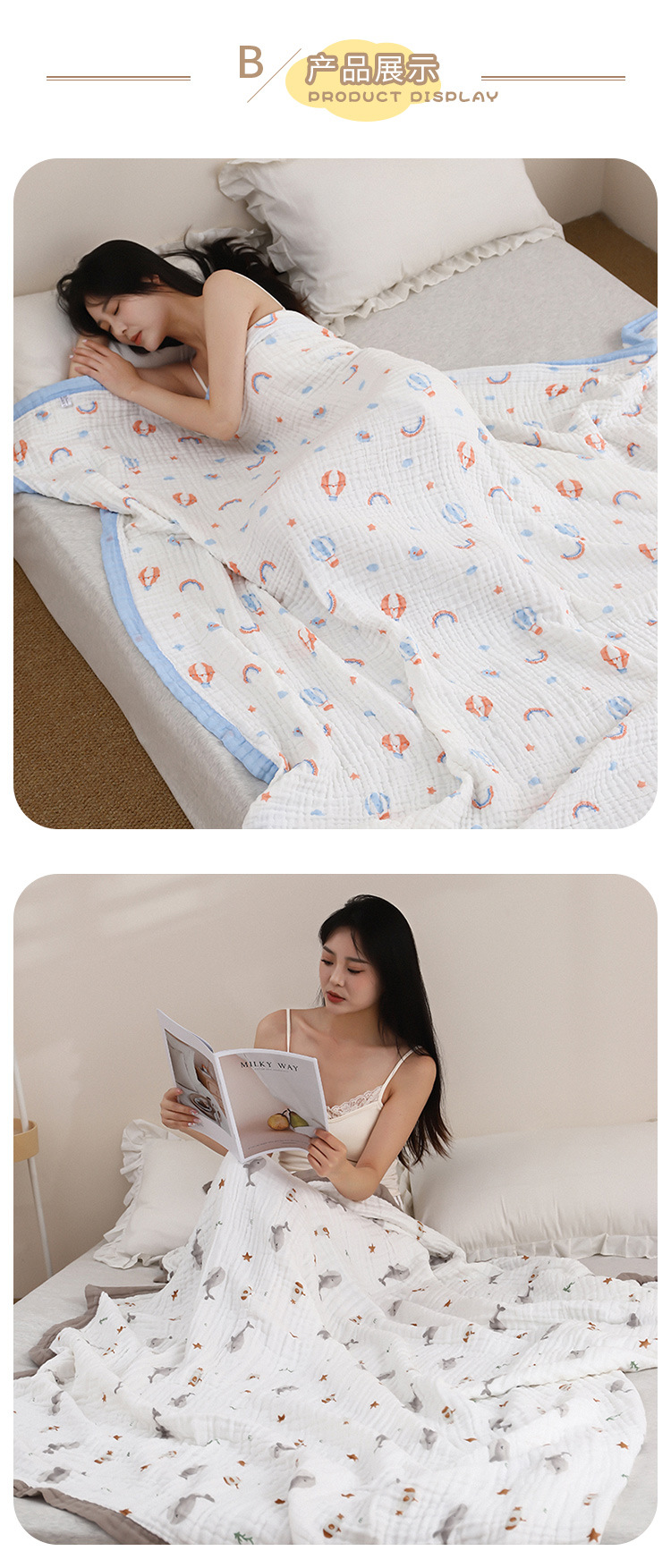 어린이 여름 순면 거즈 담요 클래스 A 면 기계 세탁 가능한 에어컨 이불 성인 가정용 초대형 낮잠 담요스토어 가기