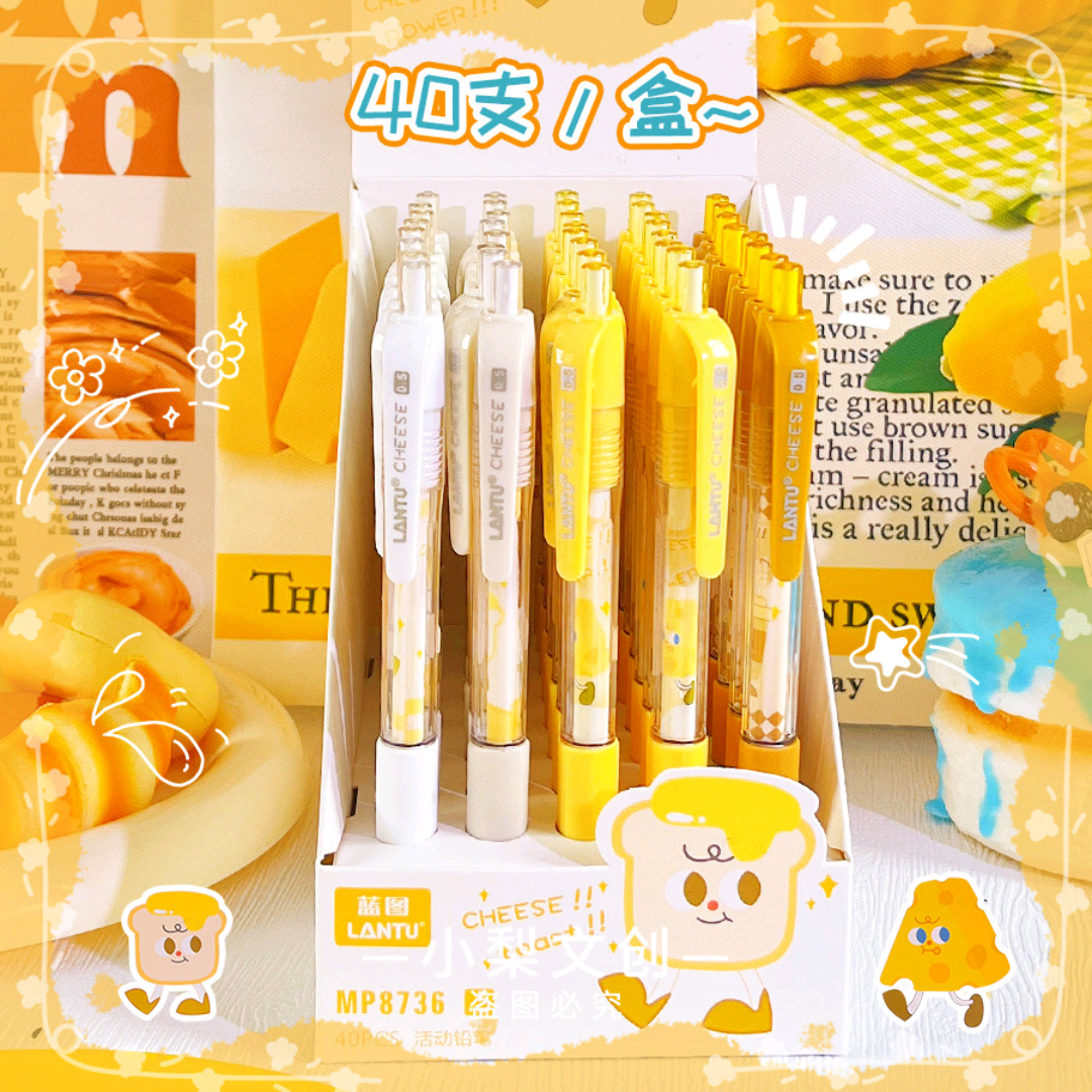 블루 프린트 8736 자동 연필 귀여운 치즈 멋진 학생 프레스 만화 연필 부드러운 고무 커버로 연필을 잡고 쓰기스토어 가기