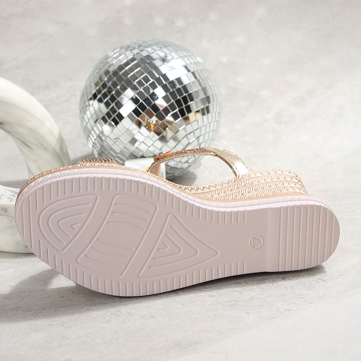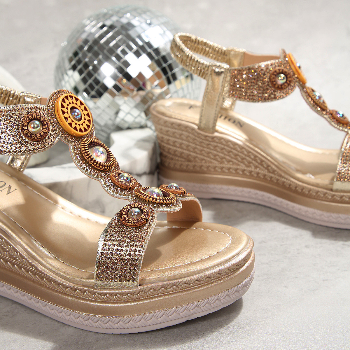 국경 간 대외 무역 2025 여름 라인 석 샌들 탄성 슬립 온 패션 유럽과 미국 스타일의 두꺼운 밑창 여성 대형 샌들스토어 가기