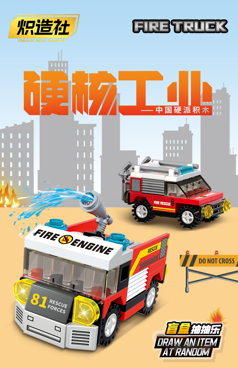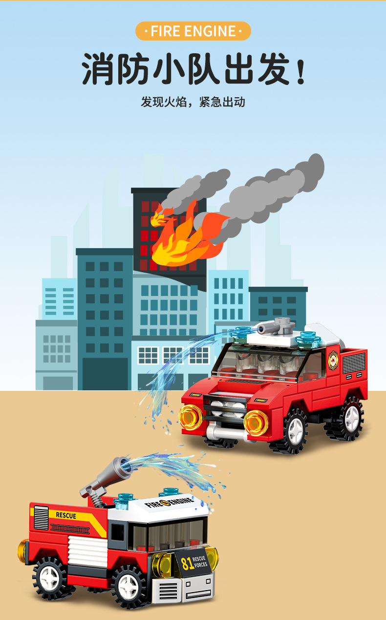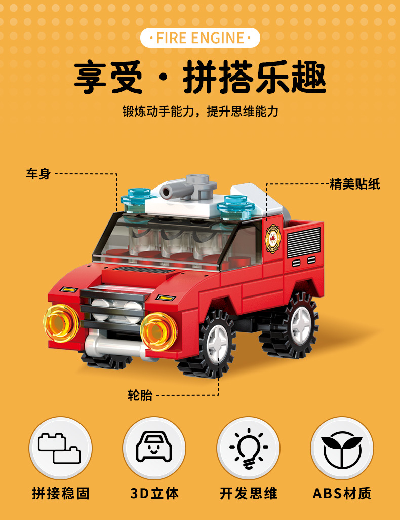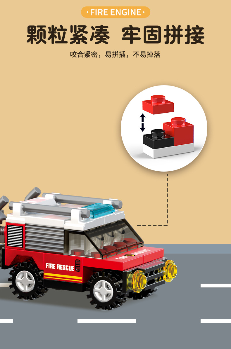 남학생과 여학생을 위한 레고 소립자 조립 도시 소방차 빌딩 블록 모델과 호환되며 다양한 스타일의 자동차 장식품을 조립할 수 있습니다.스토어 가기