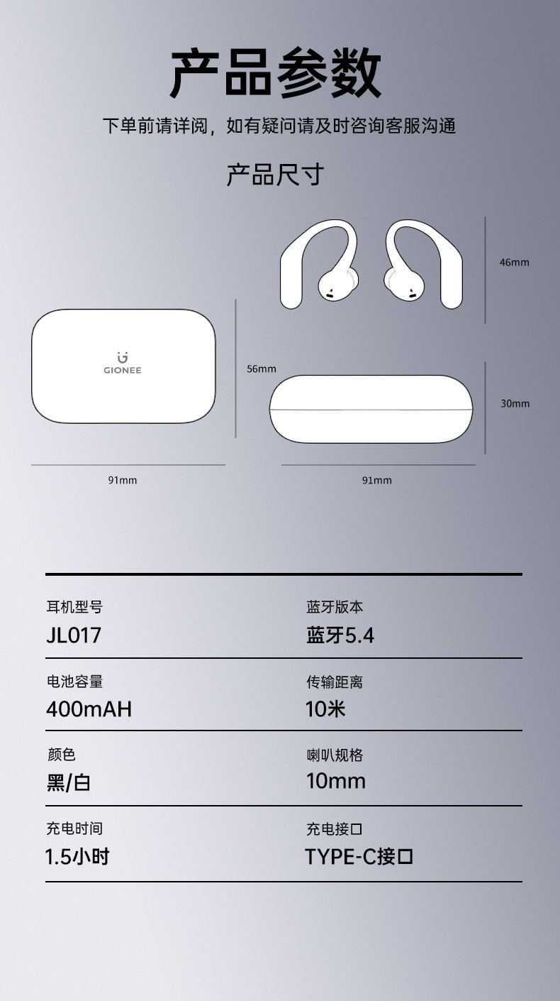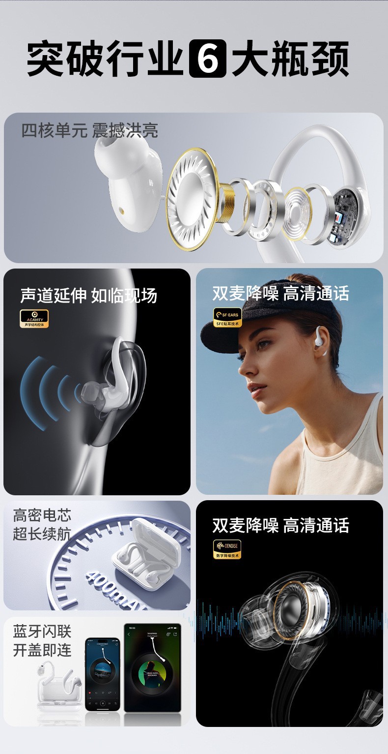 JL017 블루투스 헤드셋 인이어 진정한 무선 귀걸이형 개방형 공기 골전도 고품질 스포츠 러닝스토어 가기