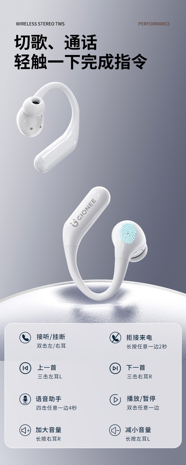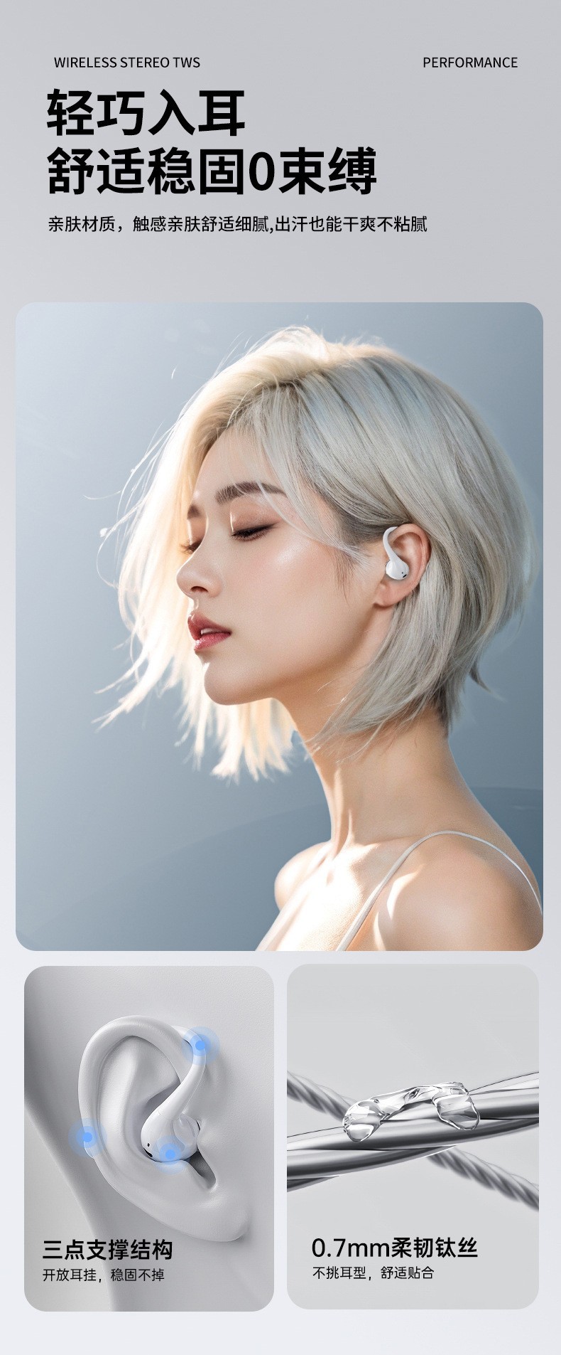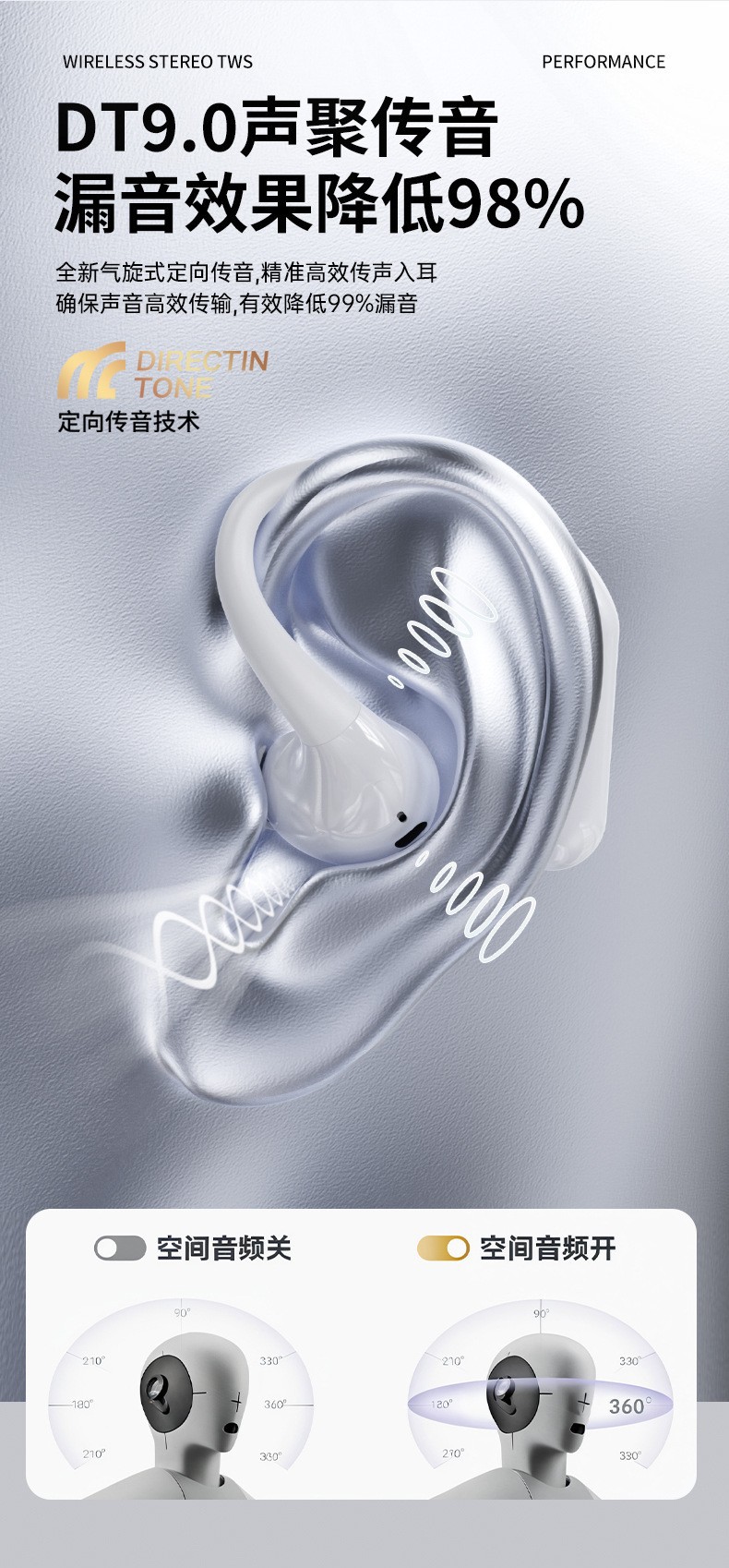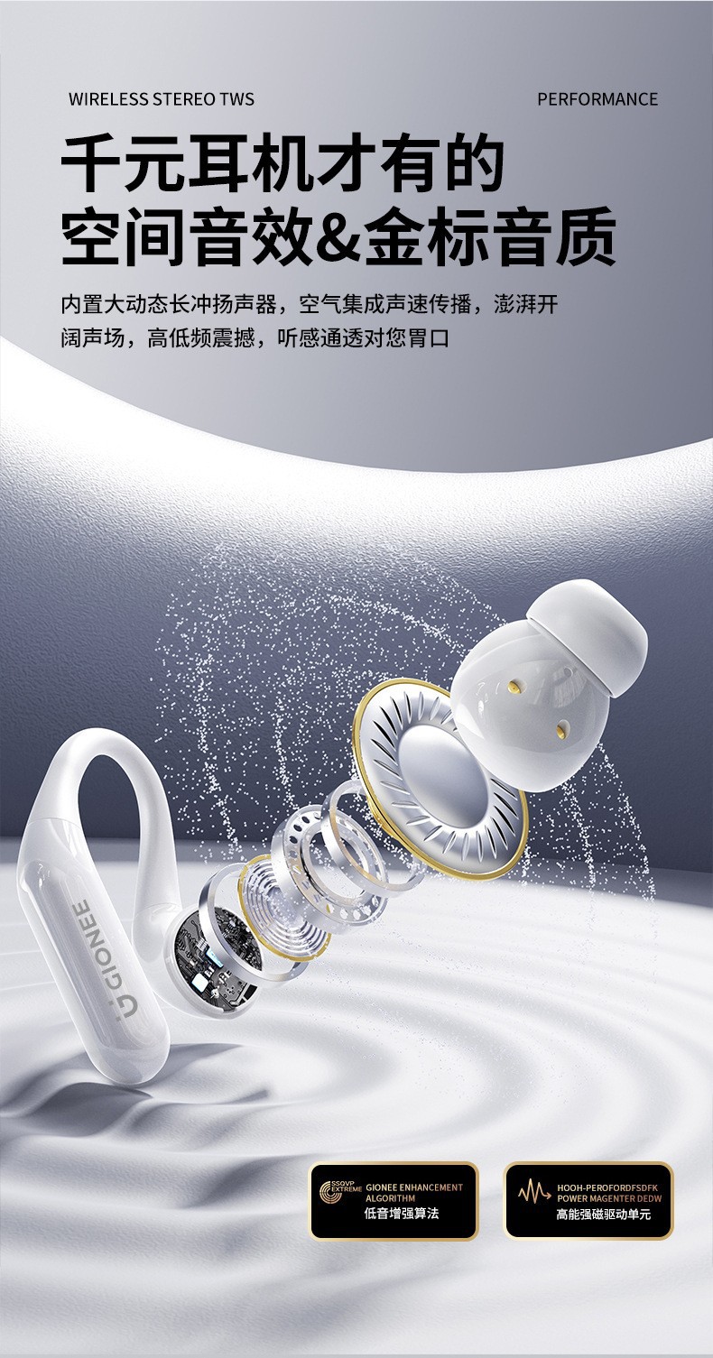 JL017 블루투스 헤드셋 인이어 진정한 무선 귀걸이형 개방형 공기 골전도 고품질 스포츠 러닝