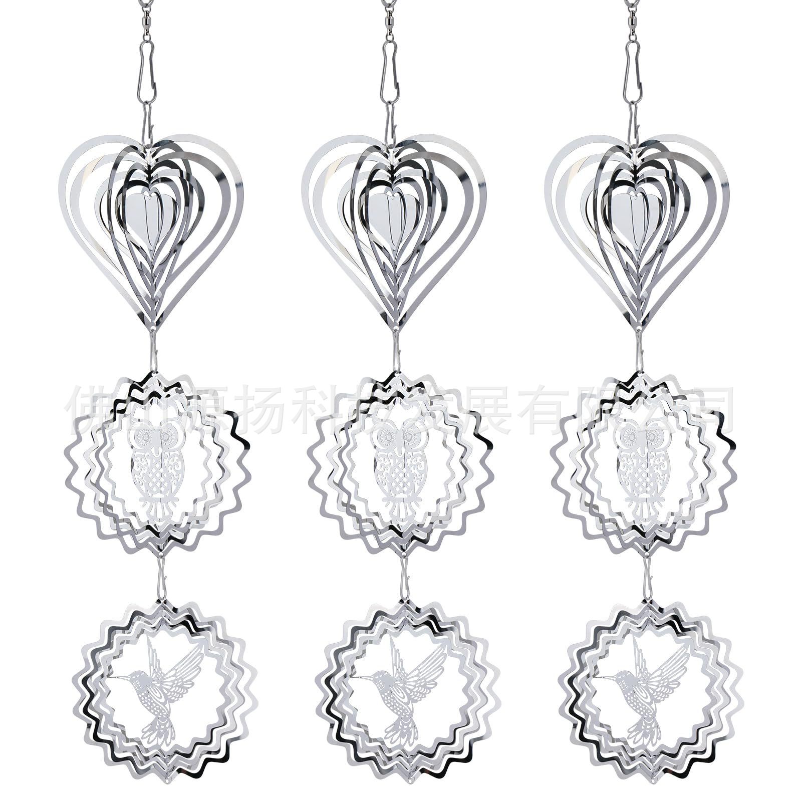 3.9inch 작은 사랑 올빼미 작은 벌새 자동차 장식 펜던트 야외 금속 무음 풍경 바람 턴 인치스토어 가기