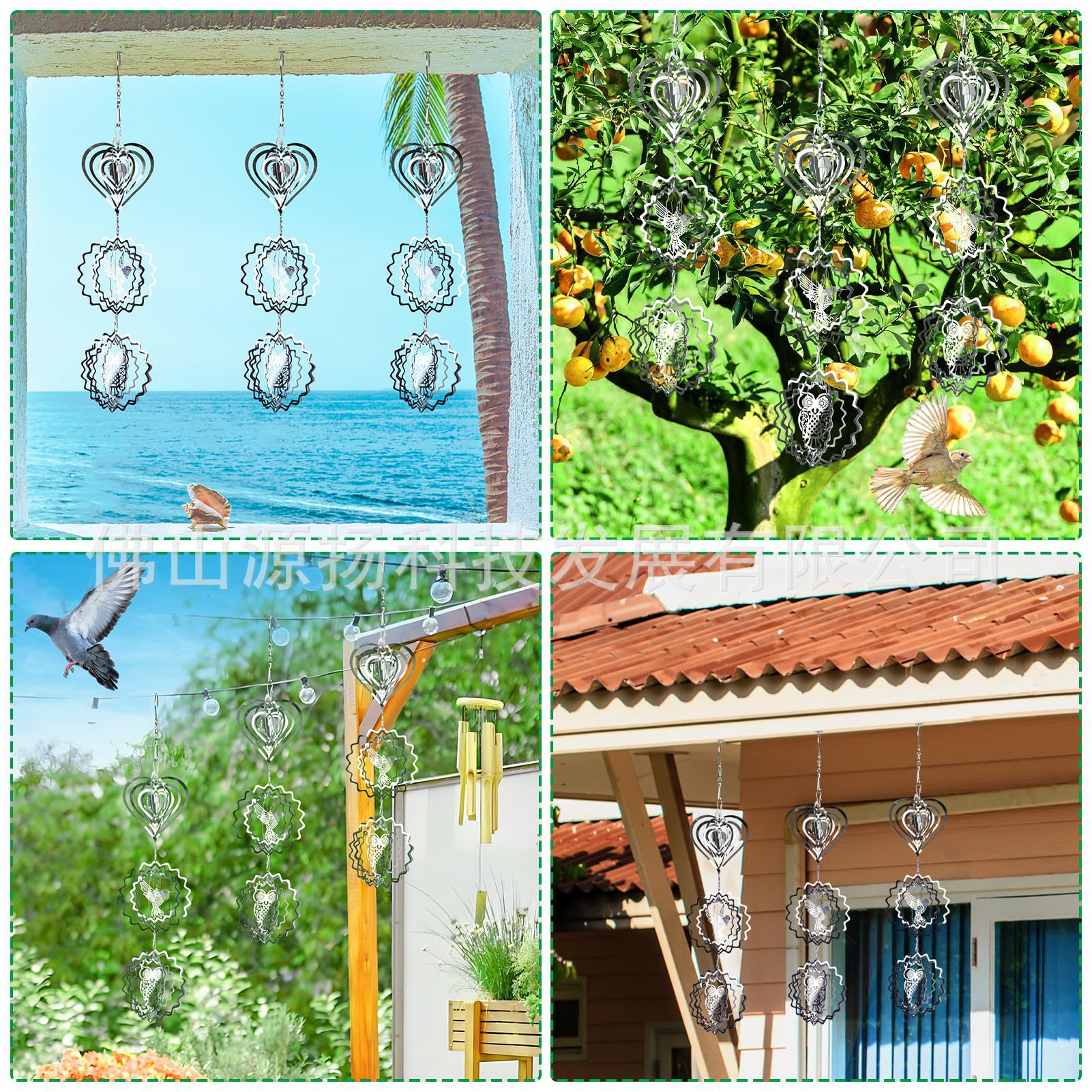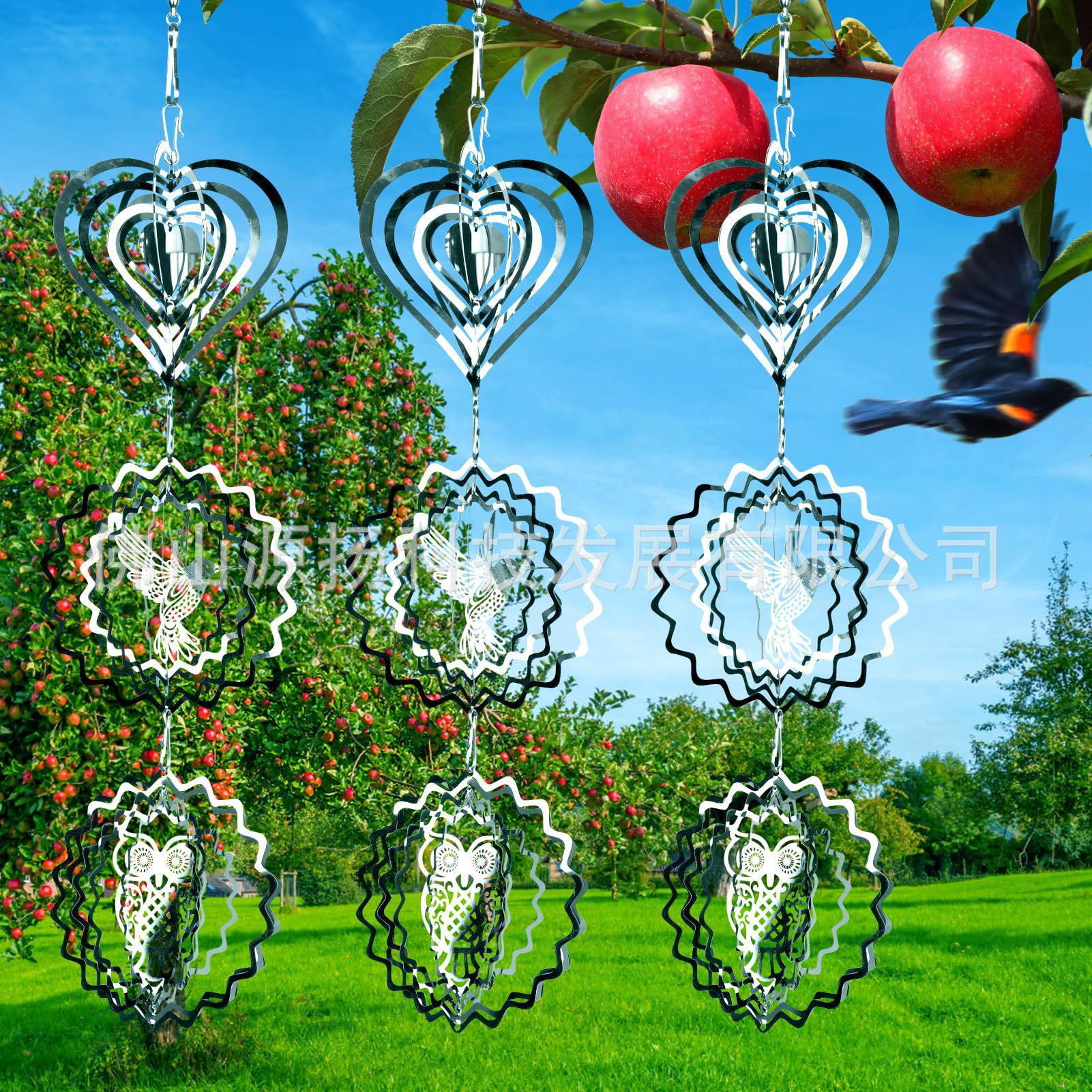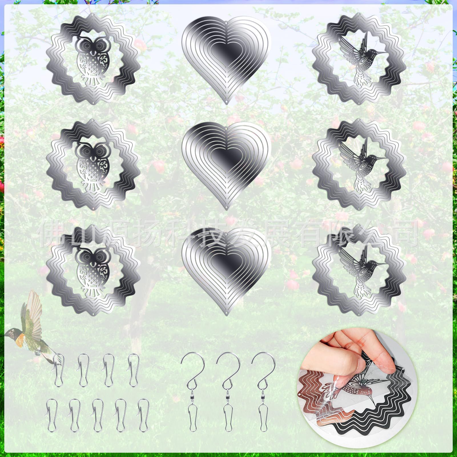 3.9inch 작은 사랑 올빼미 작은 벌새 자동차 장식 펜던트 야외 금속 무음 풍경 바람 턴 인치
