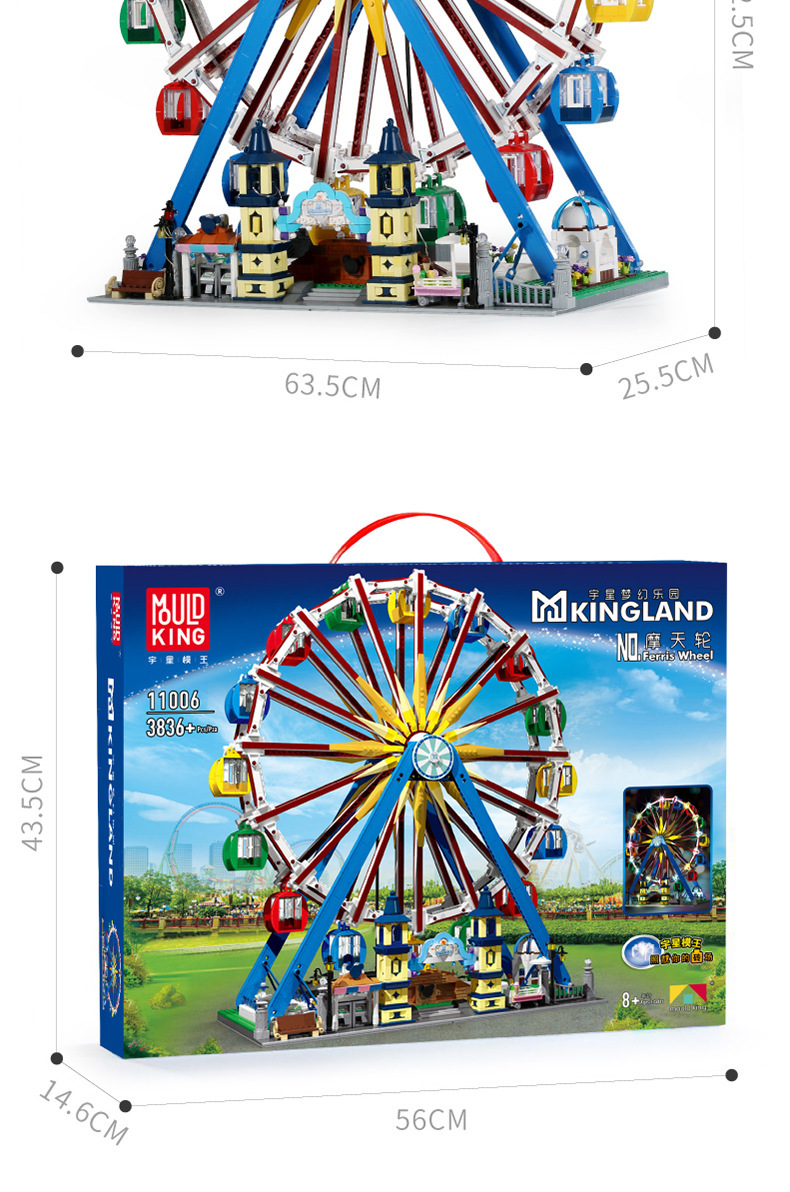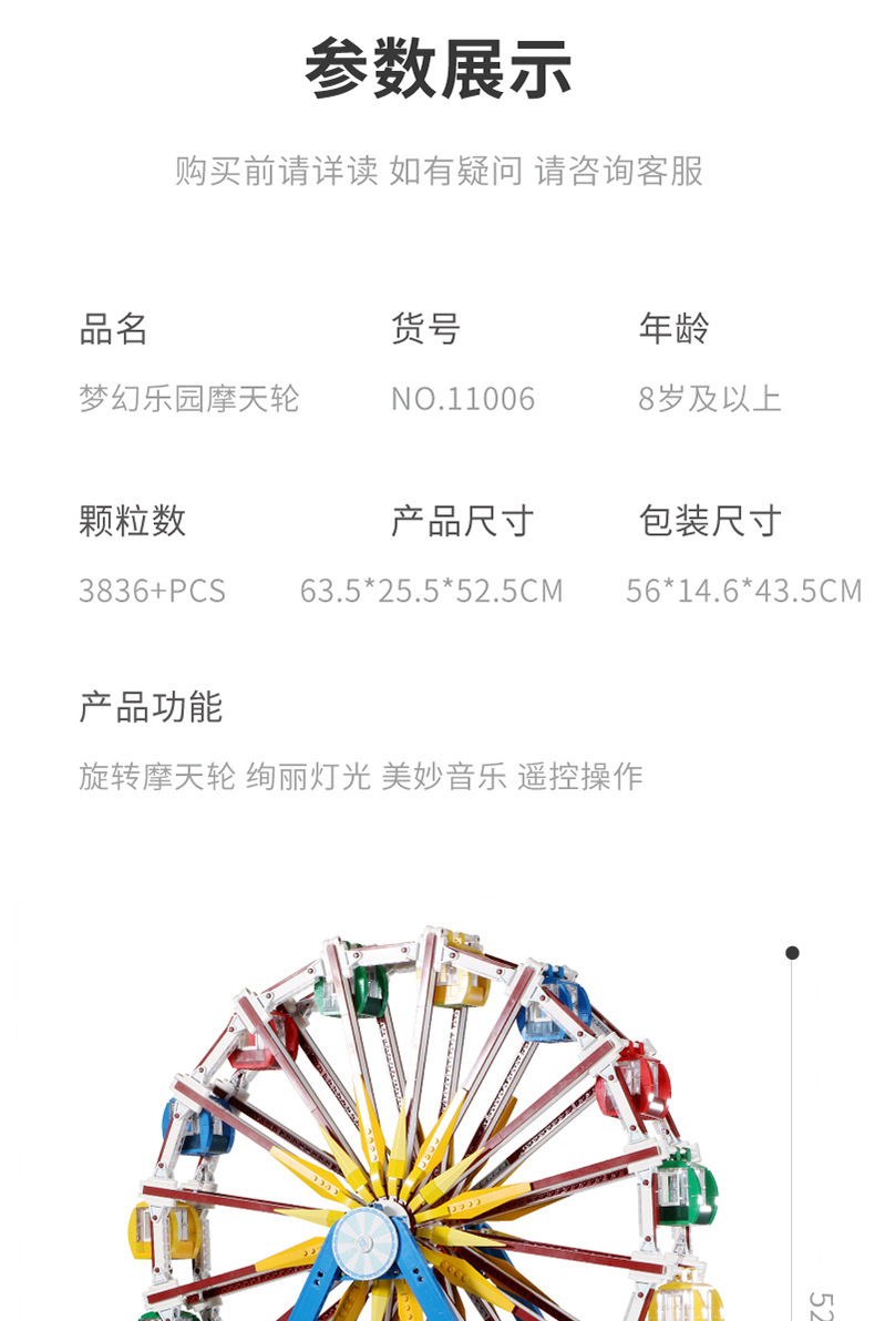 Yuxing Dreamland 시리즈 관람차 전기 원격 제어 조명 조립 모델 교육 빌딩 블록 장난감 국경 간스토어 가기