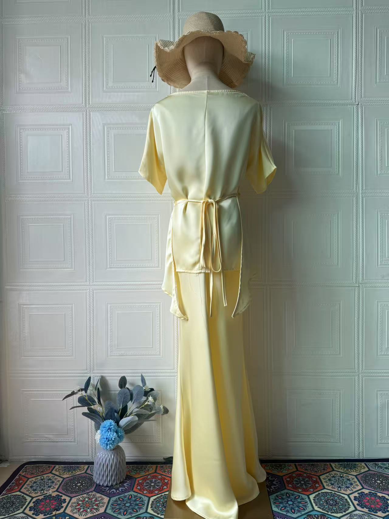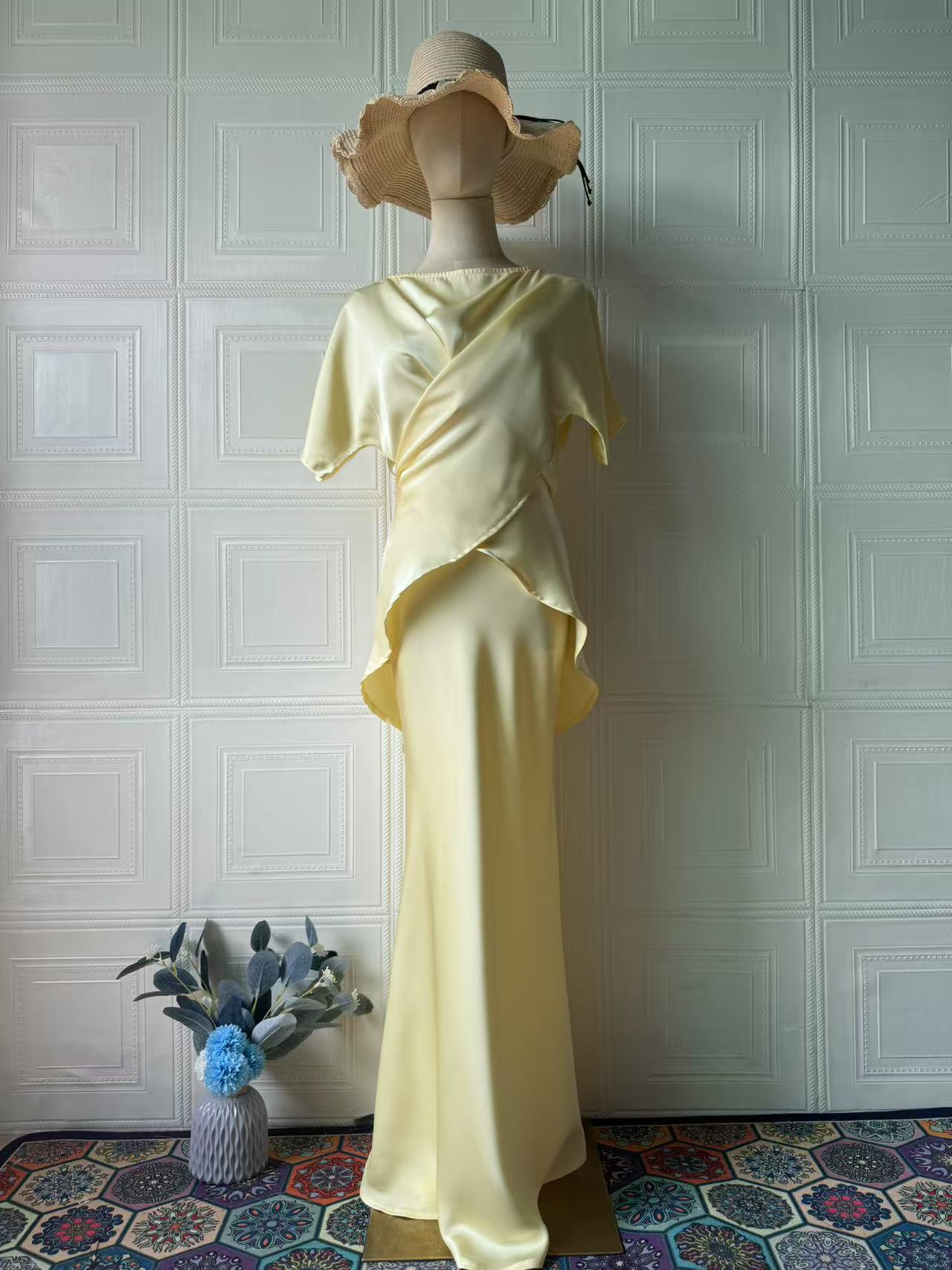 유럽과 미국의 아마존 국경 간 2025 여름 새로운 스타일 고귀하고 섹시한 기질 여성을위한 반팔 롱 스커트 정장 드레스스토어 가기