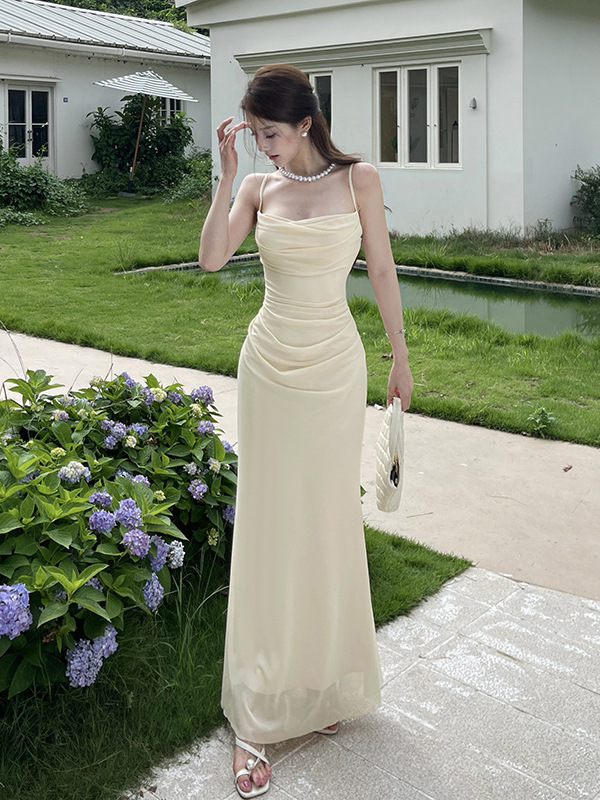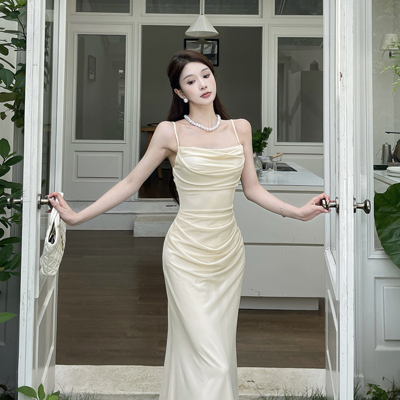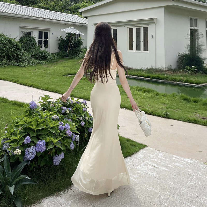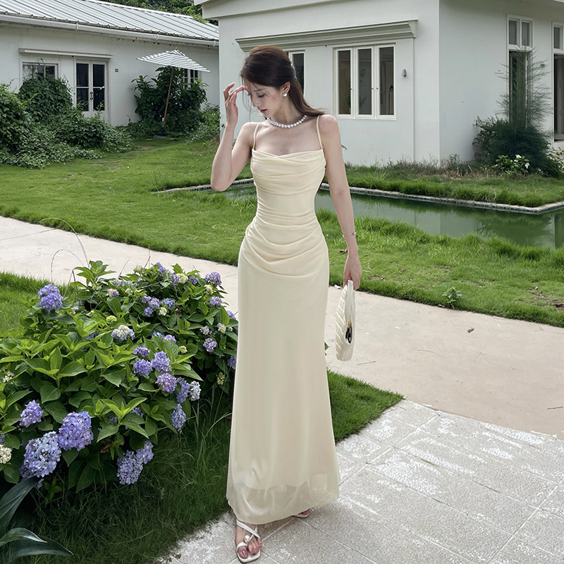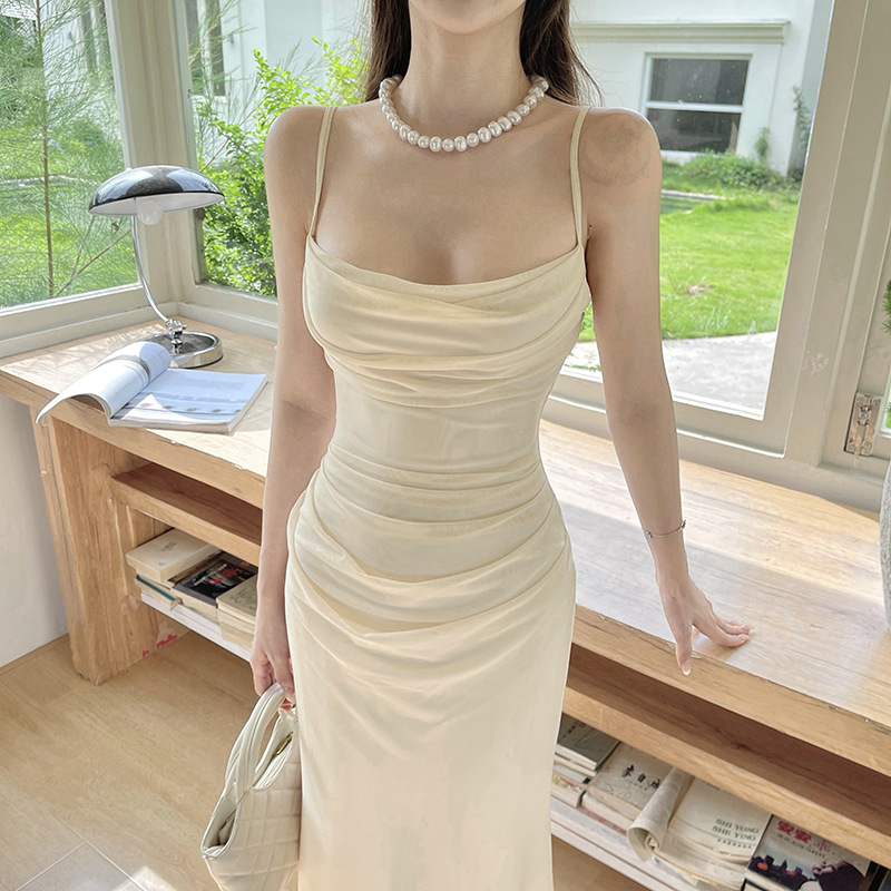 이리야 프렌치 스타일 시스루 슬립 드레스 여성 여름 고급스러운 스커트 허리 조임 힙 스커트 여성용 CF25142