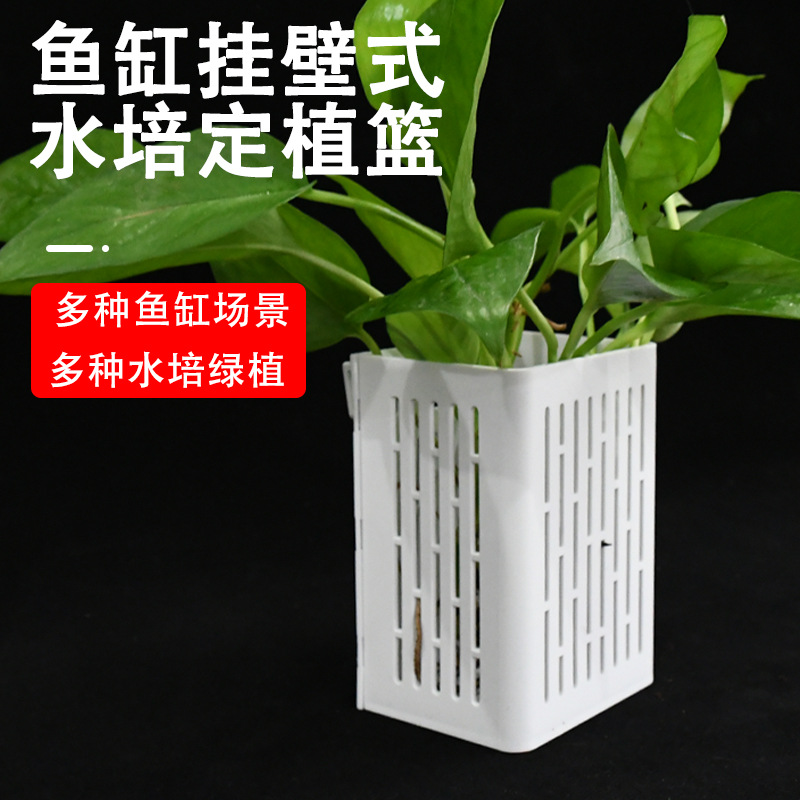 수조 벽걸이 식물 컵, 수초 컵, 거북이 수조 중공 걸이식 수경 식물 바구니, 다기능 사각형 수납 걸이 바구니