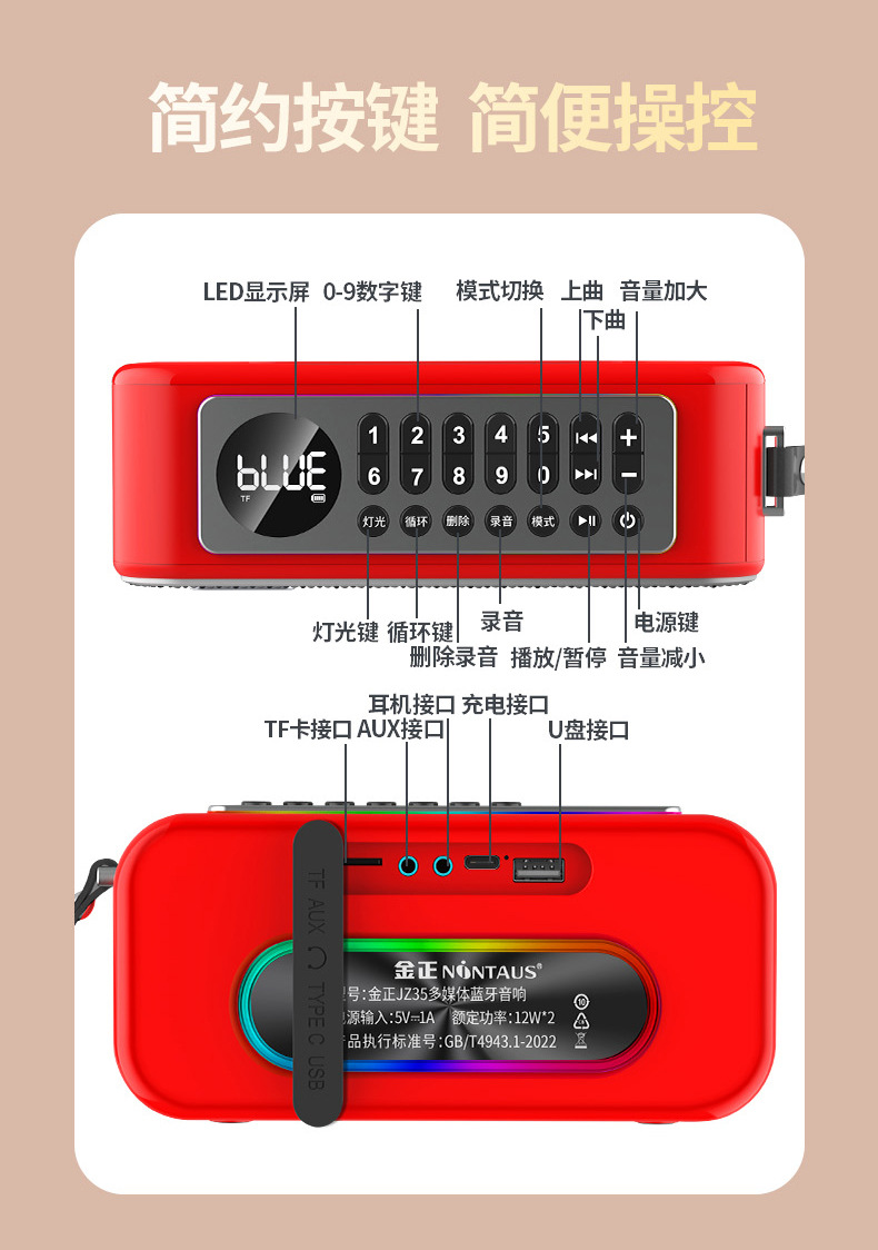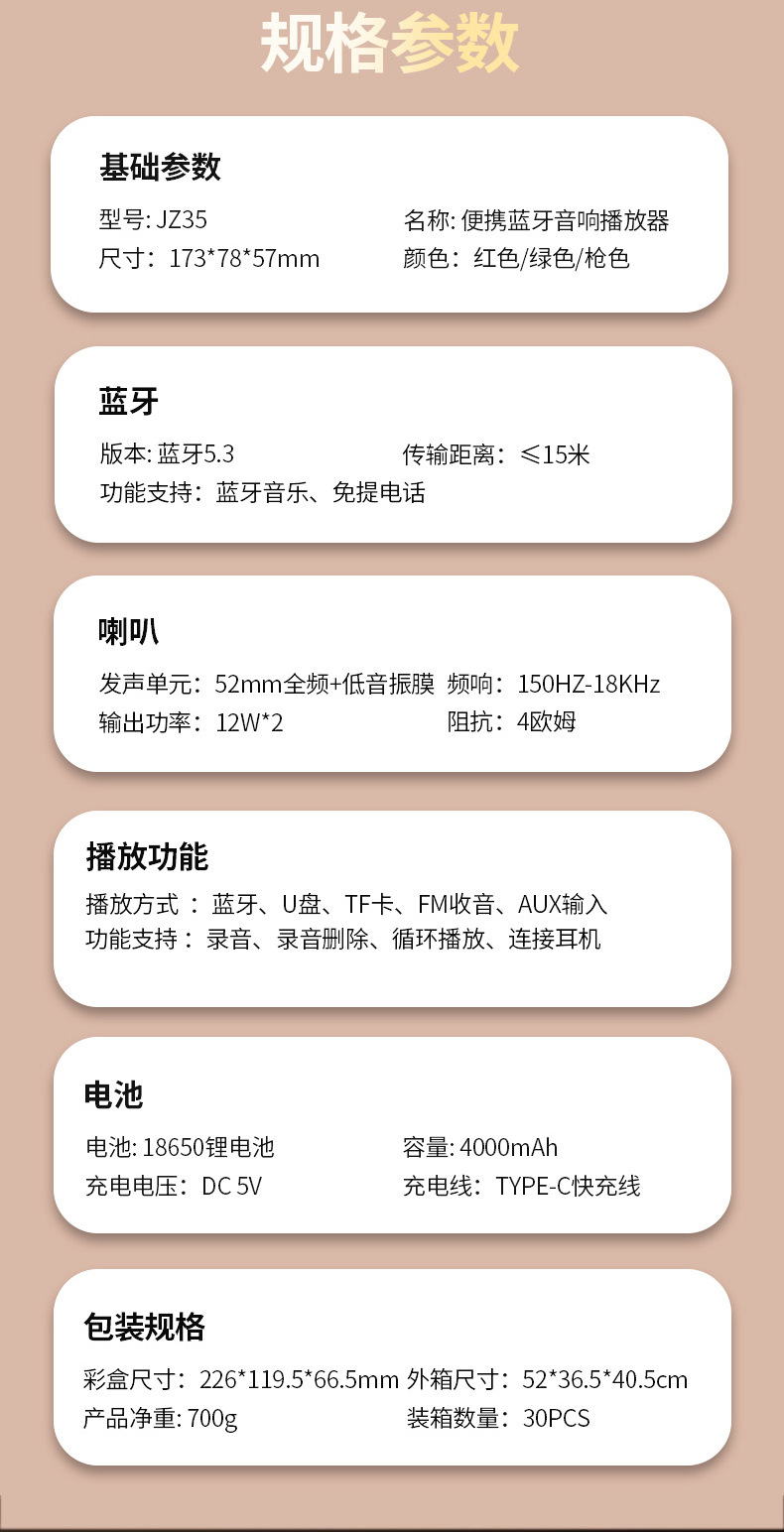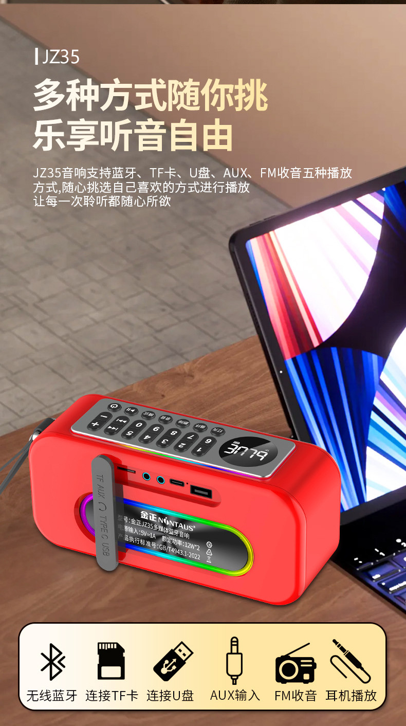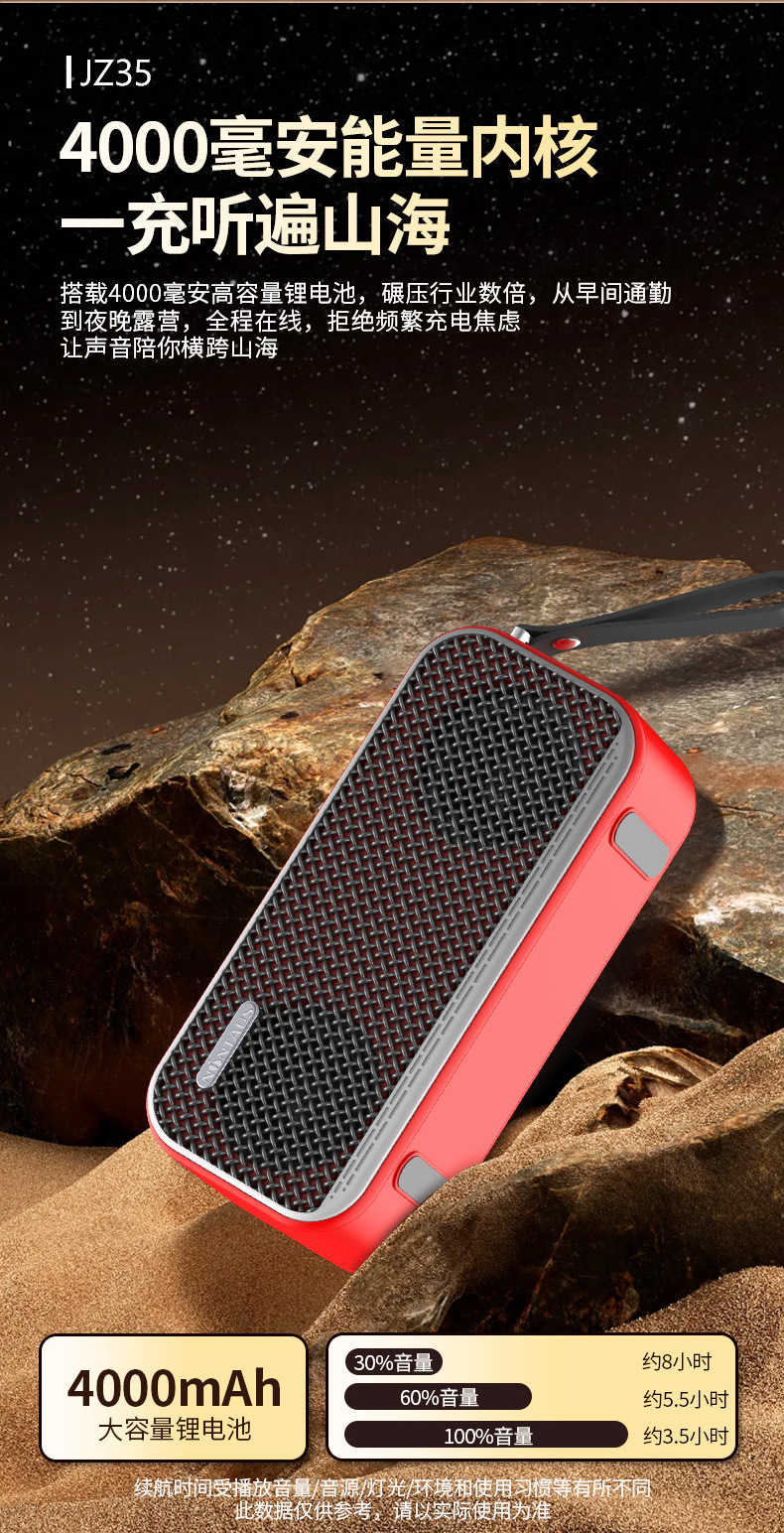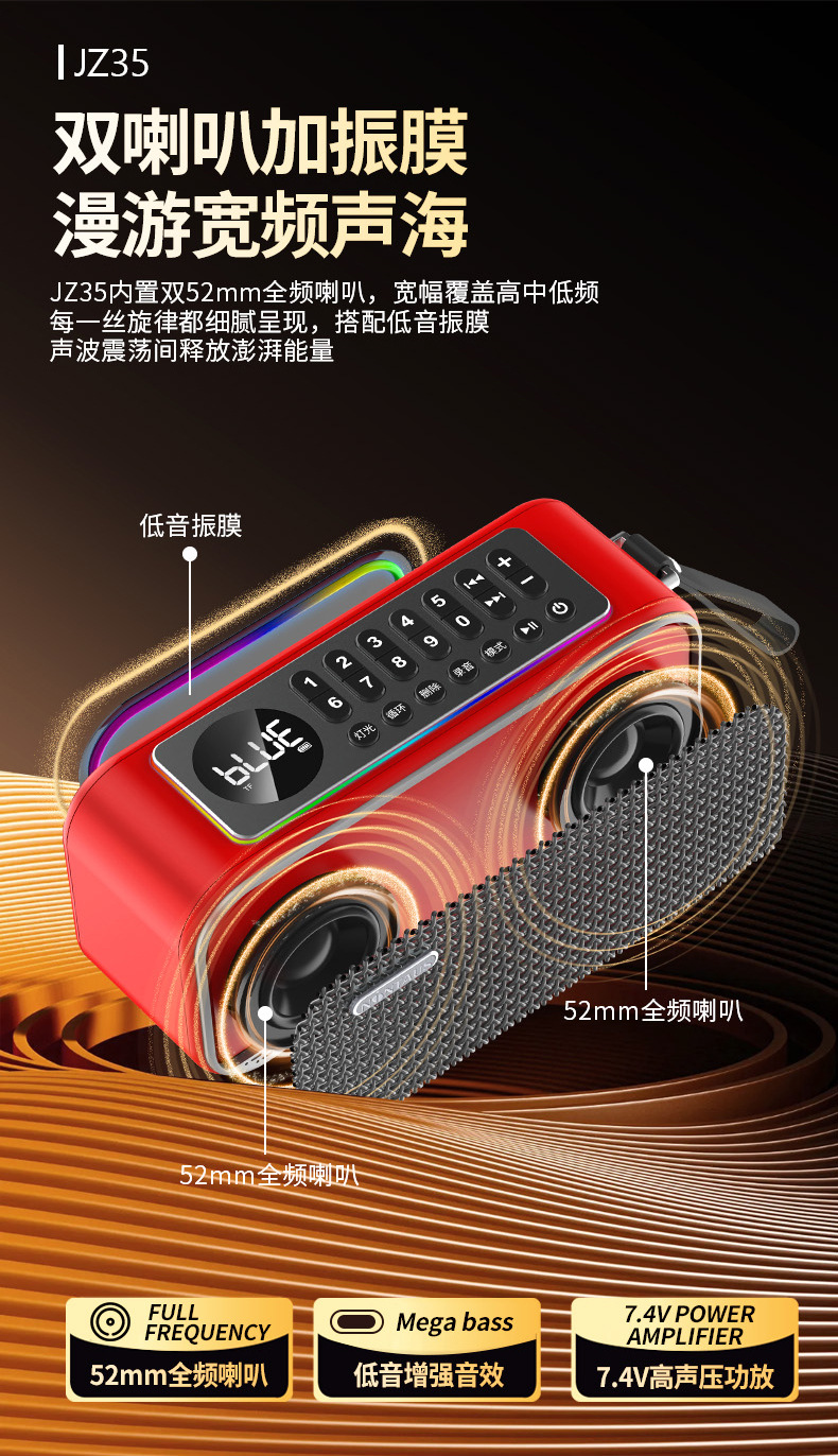 Jinzheng JZ35 무선 블루투스 스피커 듀얼 스피커 대용량 야외 홈 오디오 자동차 서브 우퍼