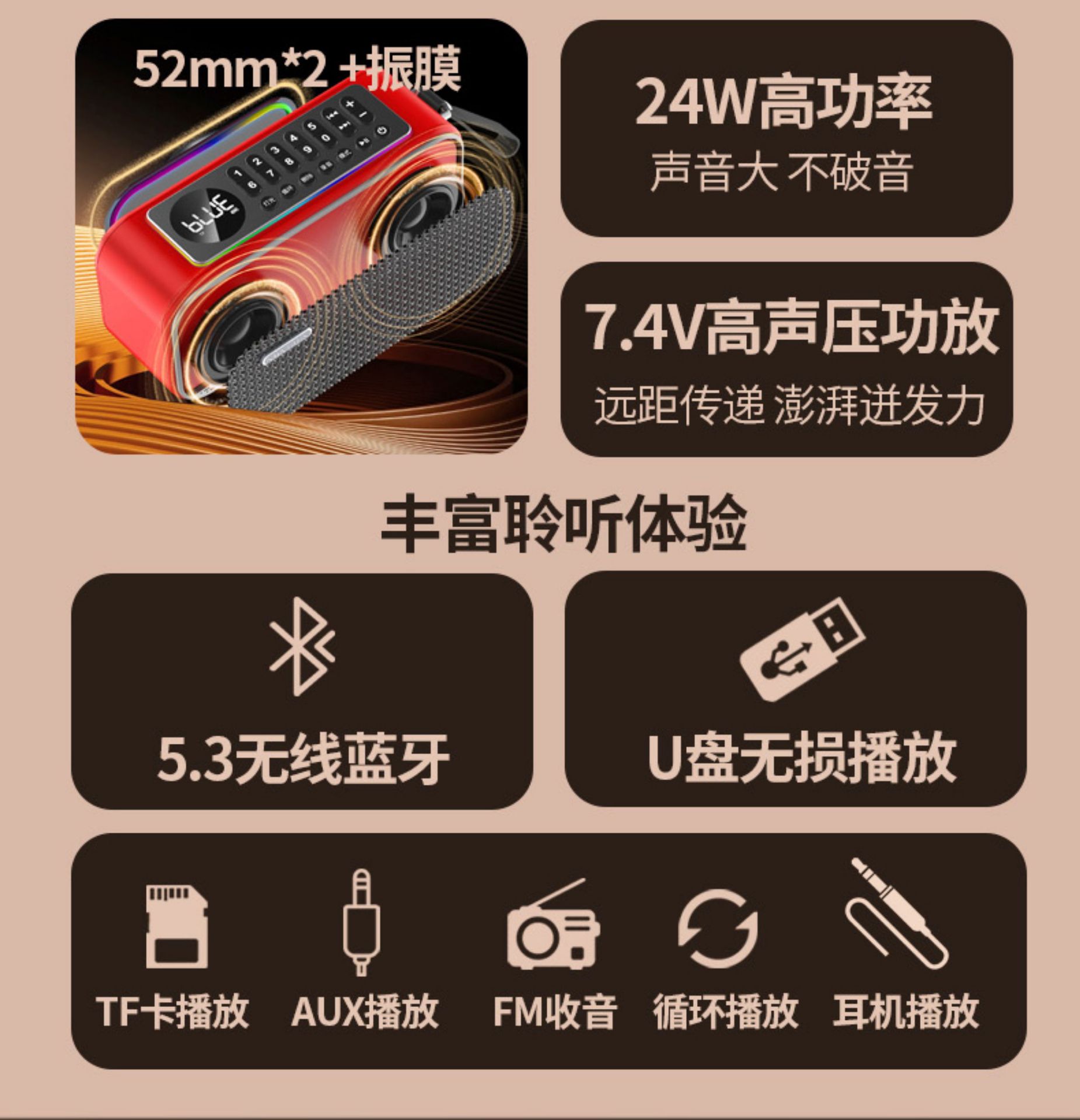 • 빨간색 [고출력 HIFI 음향 효과, 묵직한 저음] 화려한 조명