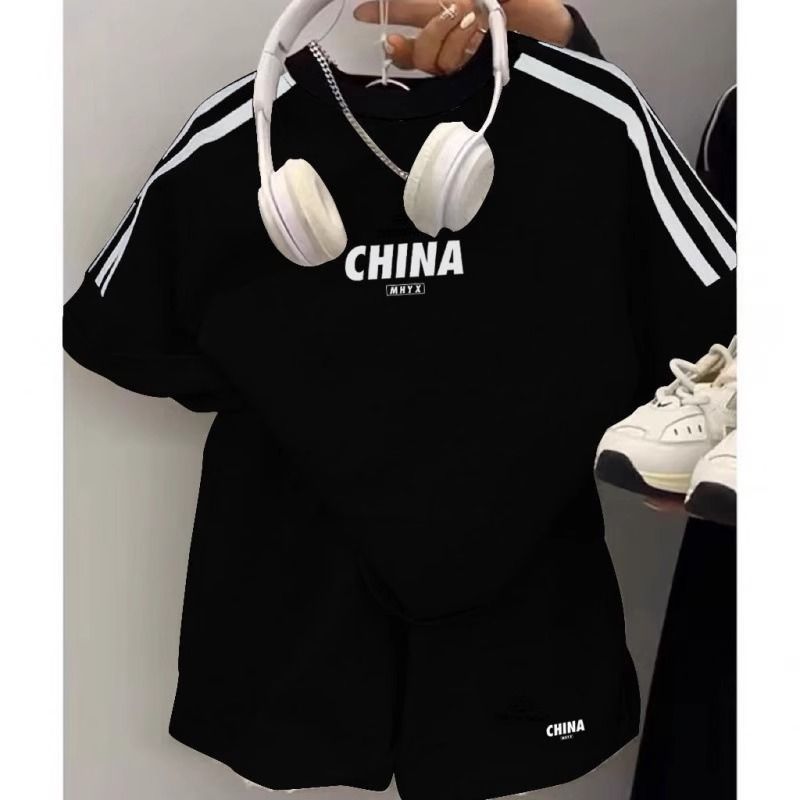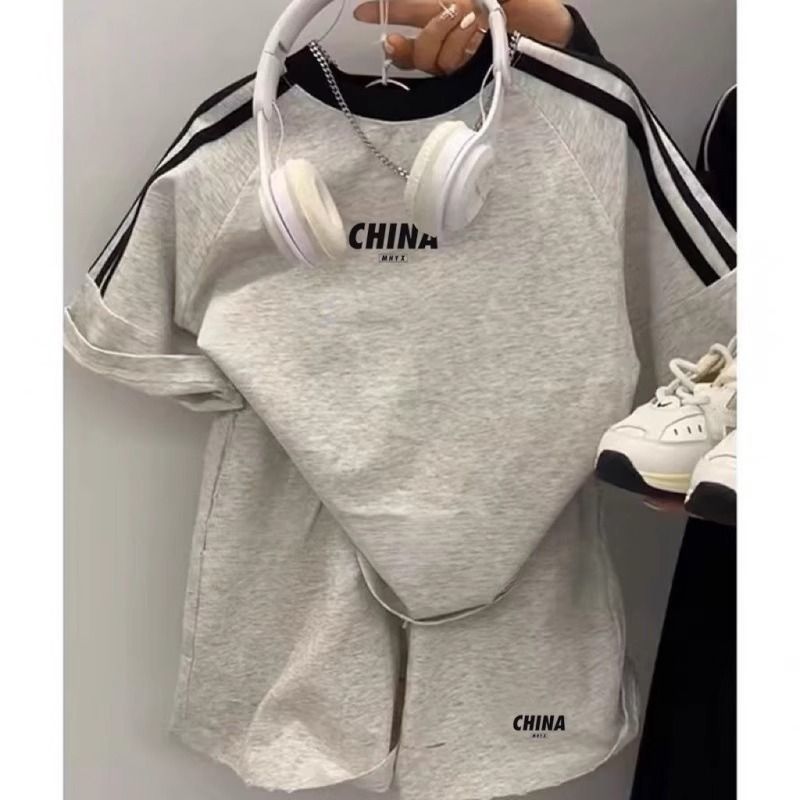 여름 소년 소녀 정장 2025 새로운 한국 스타일 반팔 아동복 새로운 캐주얼 루즈 스포츠 투피스 세트스토어 가기