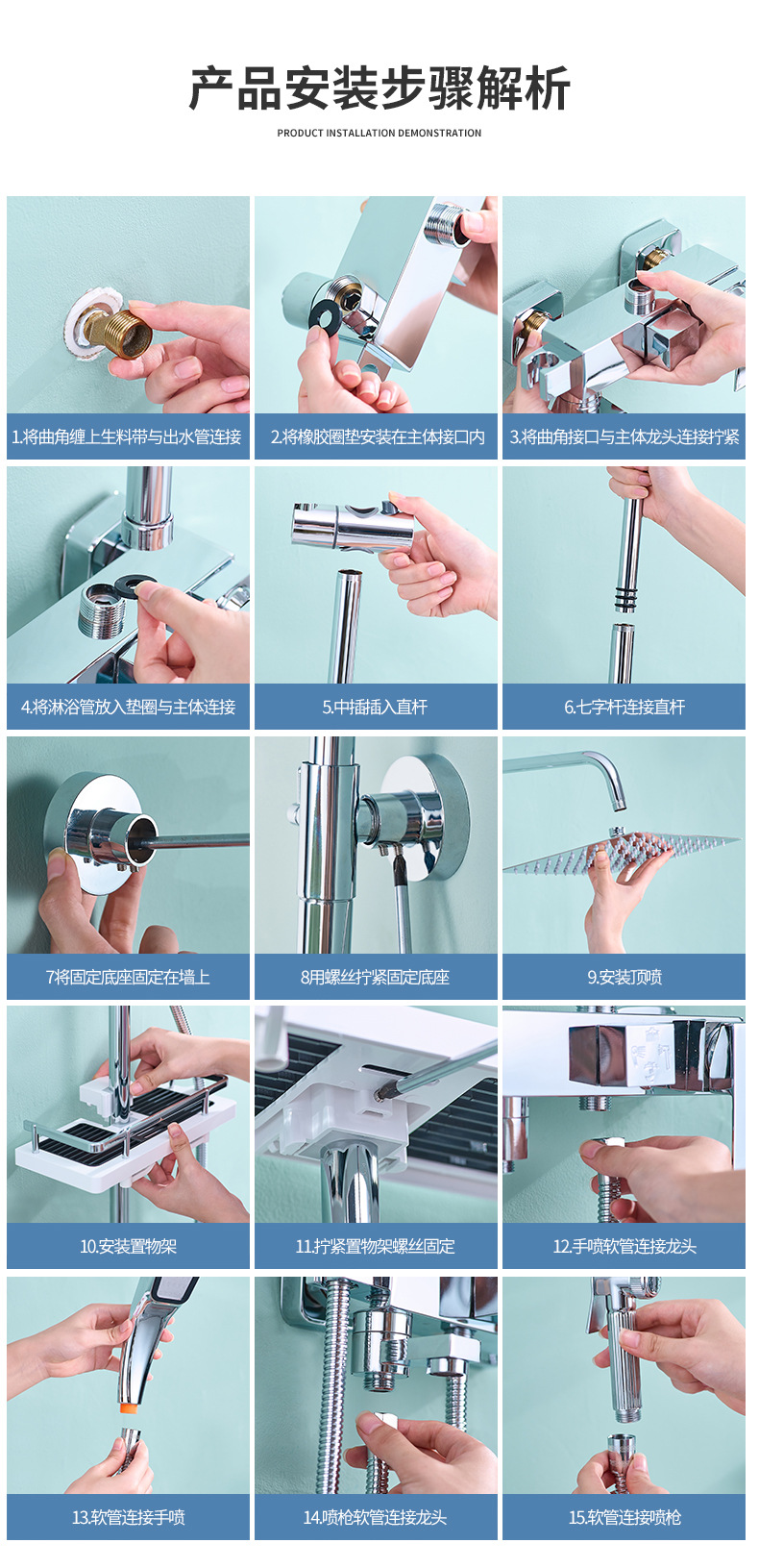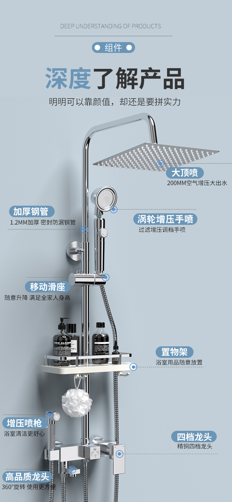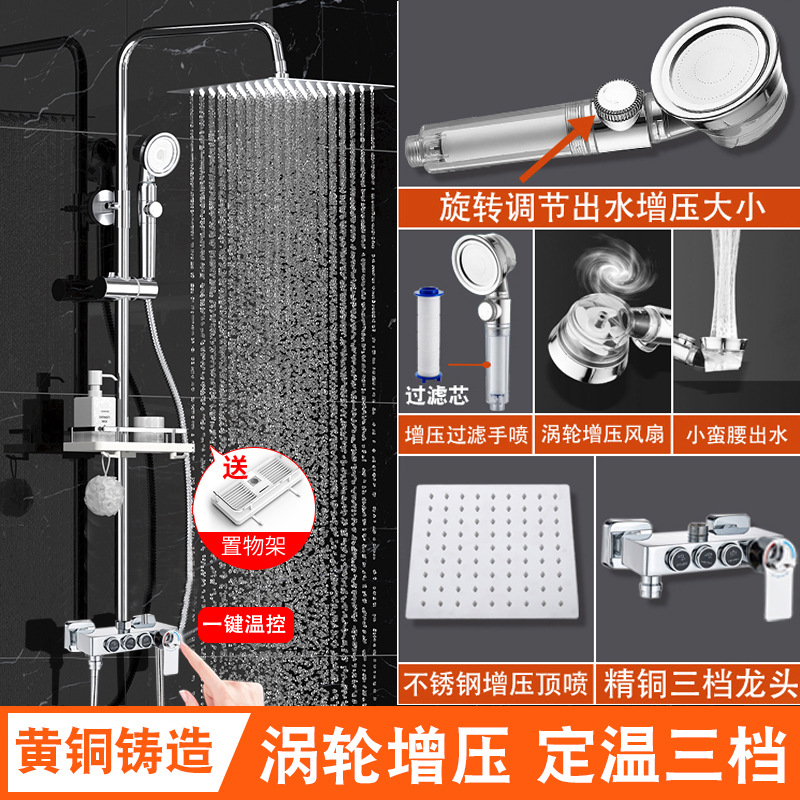 공식 정통 전체 구리 샤워 항온 샤워 세트 욕실 욕실 가정용 터보 차저 레인 샤워 헤드스토어 가기