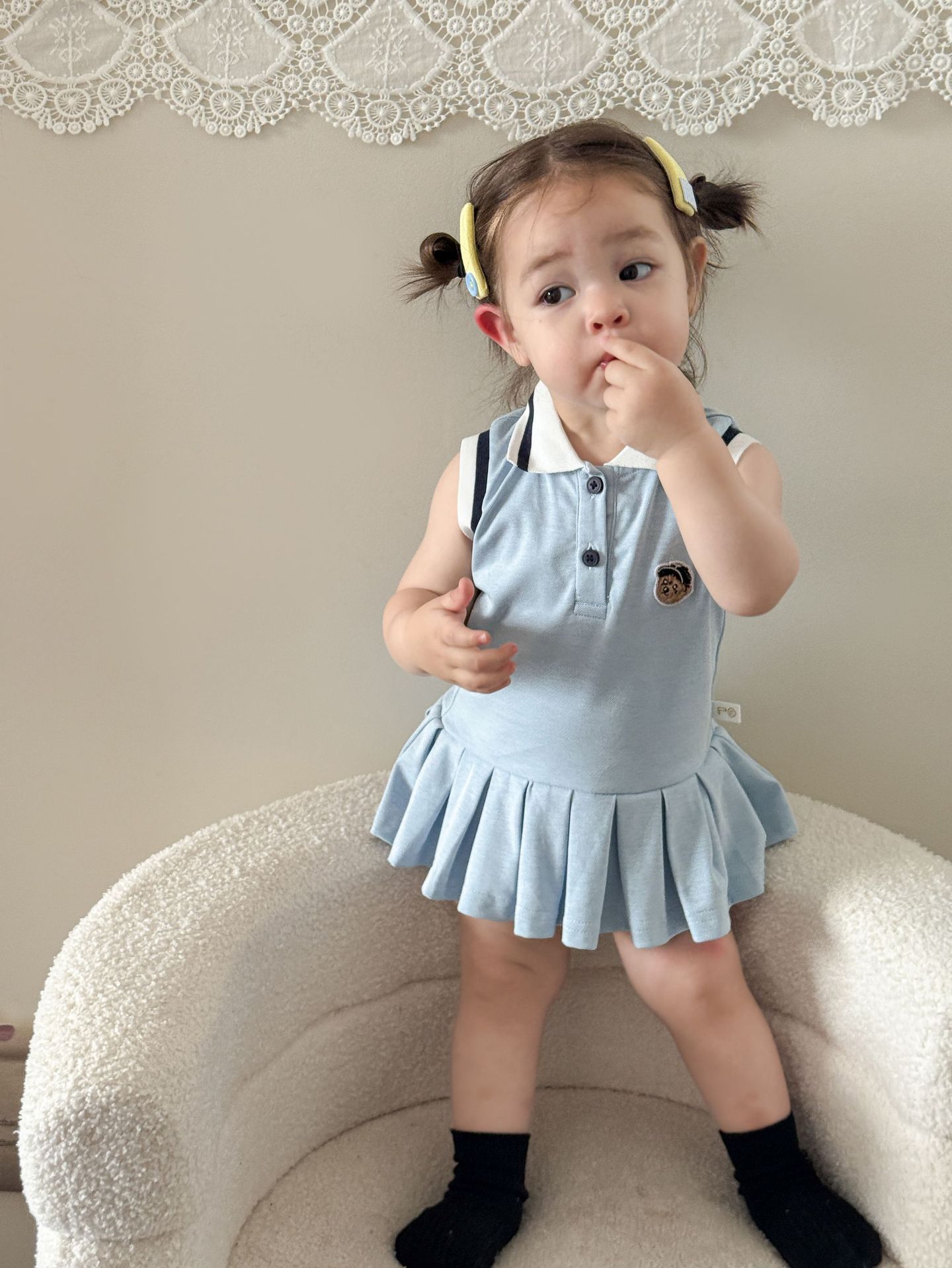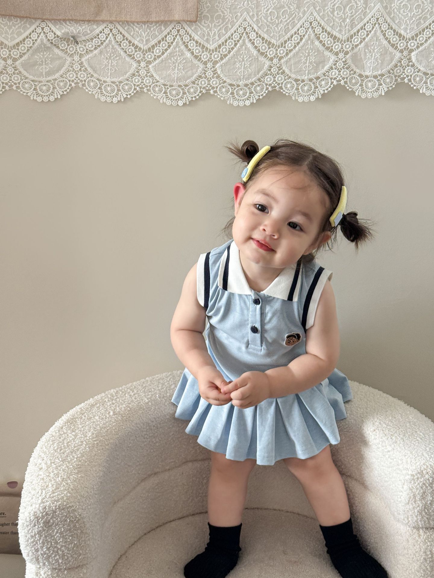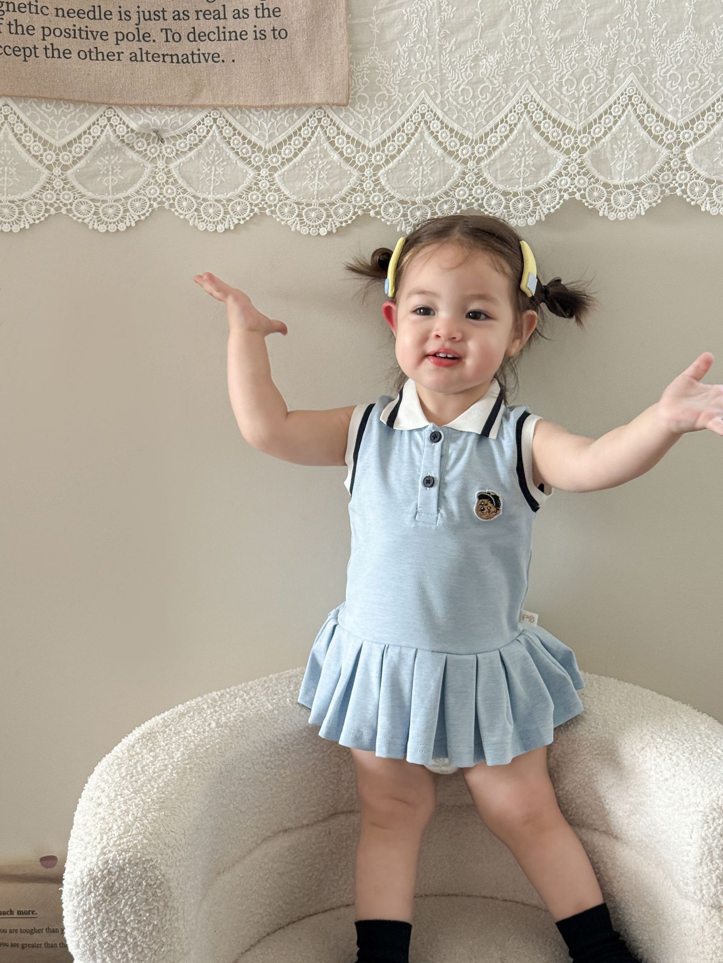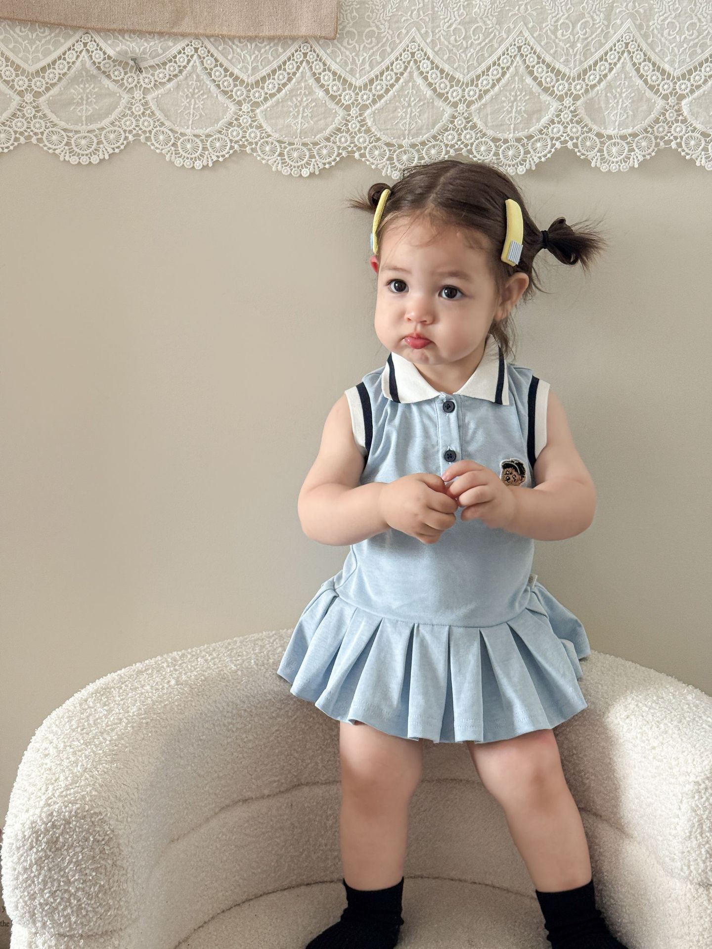 사탕수수 어린이 의류 소녀 드레스 여름 2025 새로운 어린이 대학 스타일 폴로 칼라 공주 스커트 아기 옷