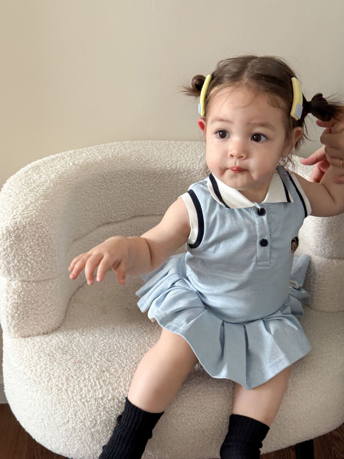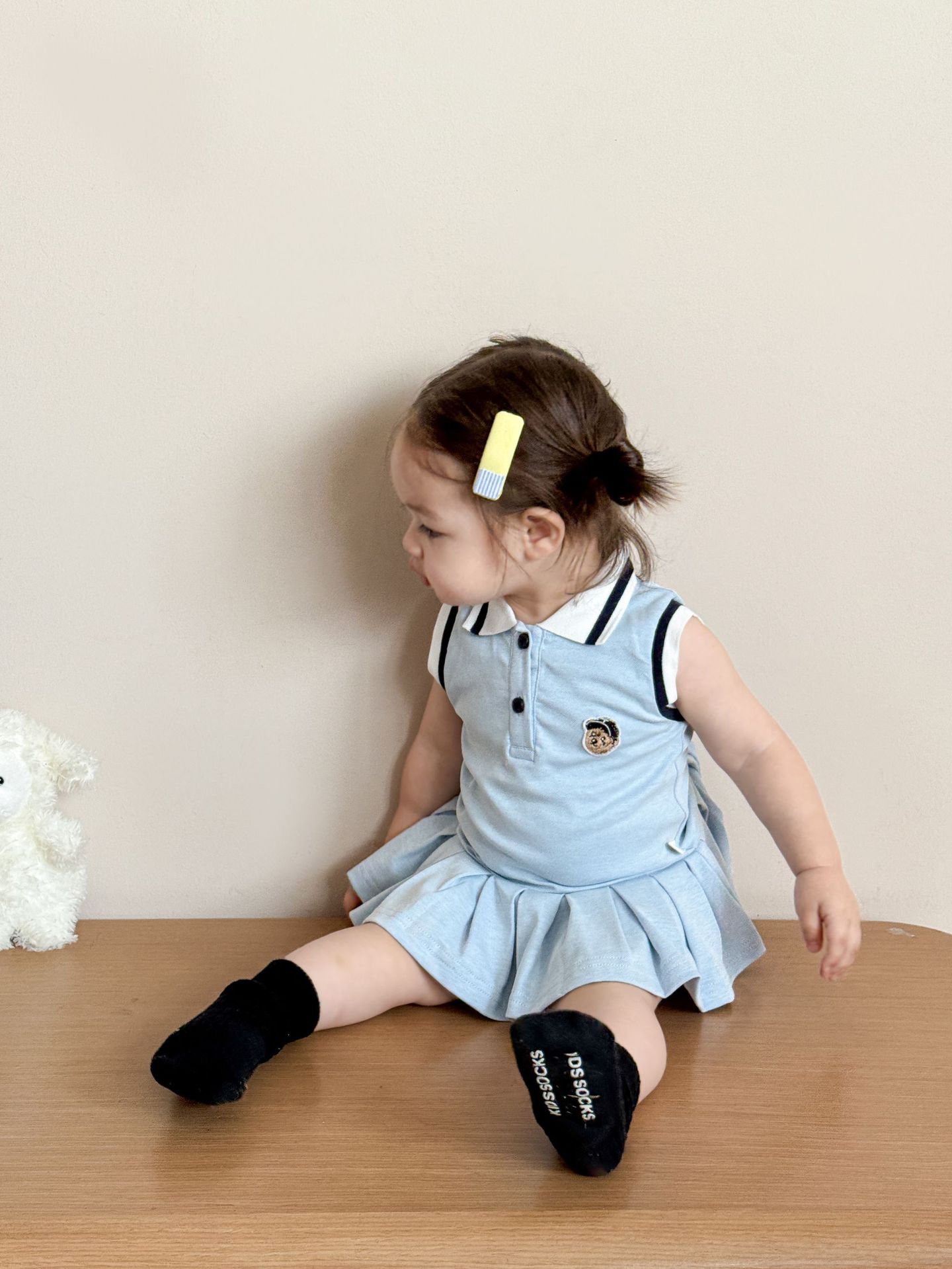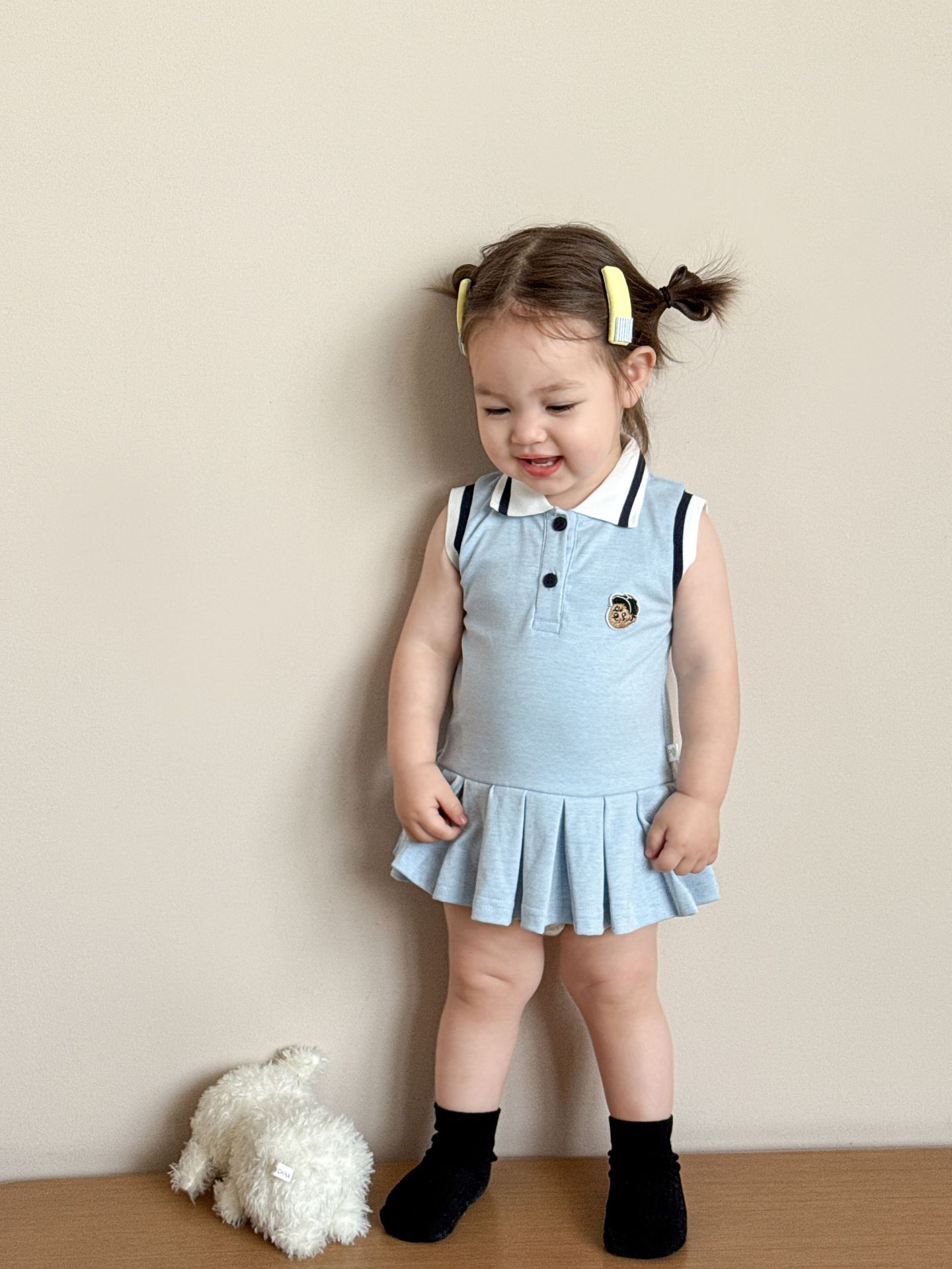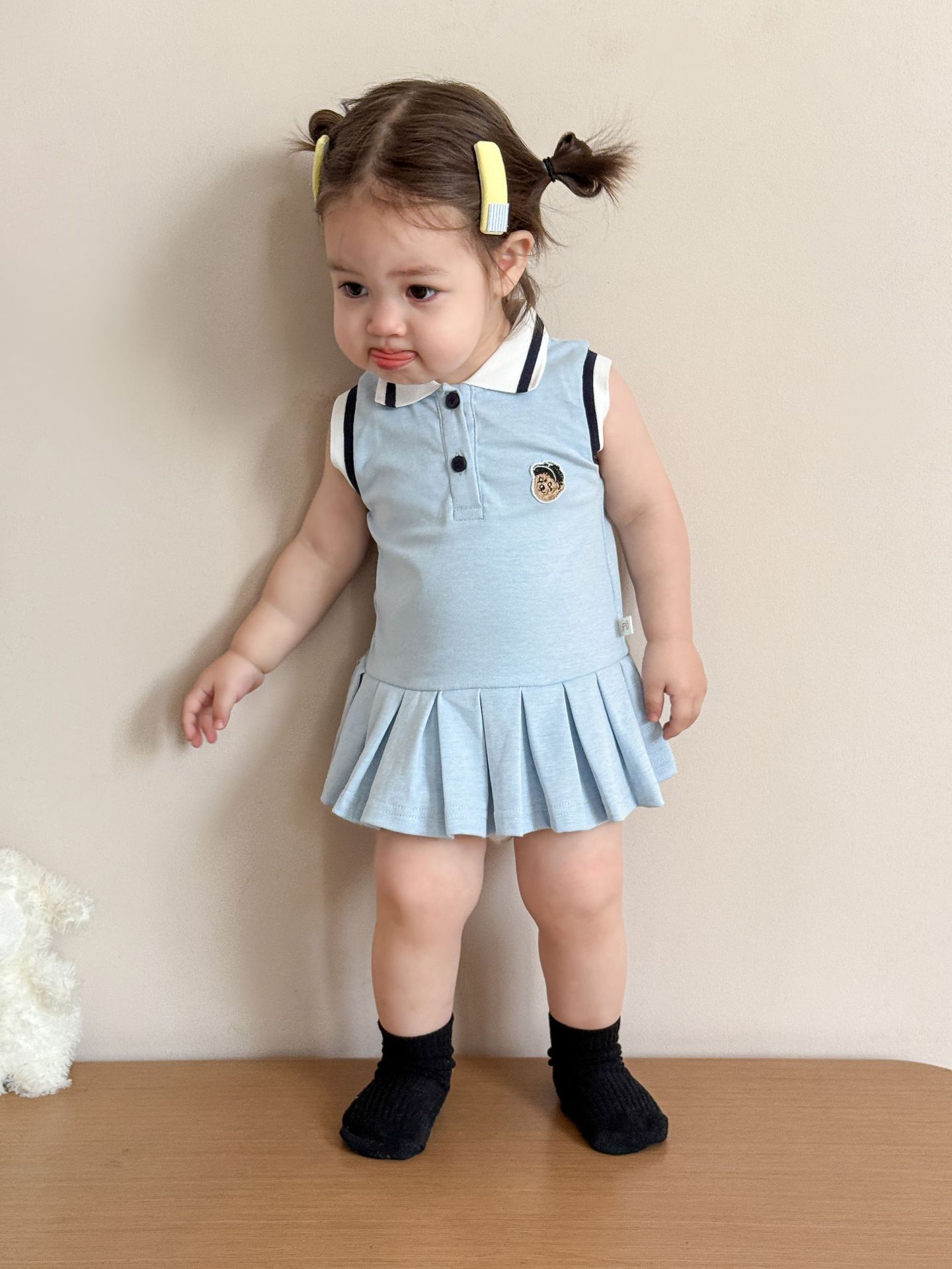 사탕수수 어린이 의류 소녀 드레스 여름 2025 새로운 어린이 대학 스타일 폴로 칼라 공주 스커트 아기 옷