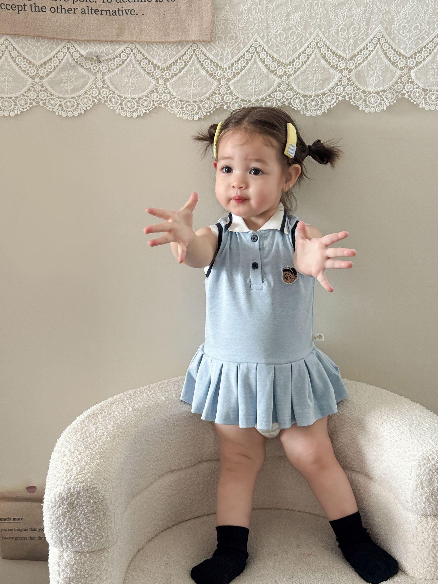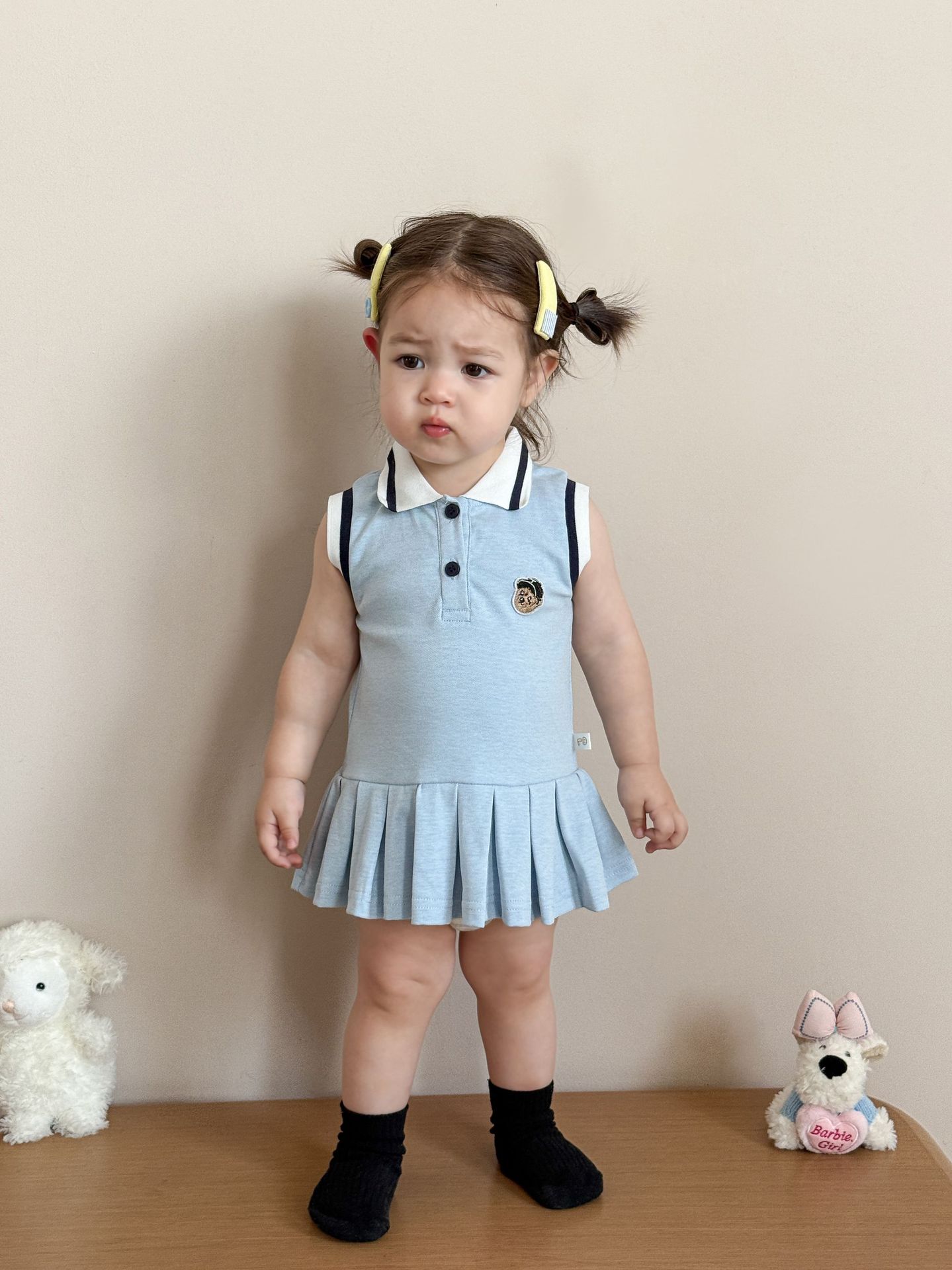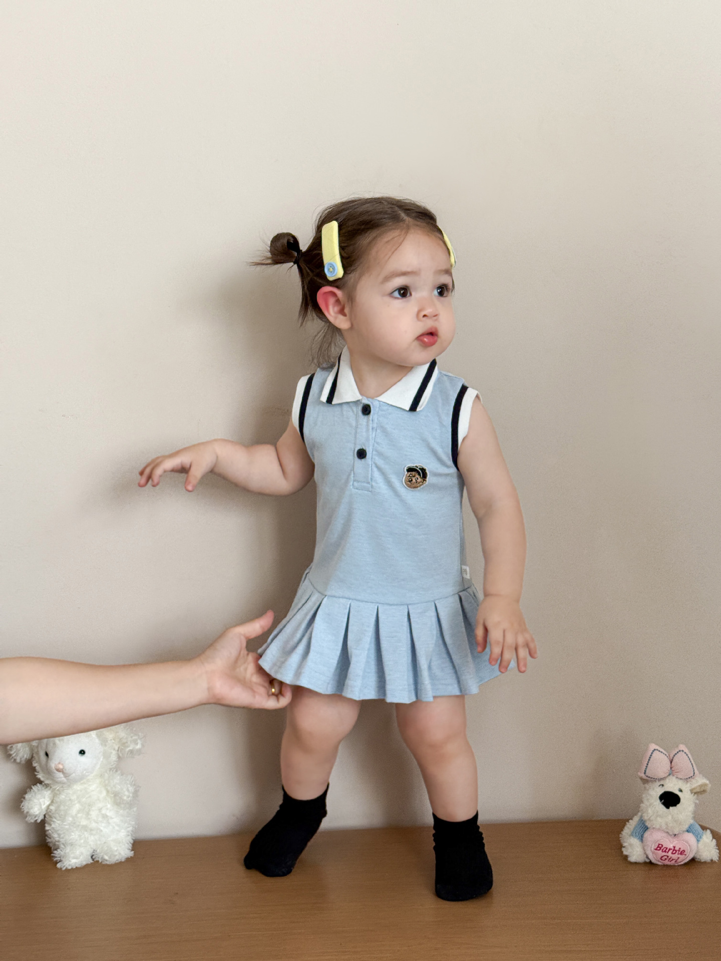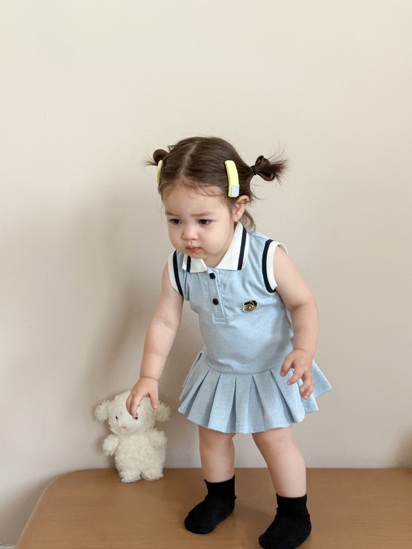 사탕수수 어린이 의류 소녀 드레스 여름 2025 새로운 어린이 대학 스타일 폴로 칼라 공주 스커트 아기 옷