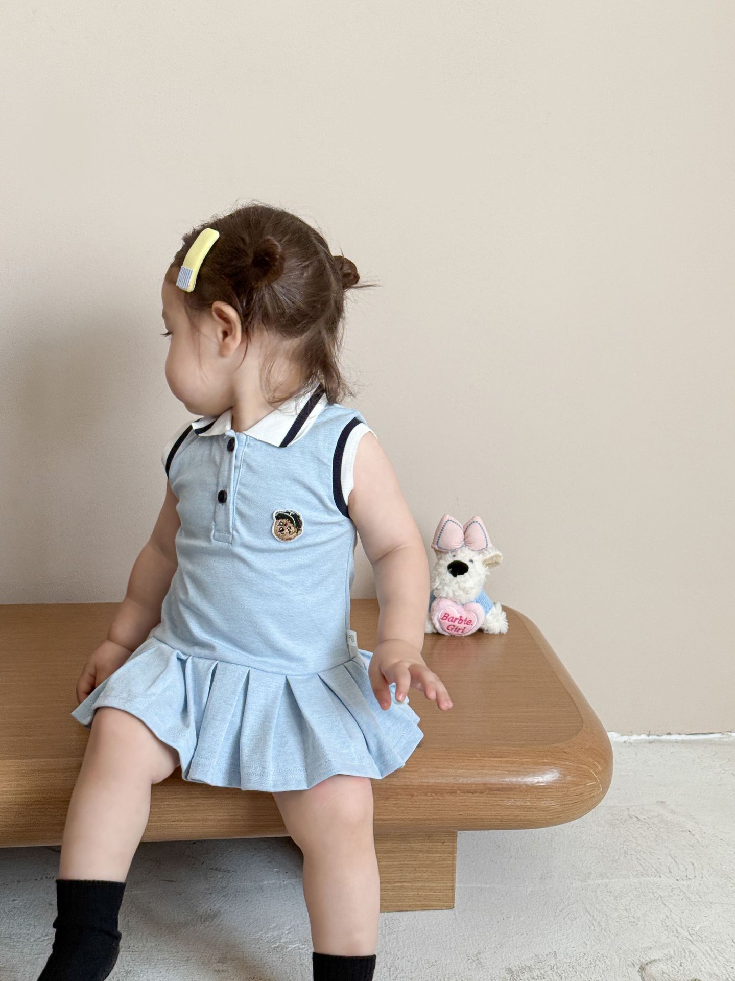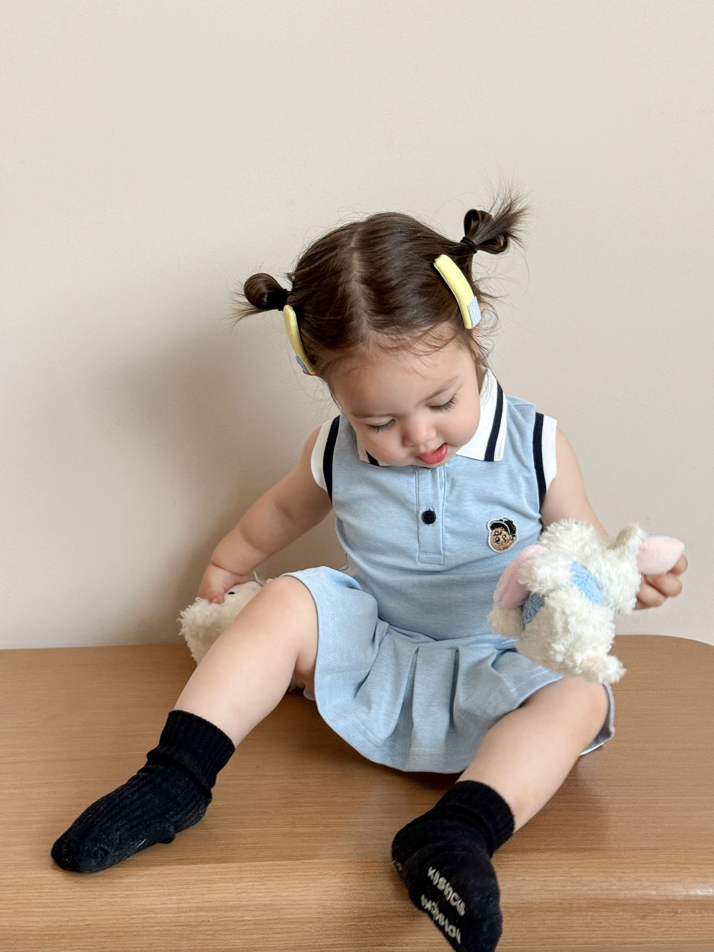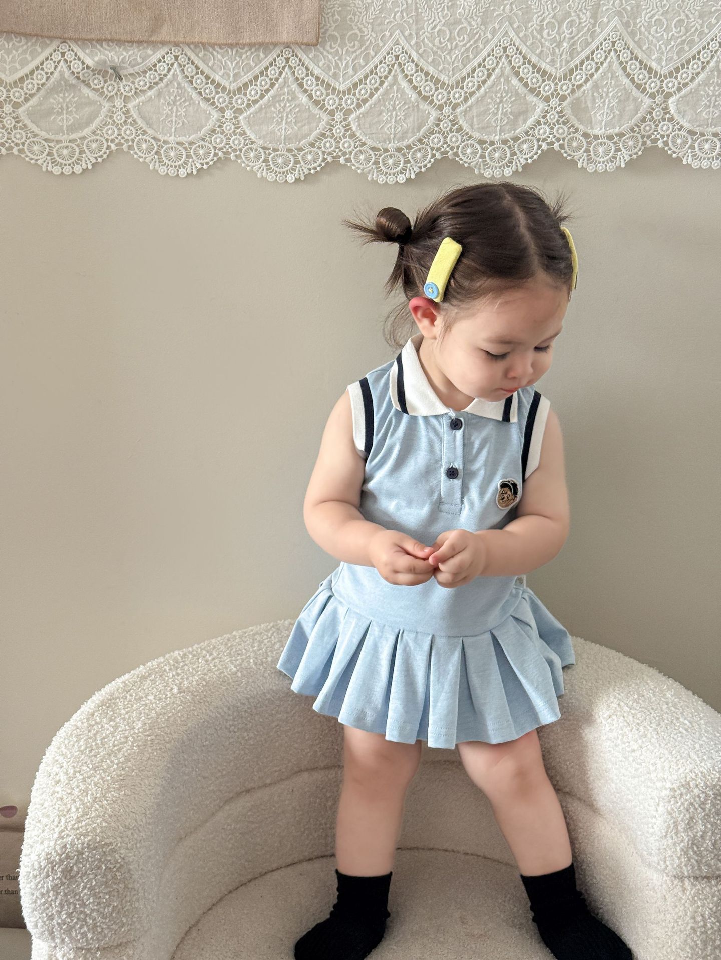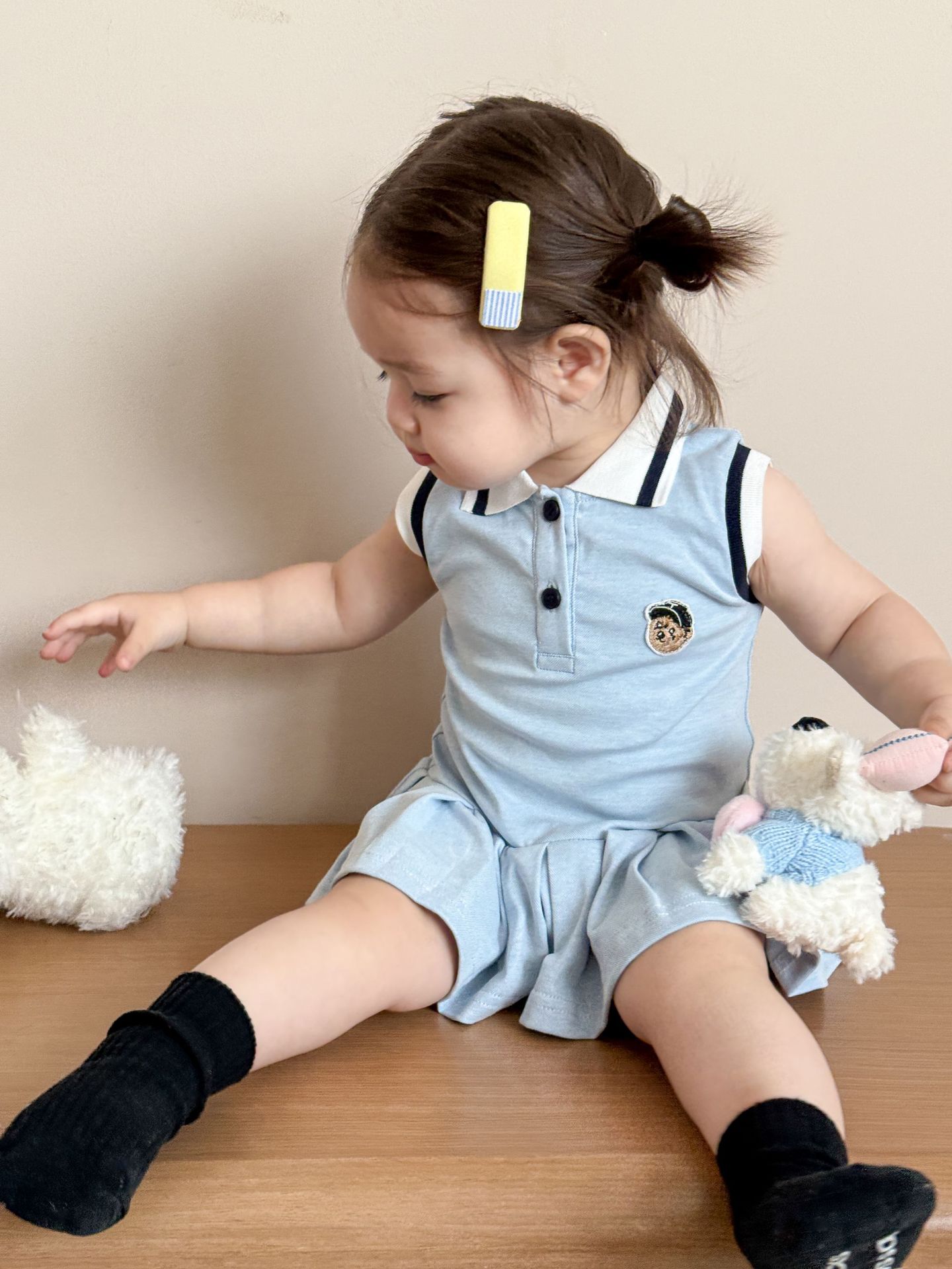 사탕수수 어린이 의류 소녀 드레스 여름 2025 새로운 어린이 대학 스타일 폴로 칼라 공주 스커트 아기 옷스토어 가기