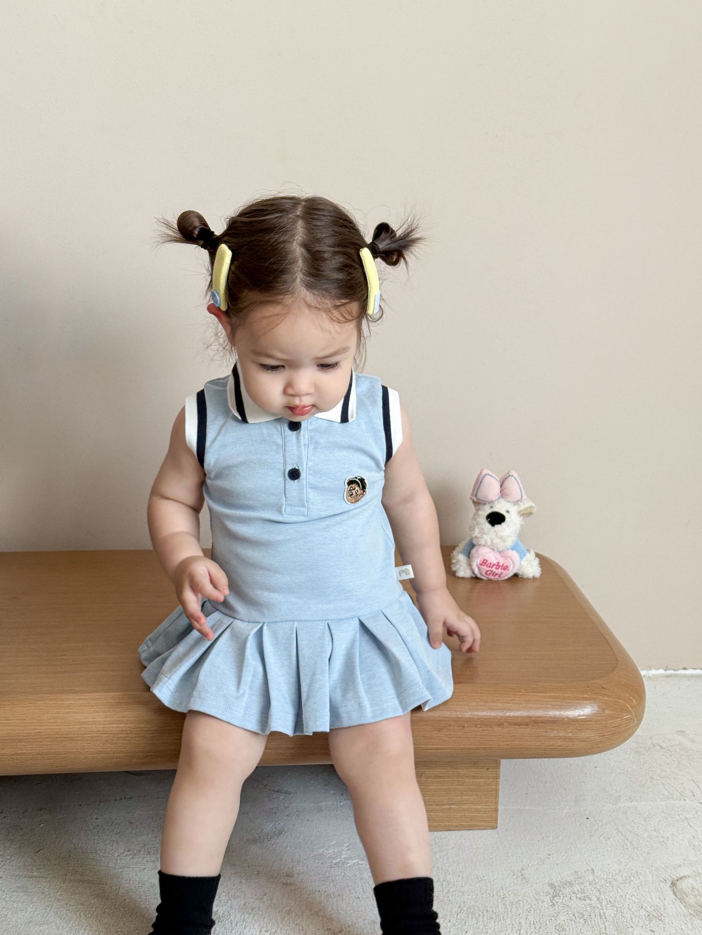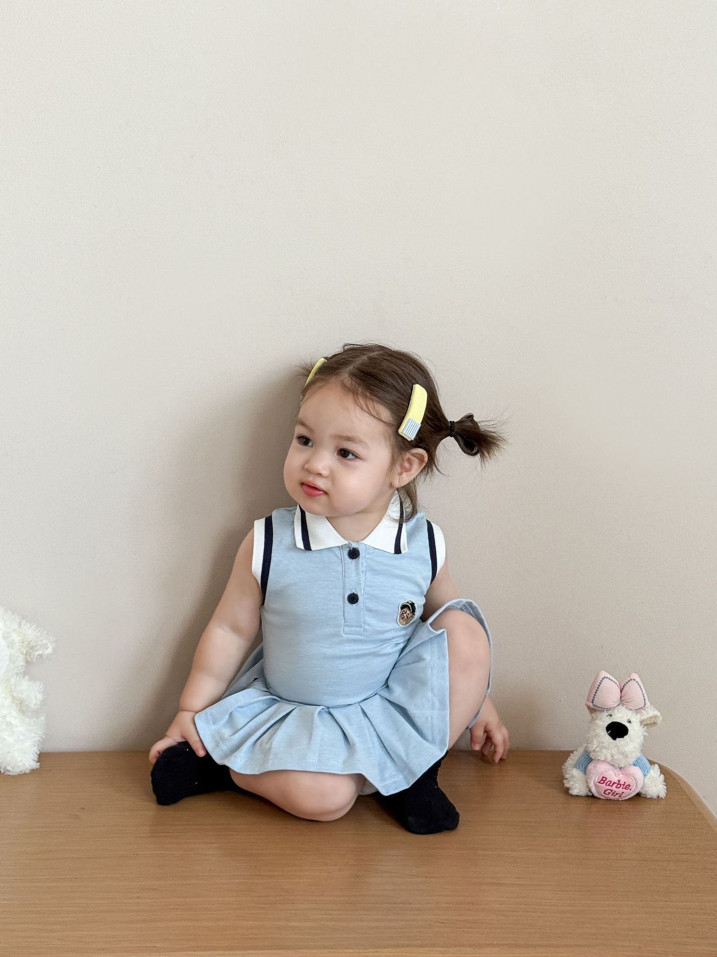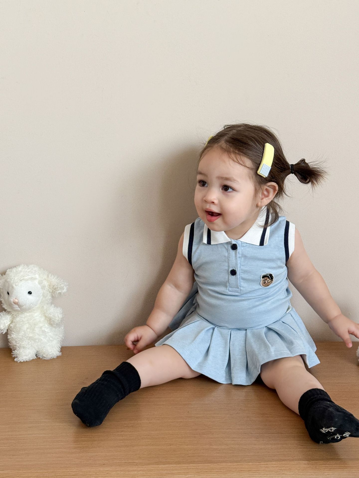 사탕수수 어린이 의류 소녀 드레스 여름 2025 새로운 어린이 대학 스타일 폴로 칼라 공주 스커트 아기 옷스토어 가기