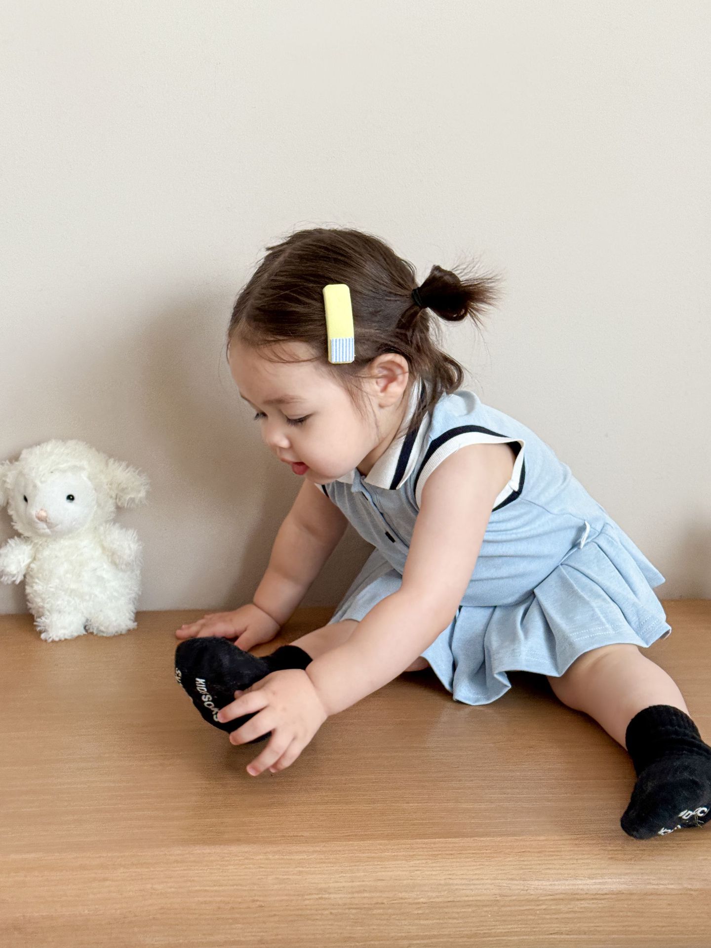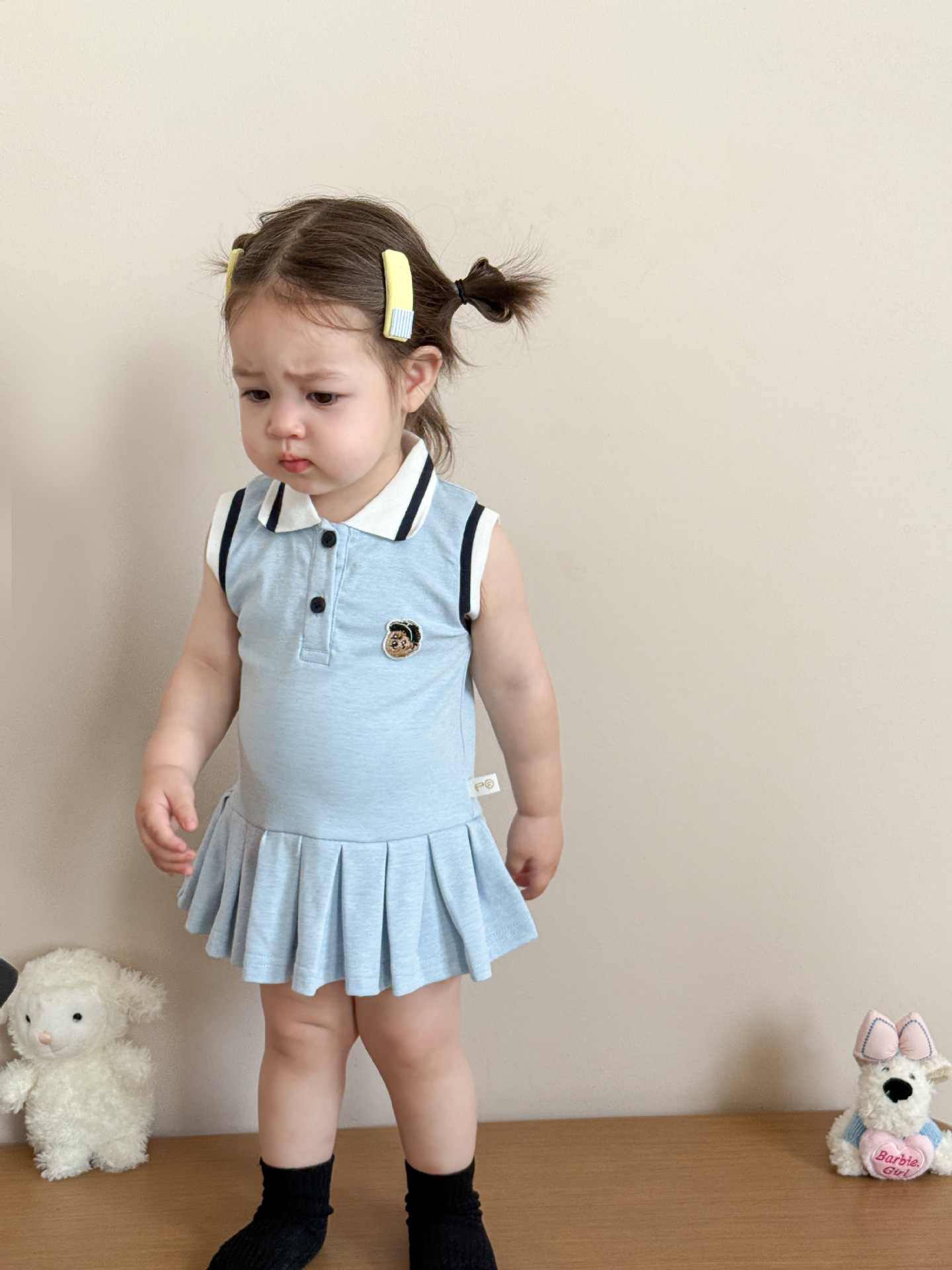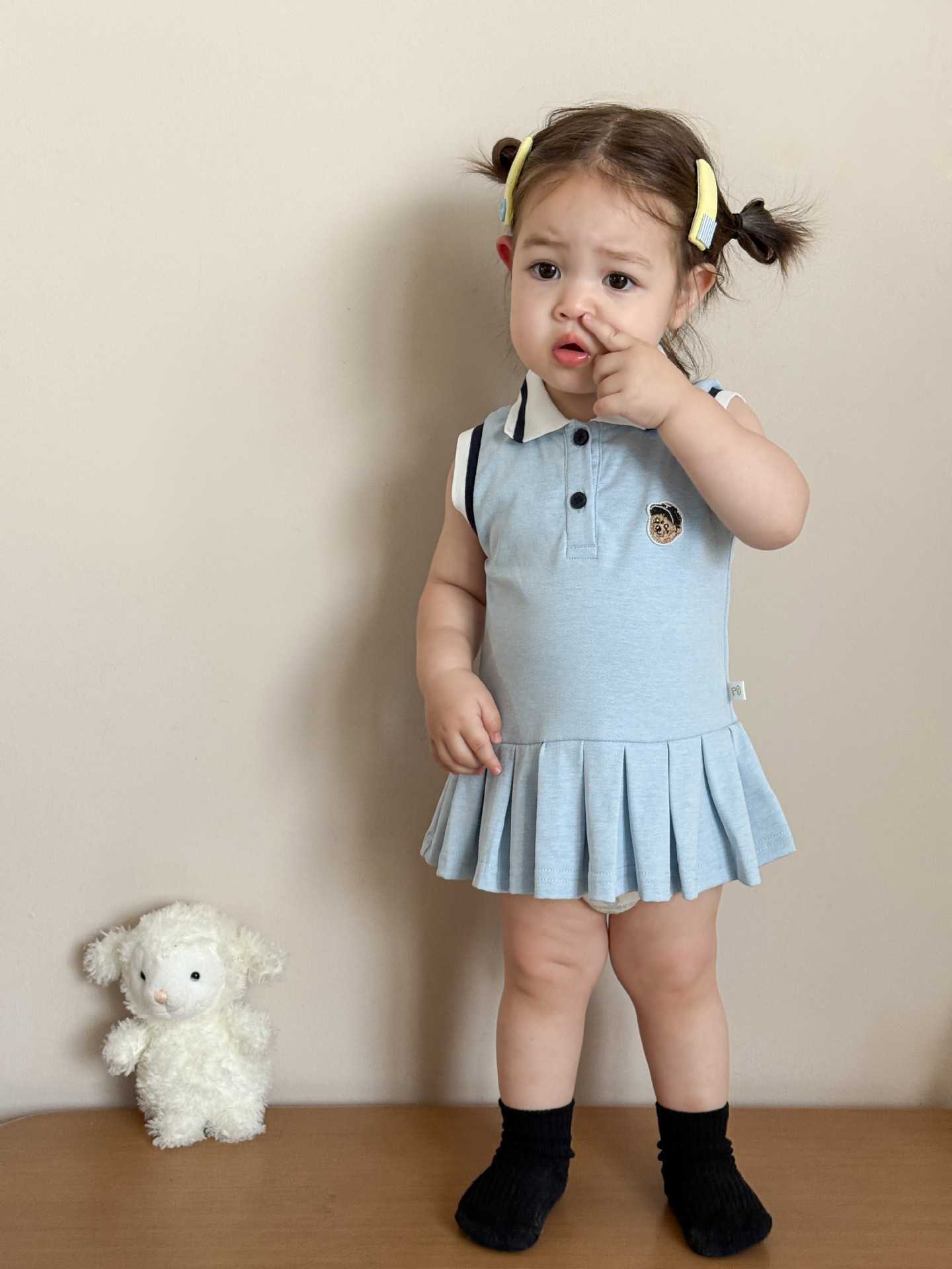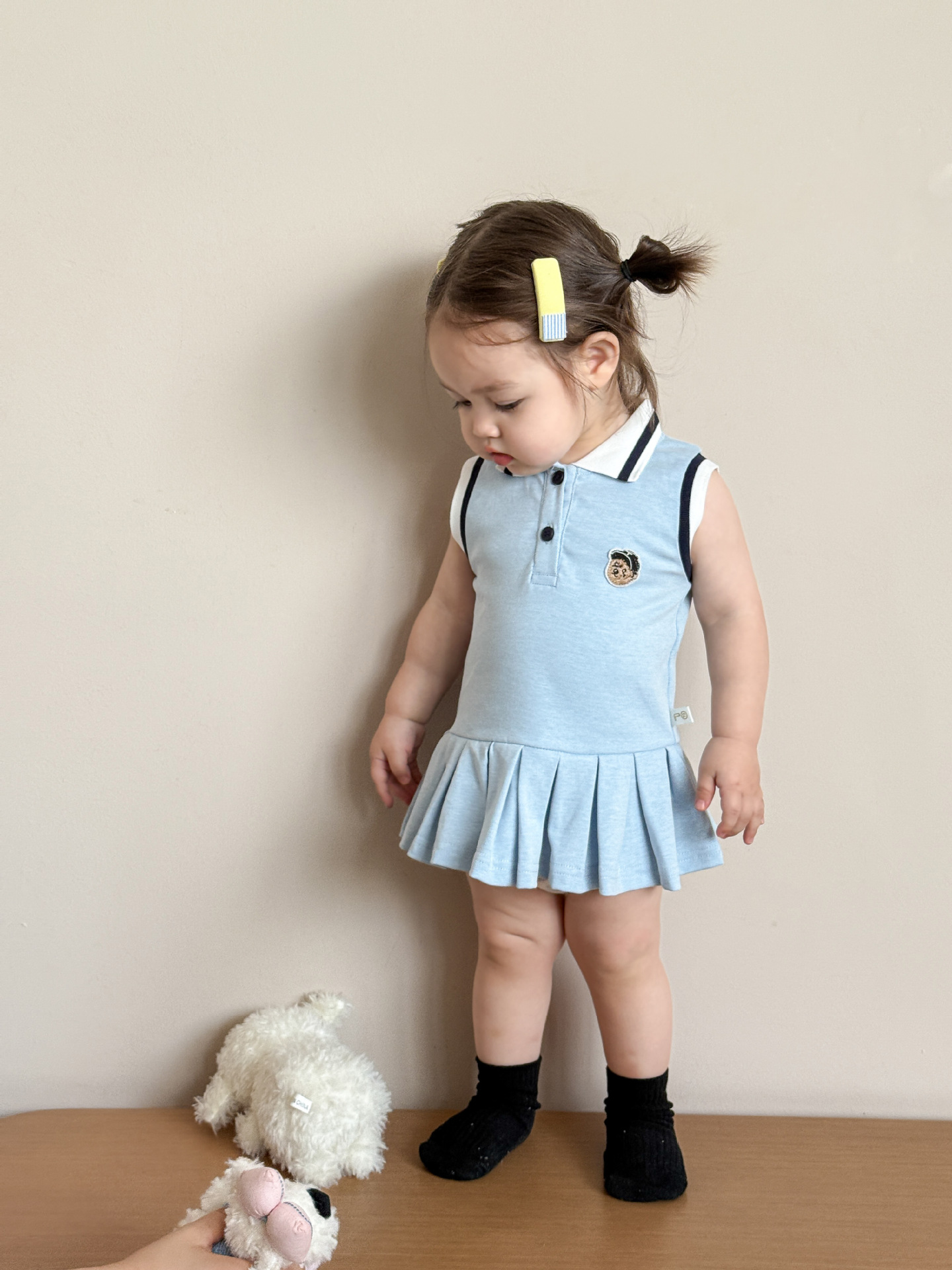 사탕수수 어린이 의류 소녀 드레스 여름 2025 새로운 어린이 대학 스타일 폴로 칼라 공주 스커트 아기 옷스토어 가기