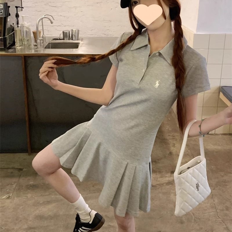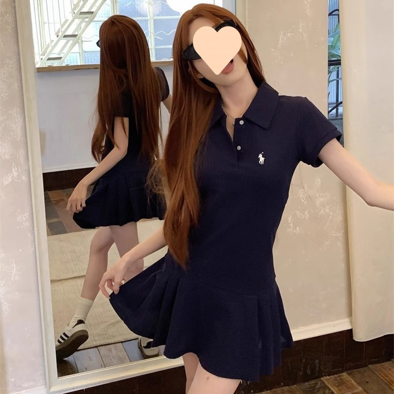 여름 새로운 대학 스타일 칼라 드레스 여성 캐주얼 스포츠 스타일 디자인 슬리밍 주름 치마 허리 짧은 치마