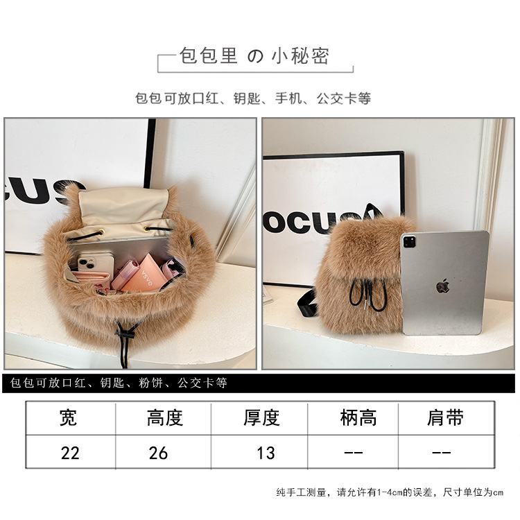 크로스보더 가을 겨울 퍼 가방 여성용 신상 한국 스타일 패션 백팩 세련된 퍼 백팩 다용도 백팩