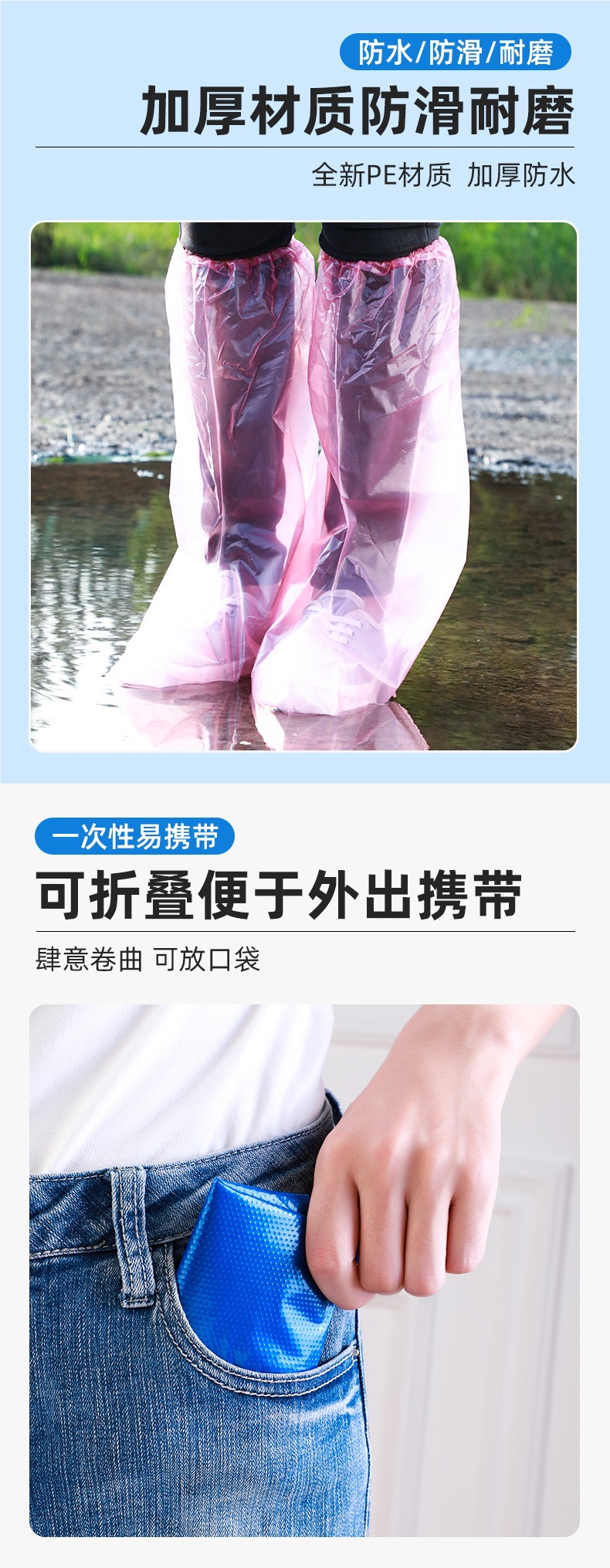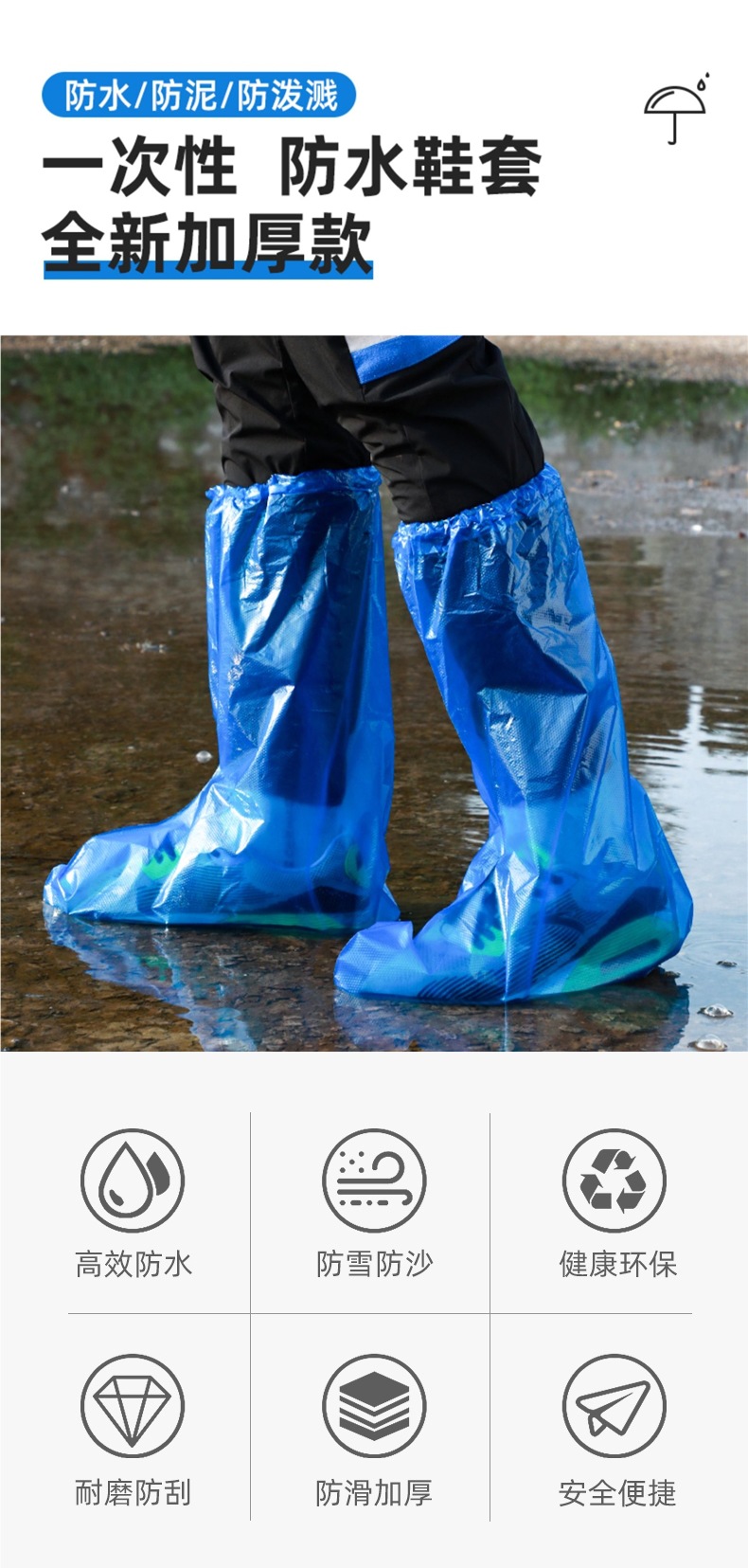 일회용 레인슈즈 커버, 방수, 미끄럼 방지, 두꺼운 어린이 비옷, 비오는 날 성인용 높은 장화, 바다에서 신는 레인부츠스토어 가기
