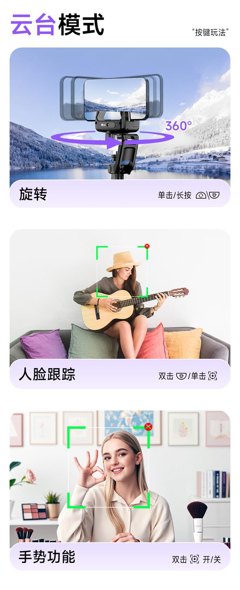 단일 축 안정기 C22 지능형 얼굴 추적 휴대용 라이브 방송 촬영 손떨림 방지 짐벌 브래킷 셀카봉