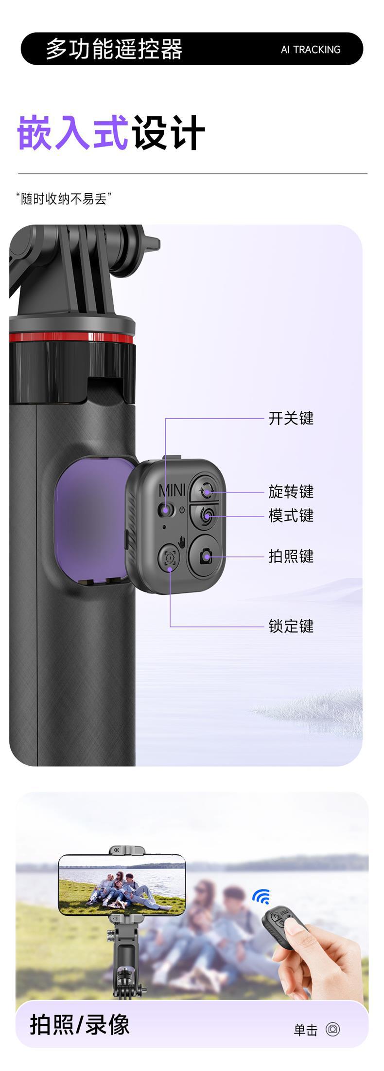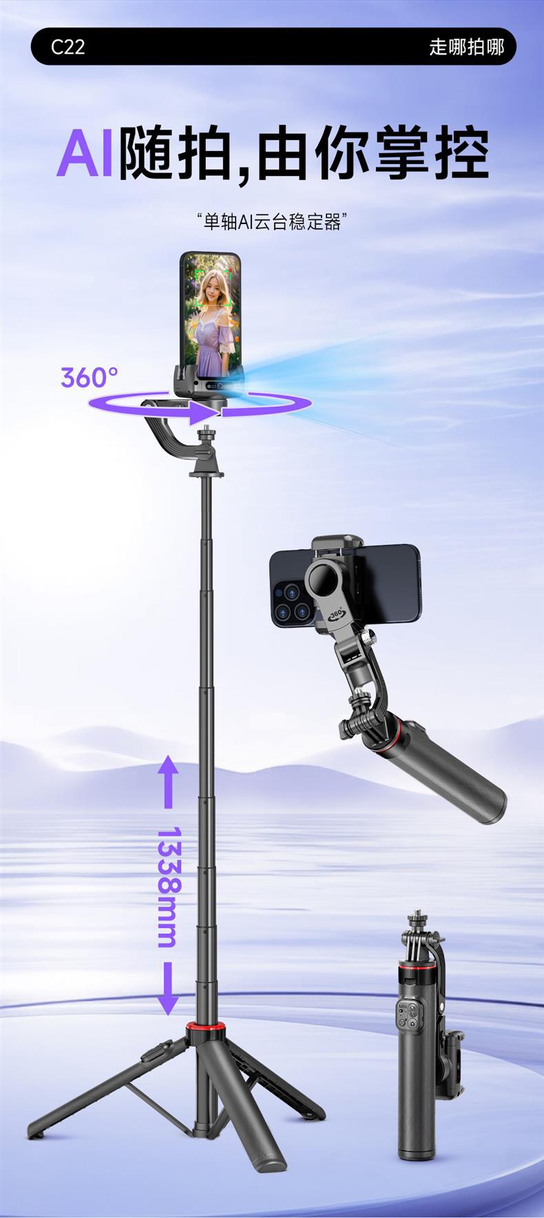 • 【C22- 1.3m 】안정적인 짐벌 + 알루미늄 합금 폴 + 리모콘 + AI 카메라