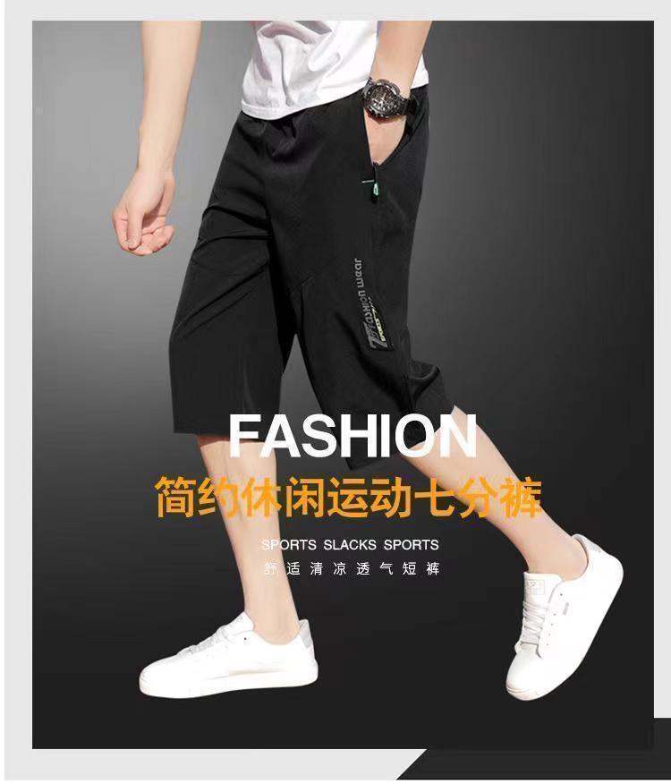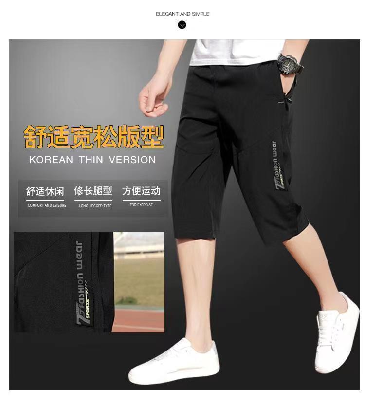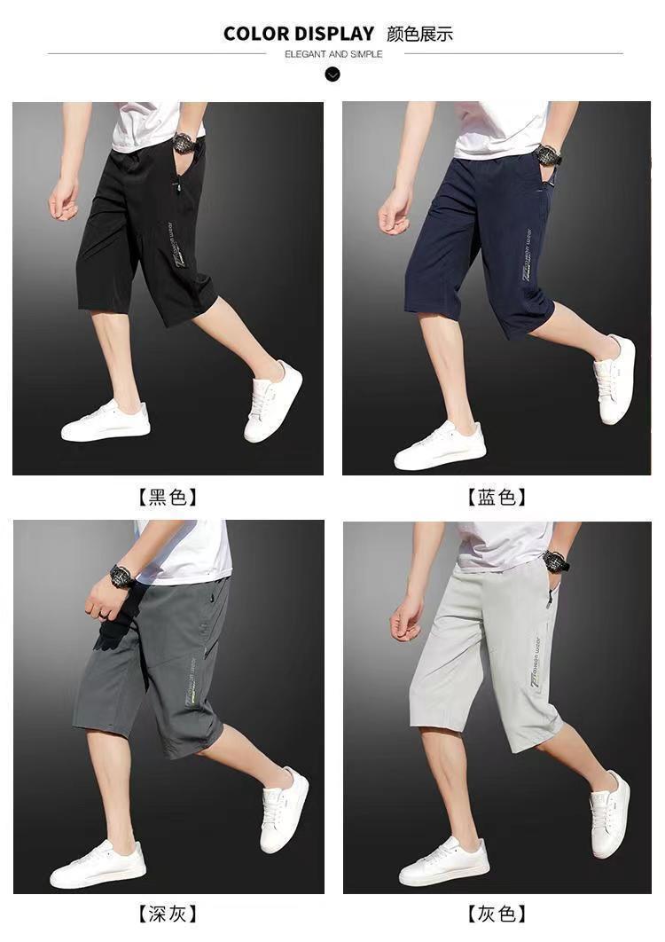 여름 아우터로 입기 좋은 남성용 하이엔드 아이스 실크 속건 크롭 팬츠 트렌디 브랜드 루즈 스트레이트 스포츠 캐주얼 팬츠 얇은 반바지스토어 가기