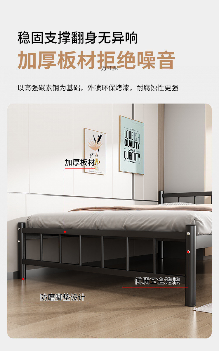 단철 싱글 침대 학생 직원 기숙사 철제 침대 1.35m 두꺼운 임대 주택 간단한 현대 철제 프레임 침대스토어 가기