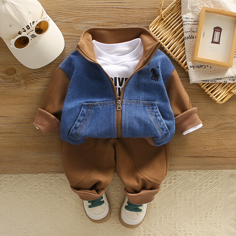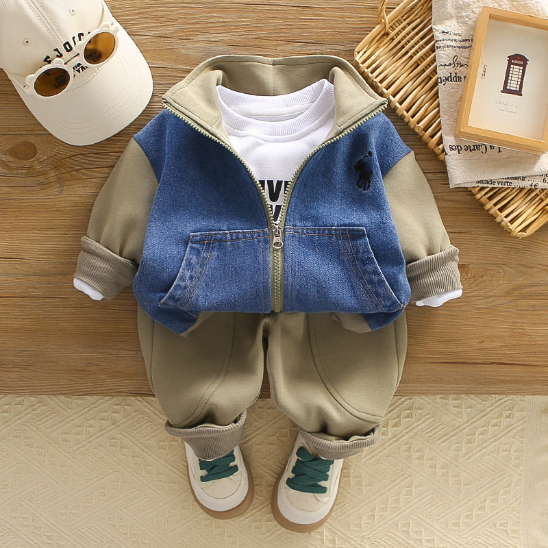 소년 가을 긴팔 양복, 새로운 스타일의 아기 봄, 가을 겉옷, 3피스 세트, 아동복, 유행 아동복스토어 가기