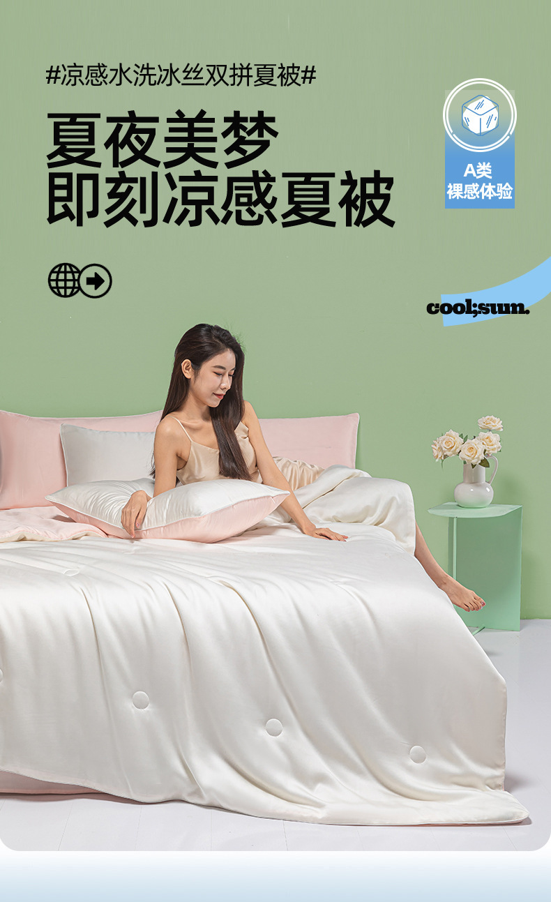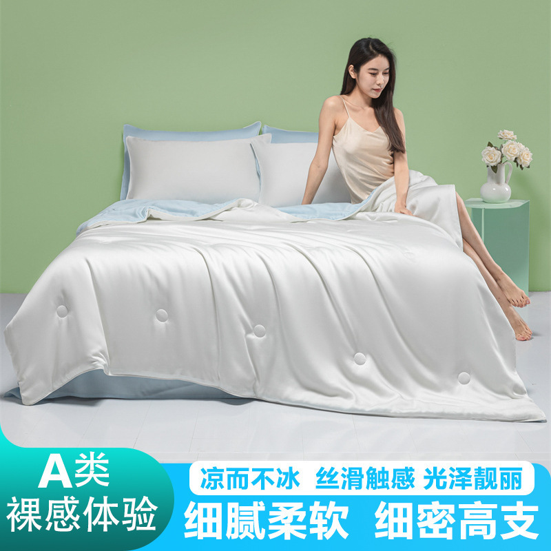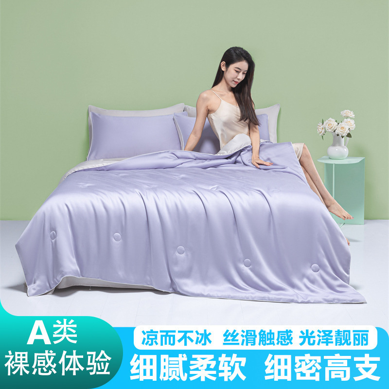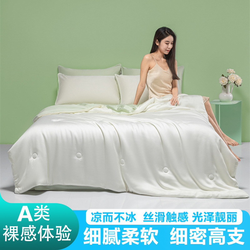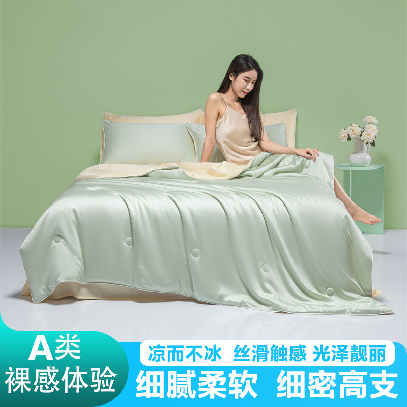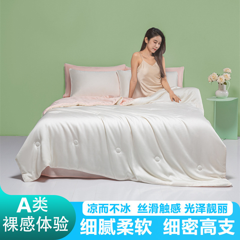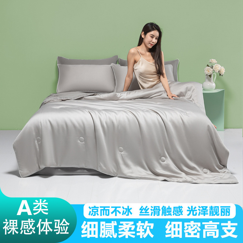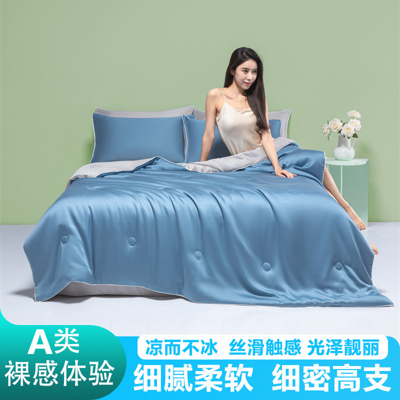 수출용 국경 간 에어컨 고급 실크처럼 매끄러운 누드 수면 이불 싱글 더블 4피스 세트 피부 친화적인 아이스 실크 여름 이불스토어 가기