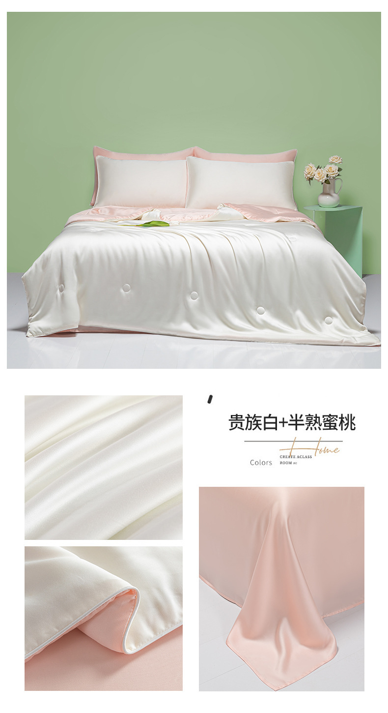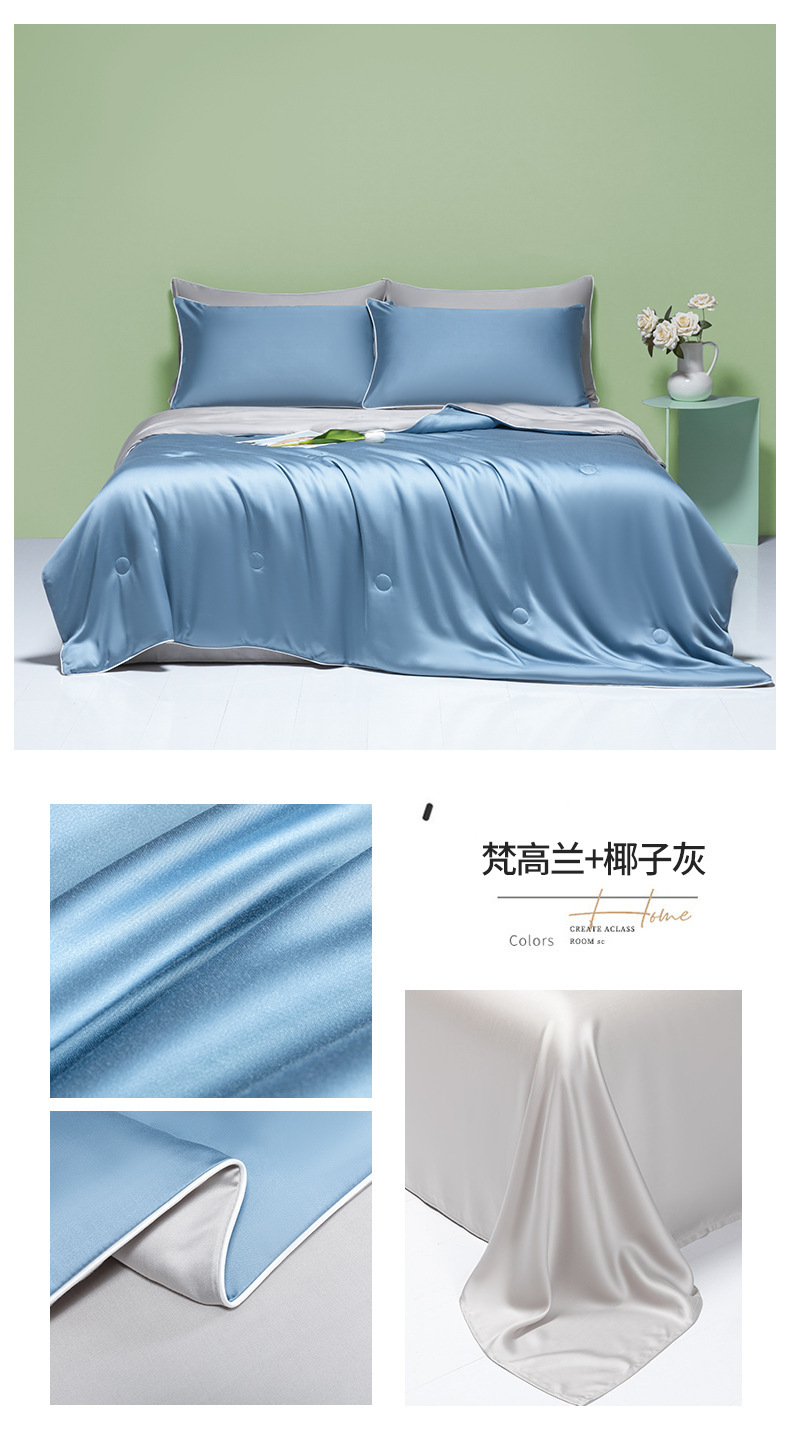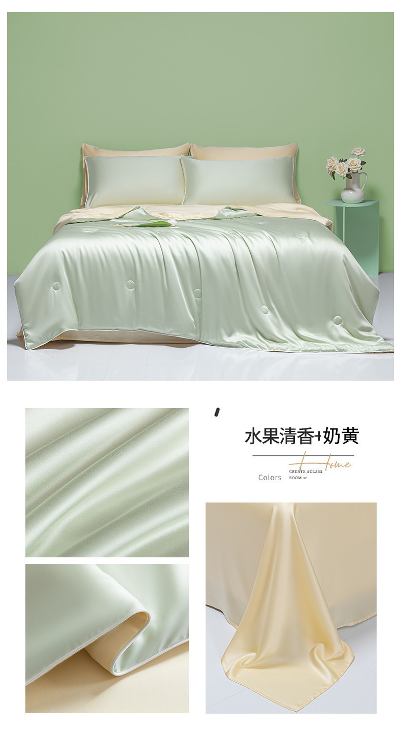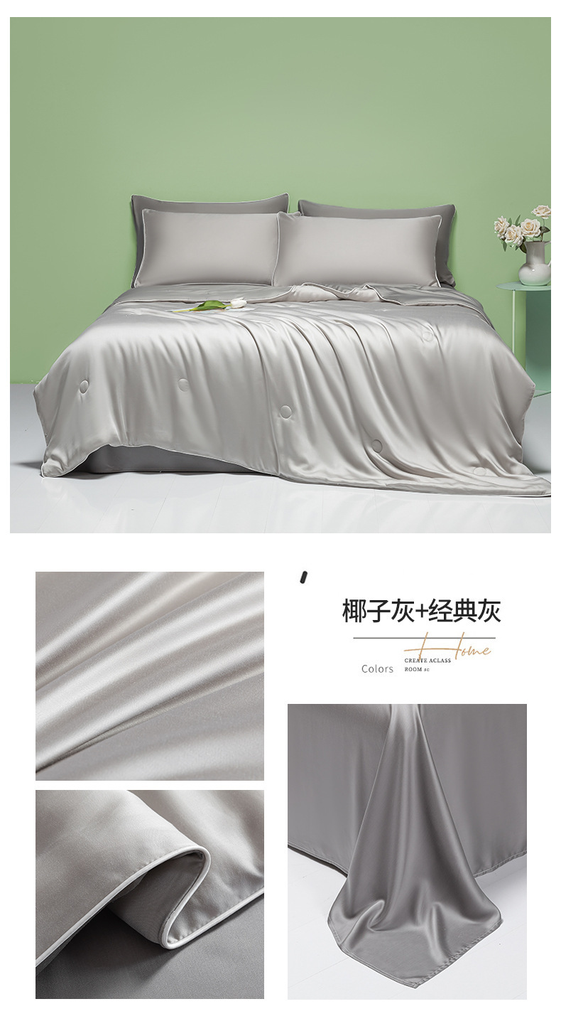 수출용 국경 간 에어컨 고급 실크처럼 매끄러운 누드 수면 이불 싱글 더블 4피스 세트 피부 친화적인 아이스 실크 여름 이불
