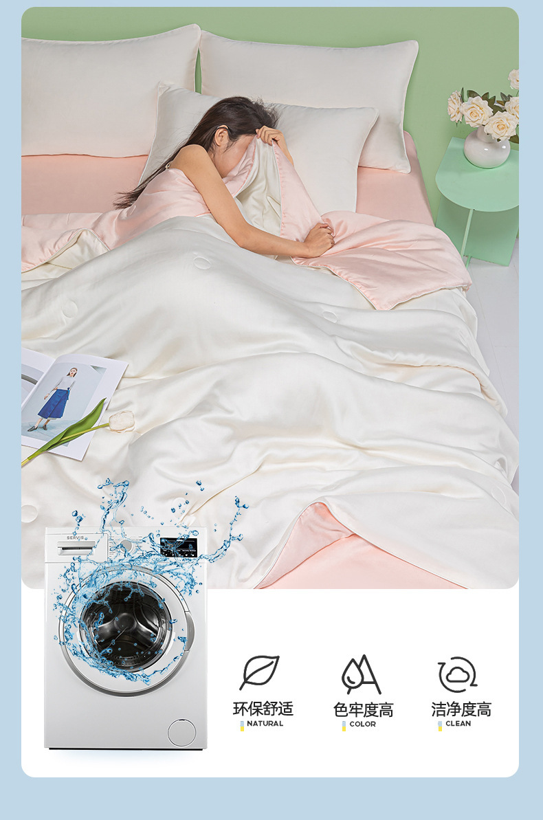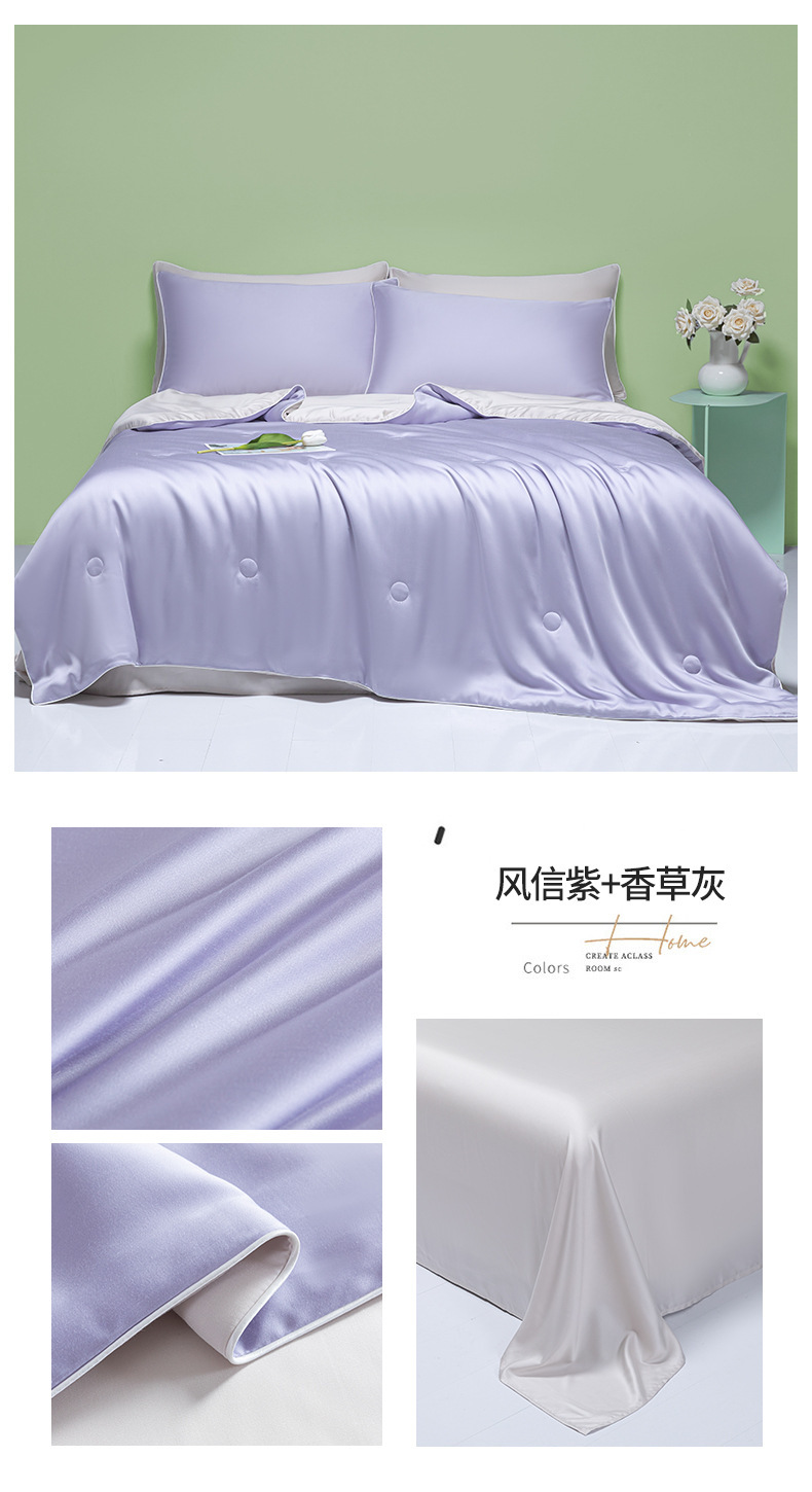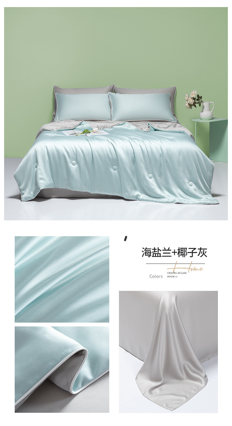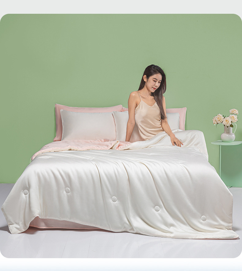 수출용 국경 간 에어컨 고급 실크처럼 매끄러운 누드 수면 이불 싱글 더블 4피스 세트 피부 친화적인 아이스 실크 여름 이불