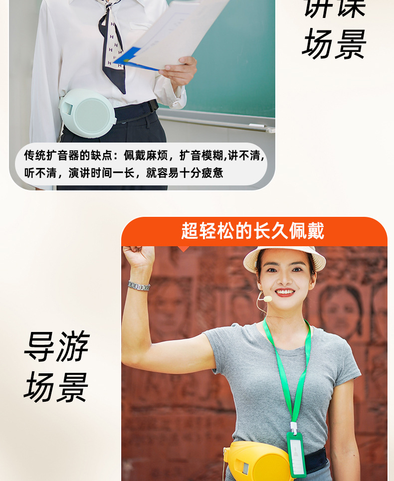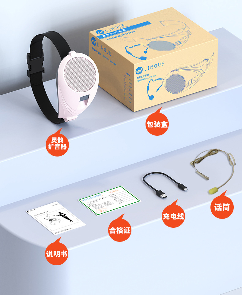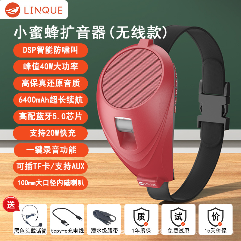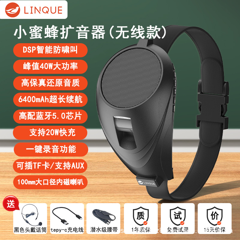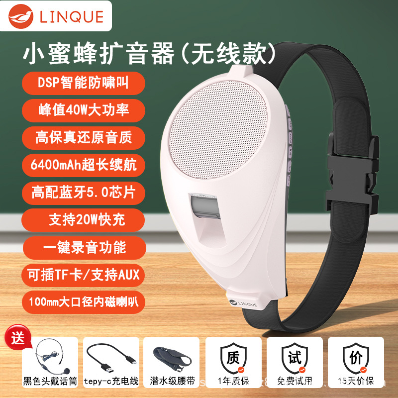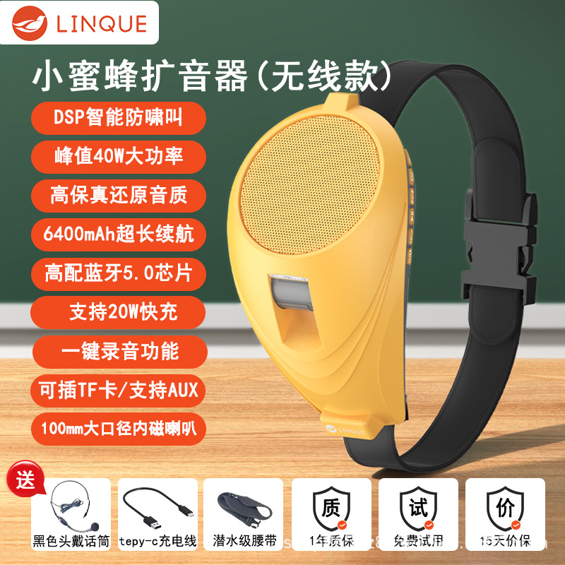 링퀘 무선 소형 꿀벌형 확성기 교사용 강의 및 교육용 허리 착용형 야외 투어 가이드 홍보용 대용량 확성기스토어 가기