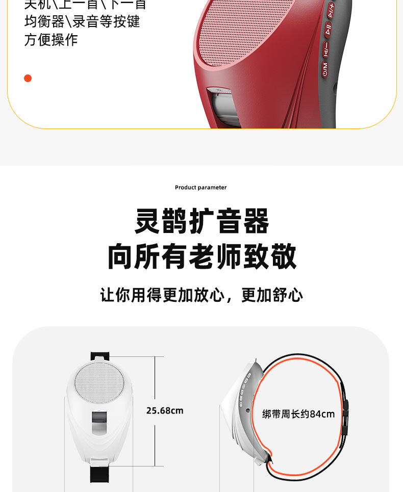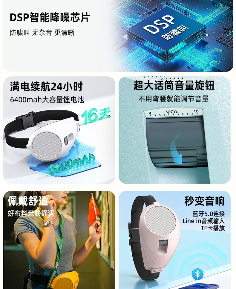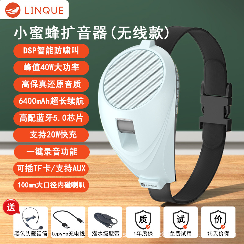 링퀘 무선 소형 꿀벌형 확성기 교사용 강의 및 교육용 허리 착용형 야외 투어 가이드 홍보용 대용량 확성기