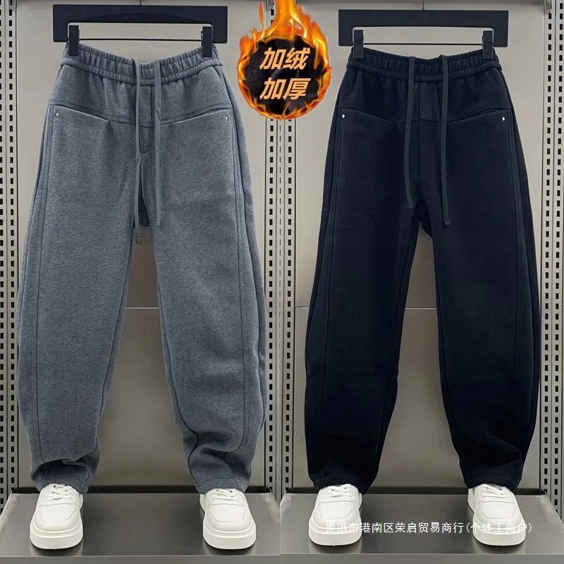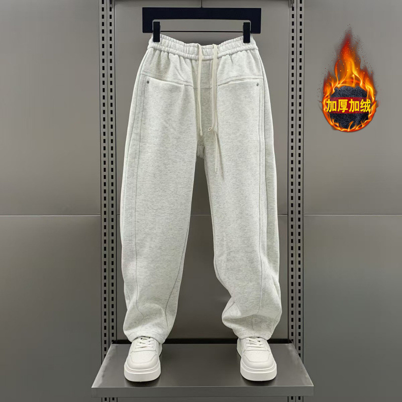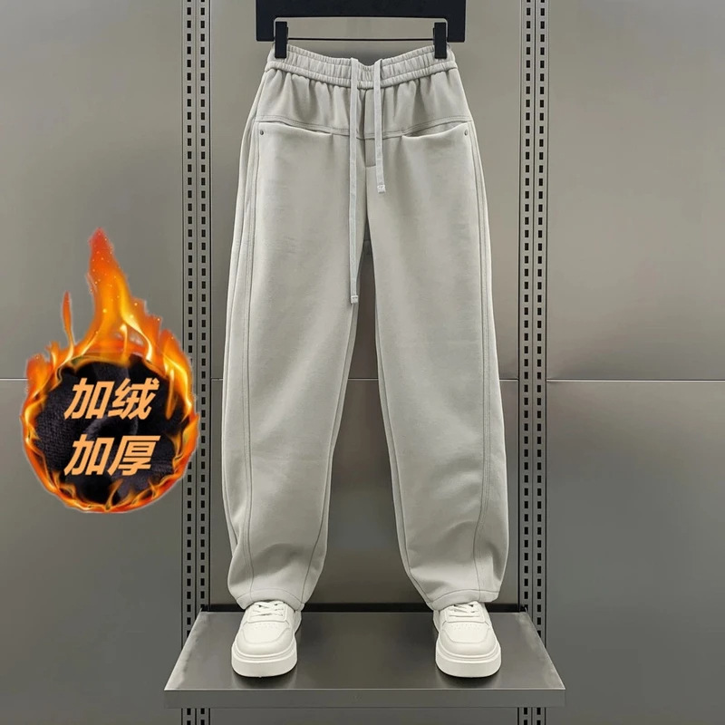 가을 겨울 신상 스웨트 팬츠 플러스 벨벳 스트레이트 칼바늘 바지 남성 트렌디 브랜드 멋진 다용도 솔리드 컬러 캐주얼 스포츠 바지스토어 가기