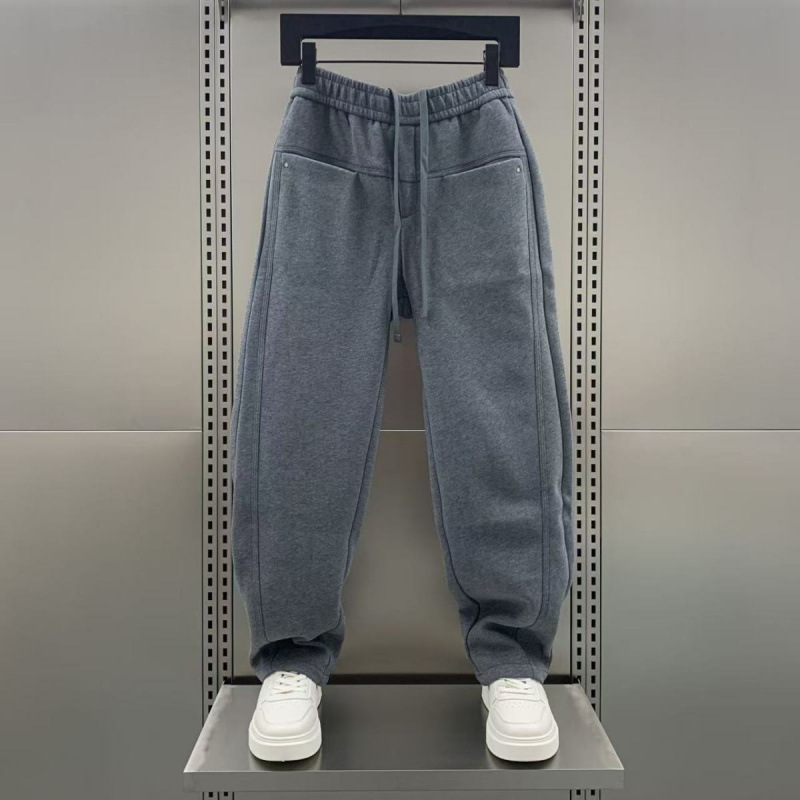 가을 겨울 신상 스웨트 팬츠 플러스 벨벳 스트레이트 칼바늘 바지 남성 트렌디 브랜드 멋진 다용도 솔리드 컬러 캐주얼 스포츠 바지