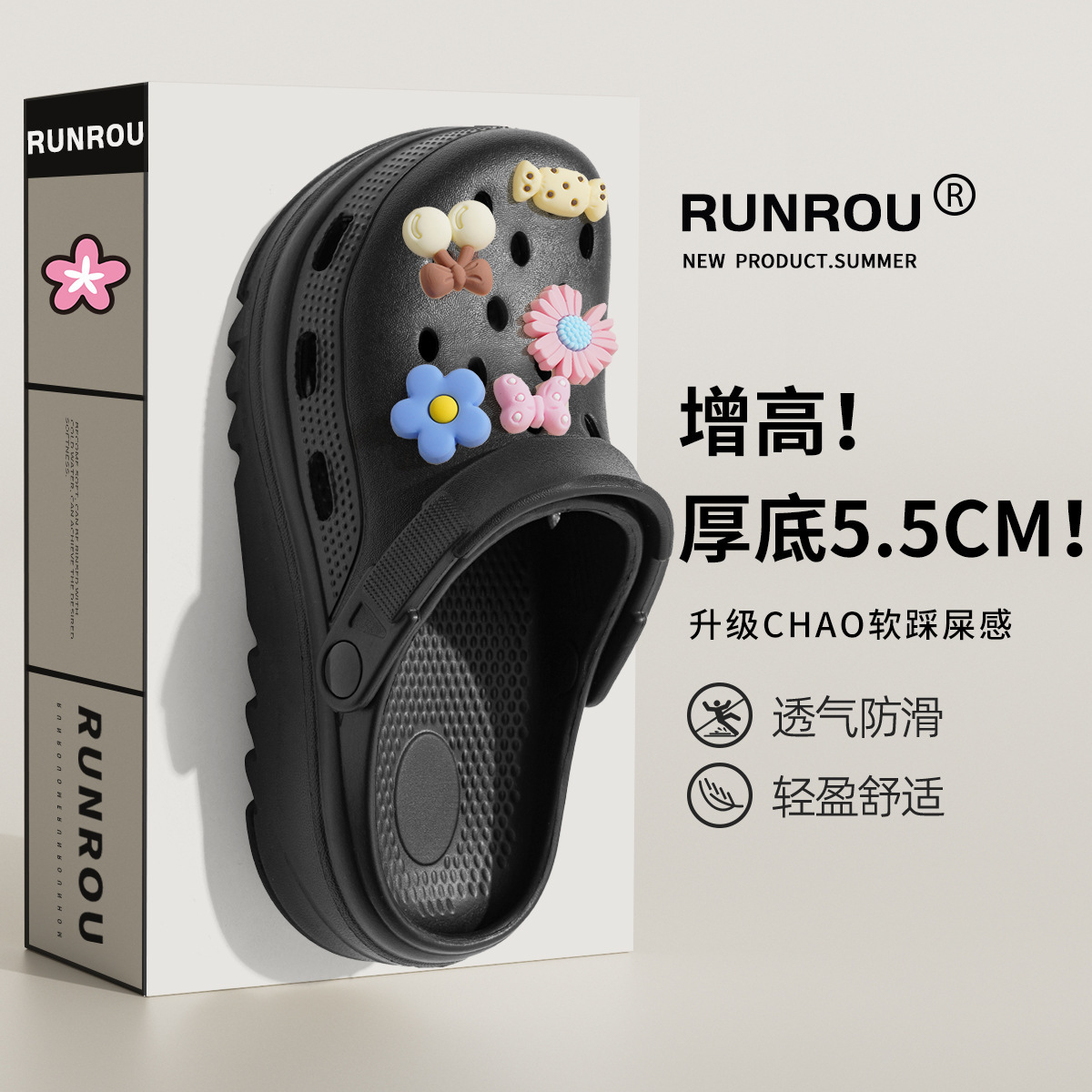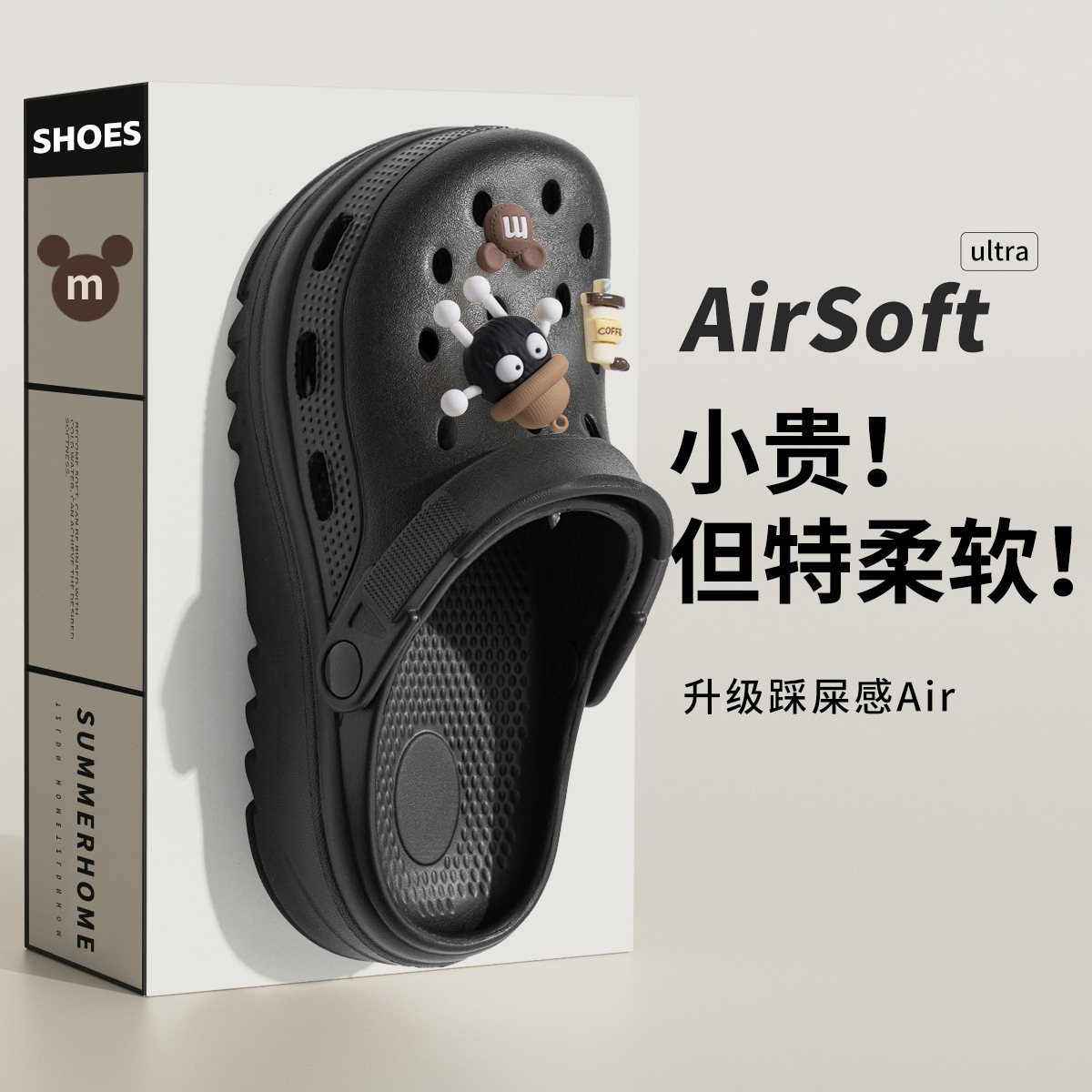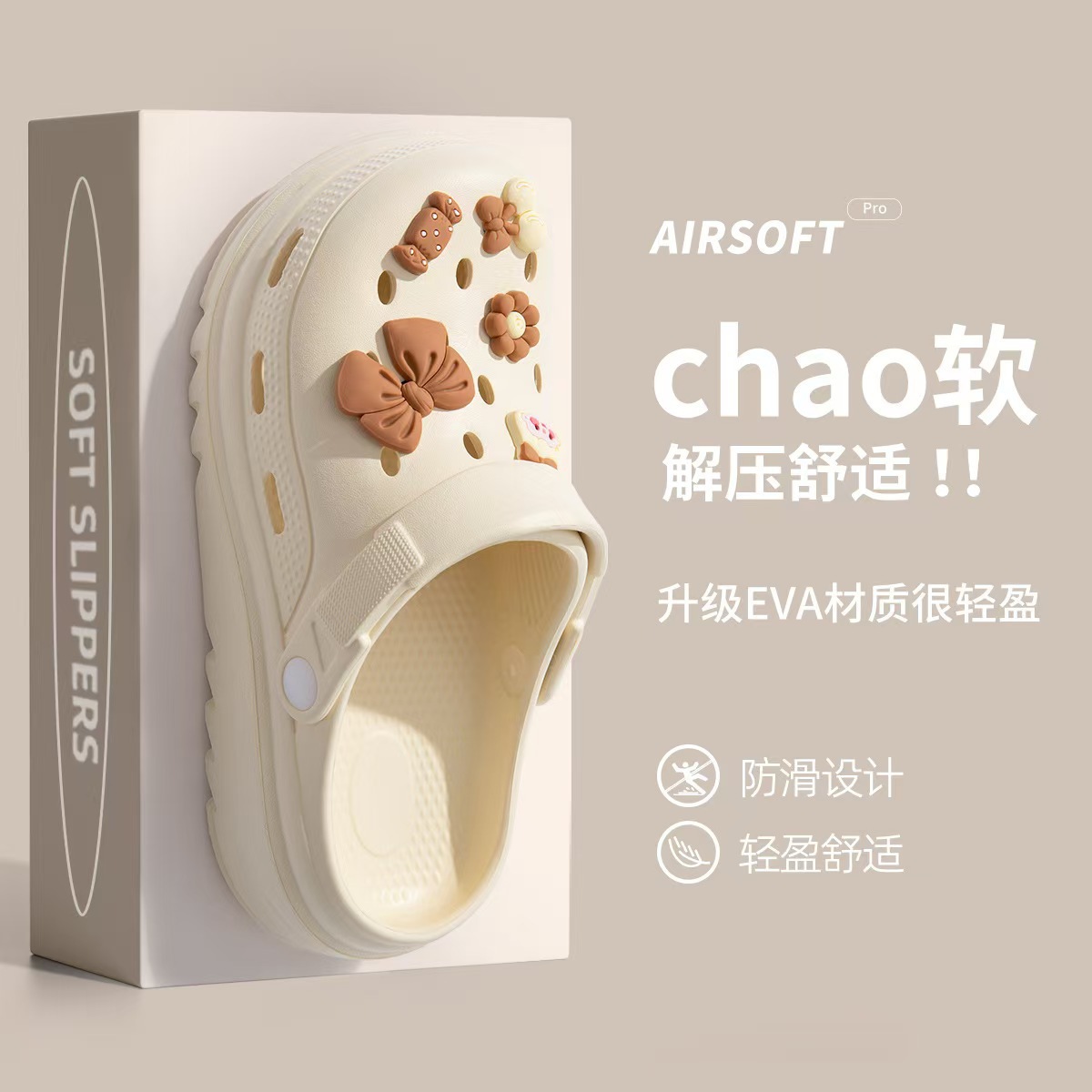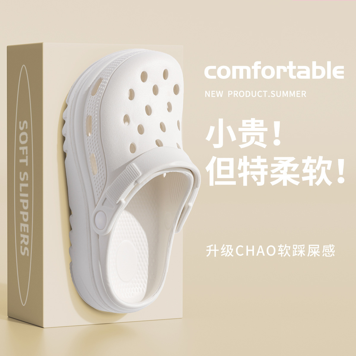똥 밟는 느낌의 여성용 여름 아웃도어웨어용 부드러운 밑창의 나막신, 실내 및 실외용, 통기성이 뛰어난 비치 발가락 슬리퍼