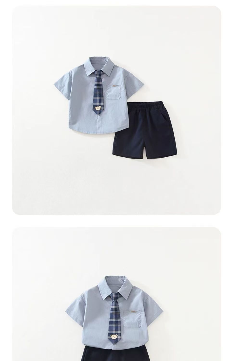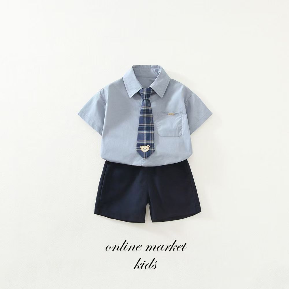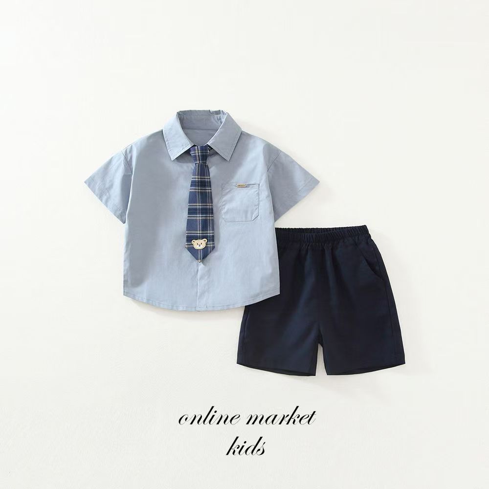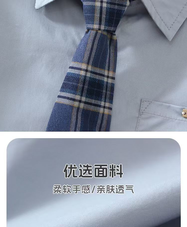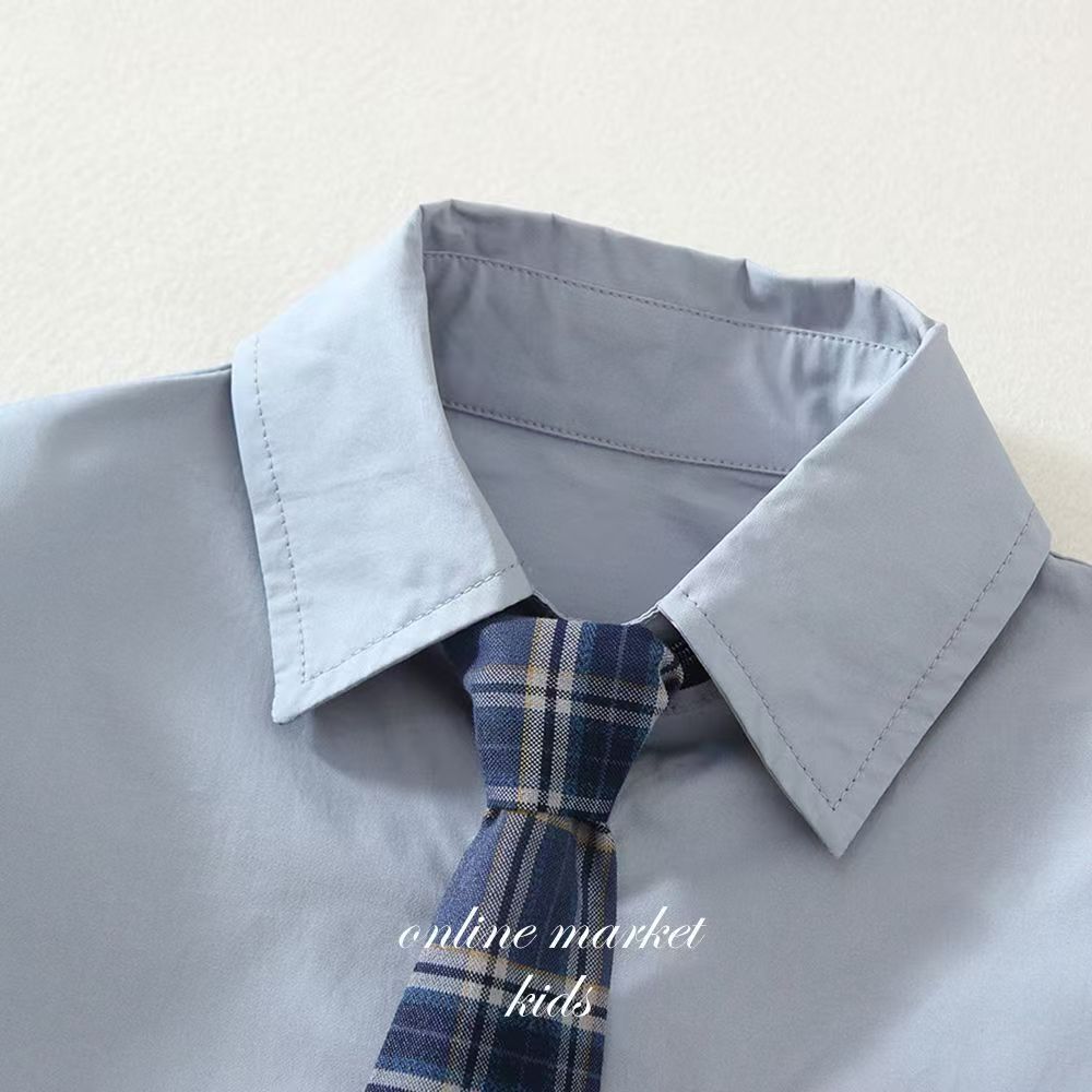 • 여름 체크무늬 타이 반팔-블루