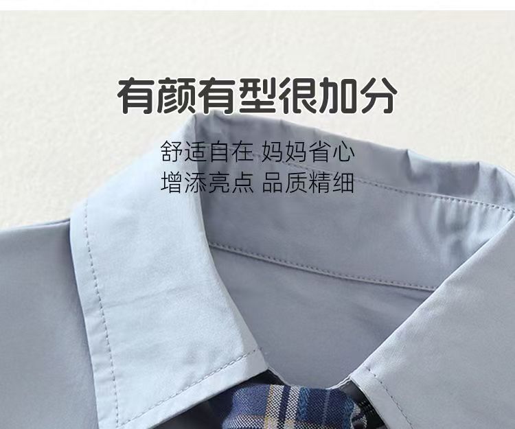 2025 새로운 여름 스타일 옷깃 컬러 블록 격자 무늬 넥타이 캐주얼 만화 카디건 옷깃 반팔 셔츠 정장 시원하고 잘 생긴스토어 가기